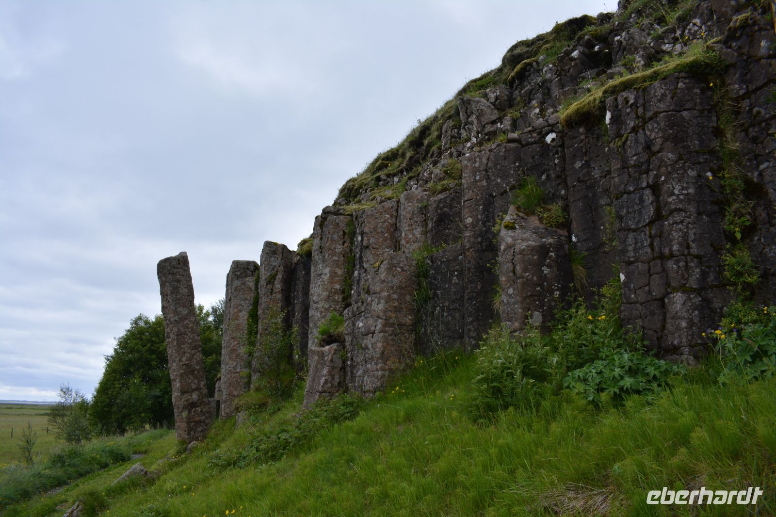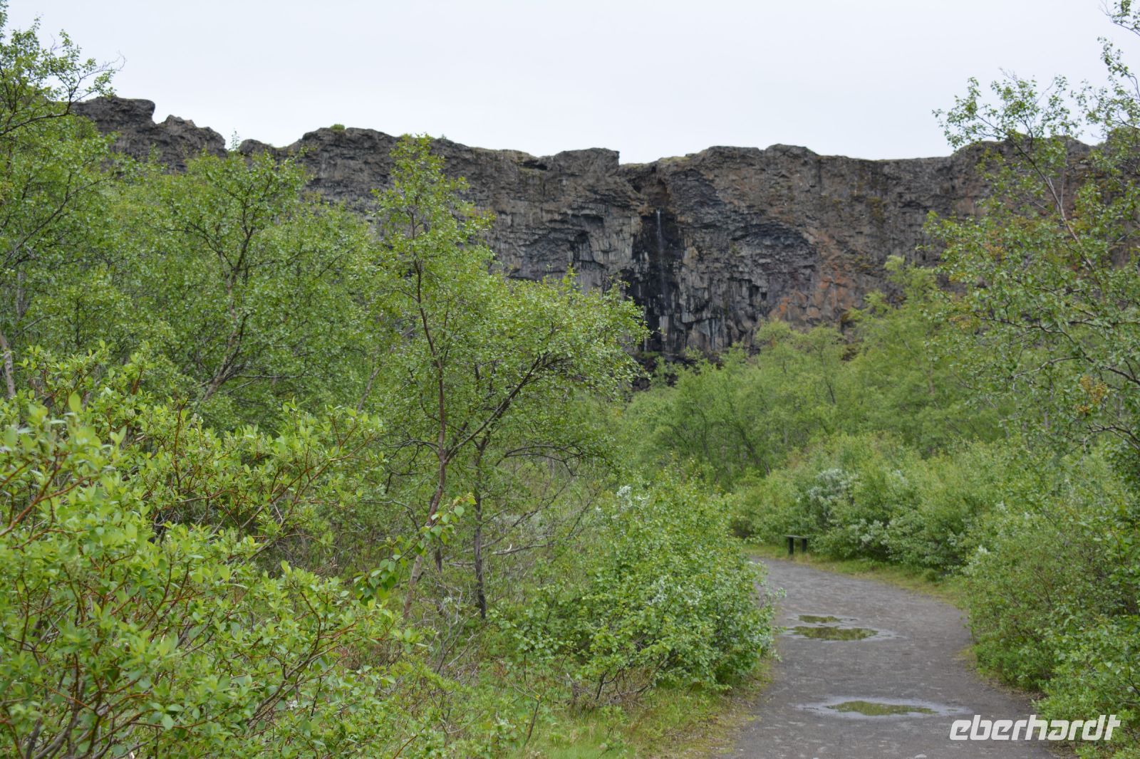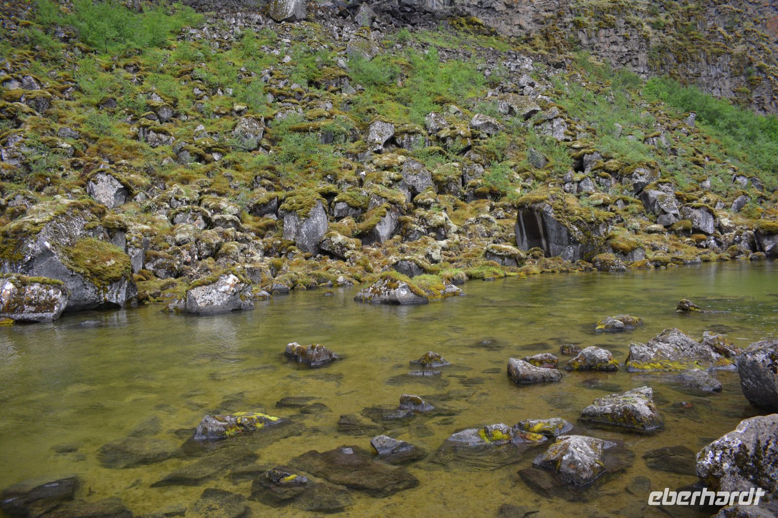 Gegen Mittag erreichen wir den Jökulsárgljúfur-Nationalpark und mit ihm auch die Asybyrgi-Schlucht. Diese soll, der nordischen Mythologie nach, durch den Huf von Odins achtbeinigem Pferd Sleipnir entstanden sein und ist dadurch hufeisenförmig geworden. Geologisch ist belegt, dass verschiedene Gletscherläufe und Vulkanausbrüche diese besondere Form erschaffen haben. Der Fluss der sich heute über die zwei heute besichtigten Wasserfälle ergießt, hatte eins sein Flussbett in dieser Schlucht. Heute hat sich der Verlauf in den Osten verlagert.