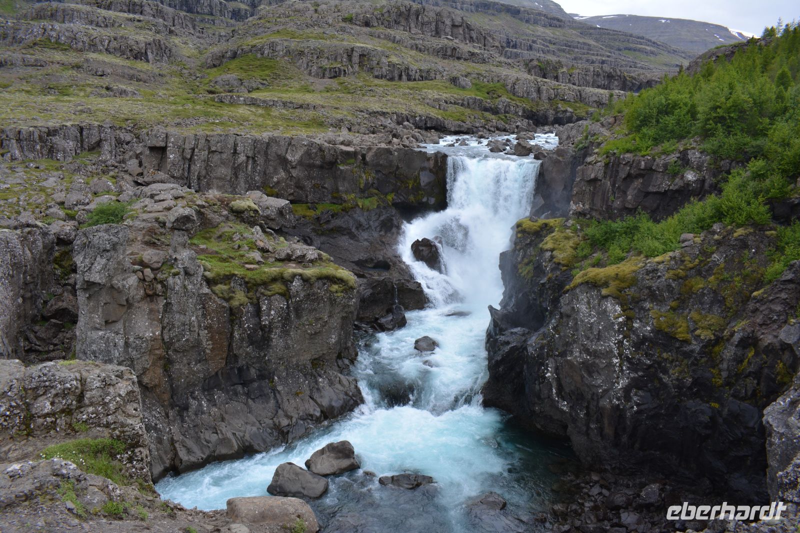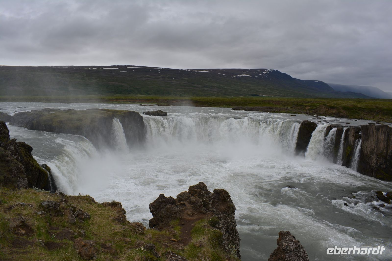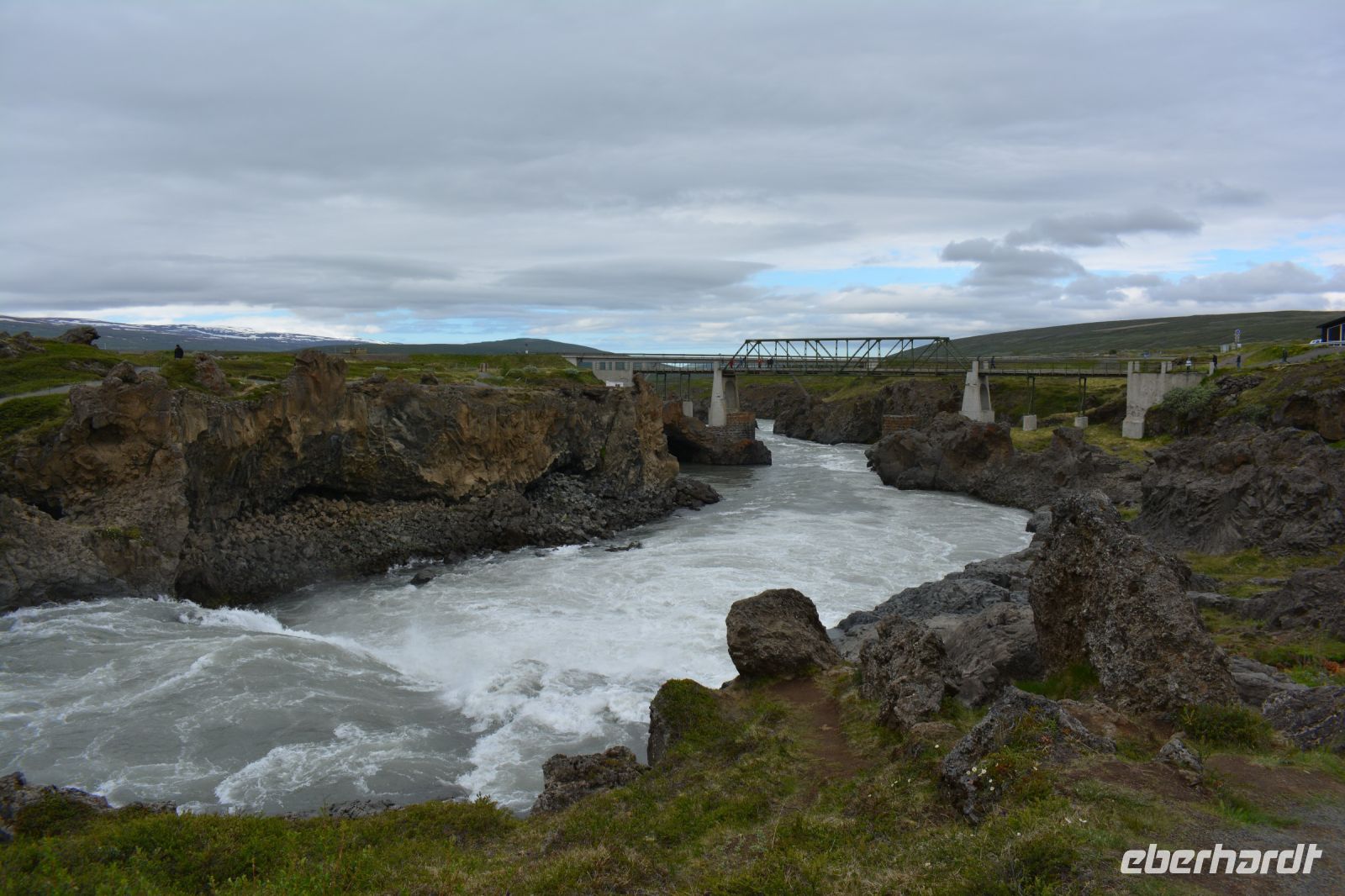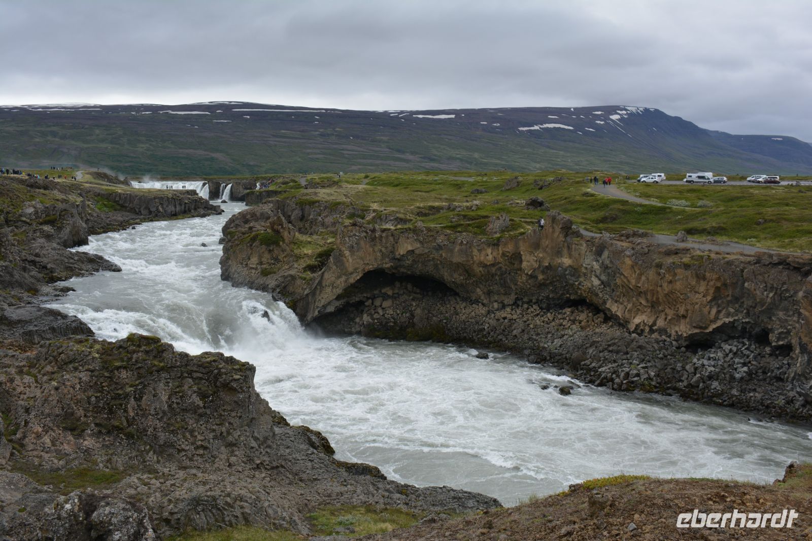 Auf unserm Rückweg zum „Hotel Natur“ liegt noch der Godafoss, welchen wir natürlich nicht links liegen lassen wollen. Über einen langen Canyon bahnt sich der Wasserfall hier seinen Weg.