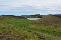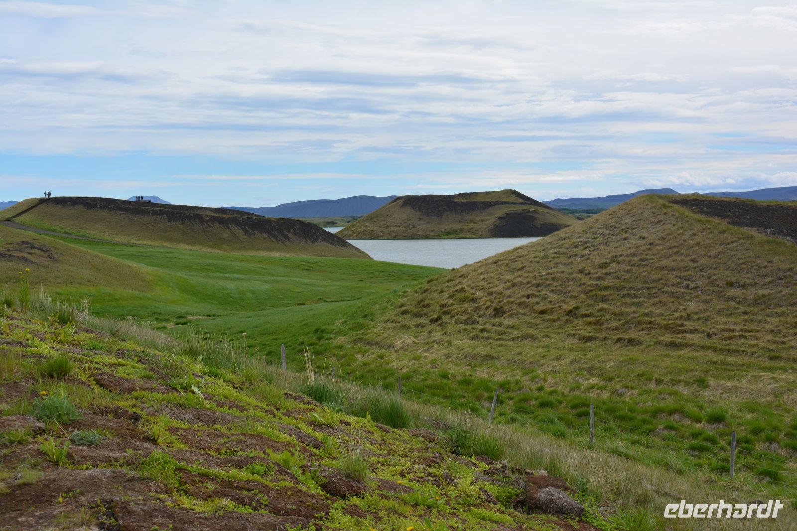 Entlang des Sees gibt es einige Pseudokrater, um die wir eine kleine Wanderung unternehmen und immer wieder einen schönen Blick auf den See haben. Der See ist am tiefsten Punkt vier Meter tief und fast jeder dieser Krater bildet eine Insel. Die Pseudokrater sind durch Dampfexplosionen entstanden. Beim Vulkanausbruch hat die Lava das Wasser unter sich eingeschlossen, diese wurde so heiß und explodierte. Es entstehen Krater, welche den erloschenen Vulkanen sehr ähnlich sehen.