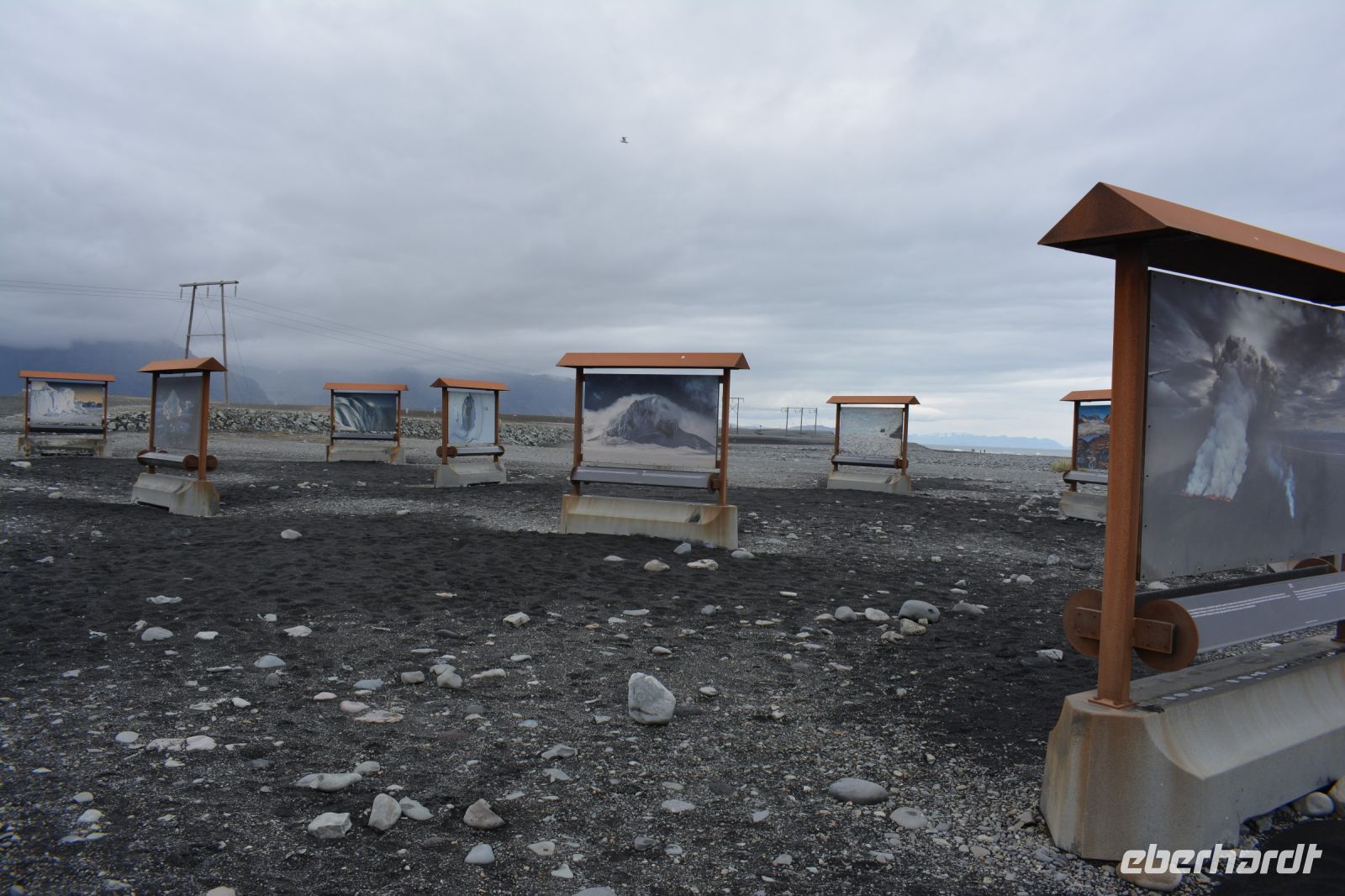 Für uns geht es weiter an der Südküste. Noch lange haben wir den Vatnajökull und seine Gletscherzungen im Blick. Besonders schlimm sind in diesem Gebiet die Vulkanausbrüche, aber nicht wegen der Lava, sondern dem Schnee und Eis, welches geschmolzen wird. Aller vier bis fünf Jahre gibt es hier Gletscherfluten, die das komplette Gebiet und auch die Straßen überflutete.