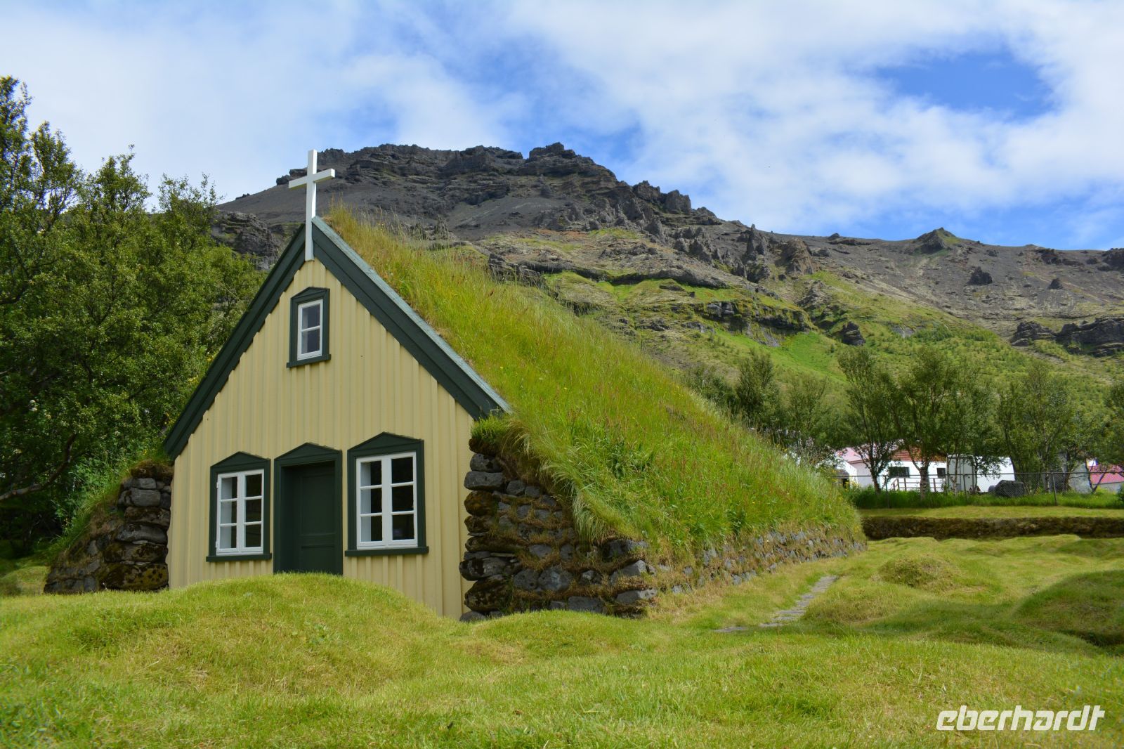Als nächstes machen wir Halt in Skogar einem kleinen Ort mit einigen Sehenswürdigkeiten. Zum einen ist hier das liebevoll gestaltete Heimat- und Freilichtmuseum. Im 1949 eröffnete Museum beinhaltet über 18.000 regionale, gesammelte Exponate. Wir bekommen eine kleine Führung durch die ersten Räume des Folksmuseums und lernen etwas über den Beginn der Fischerei auf Island. Danach haben wir Freizeit um das Technikmuseum und den Außenbereich zu erkunden. Hier kann man zum Beispiel eine Schule, eine Kirche und kleine Torfhäuser bestaunen.