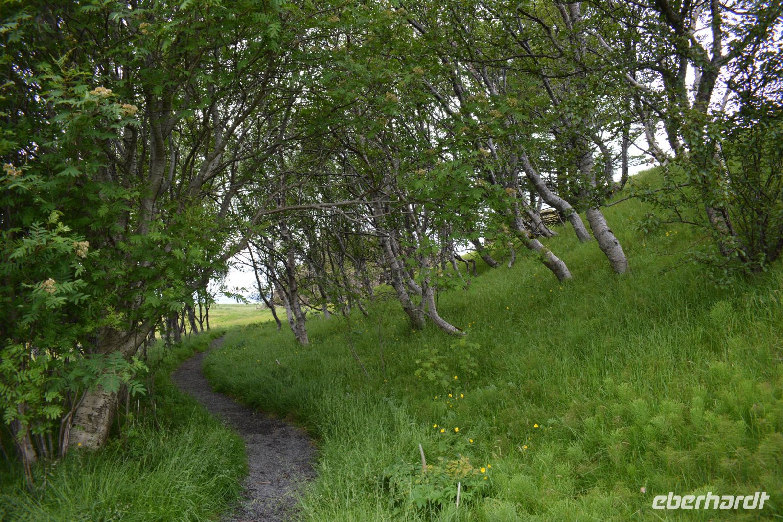 Das Hotel unserer letzten Nacht liegt mitten im Hallormsstadur Nationalwald. Dieser gilt, mit einer Fläche von740 Hektar, als größter Wald Islands. Dennoch sind erst 2% der Insel insgesamt wieder bewaldet. Da man ganz genaue Aufzeichnungen über die Besiedlung von Island hat, ist bekannt, dass die gesamte Insel im Jahr 871 vollständig bewaldet war. Die Siedler nutzen das Holz zum Feuer machen, aber auch zum Hausbau. Ziel der Einwohner ist es jetzt 12% der Fläche wieder zu bewalden. Die Fläche ist zu vergleichen mit der Fläche der Gletscher, welche aktuell 11,5% der Insel einnehmen.
