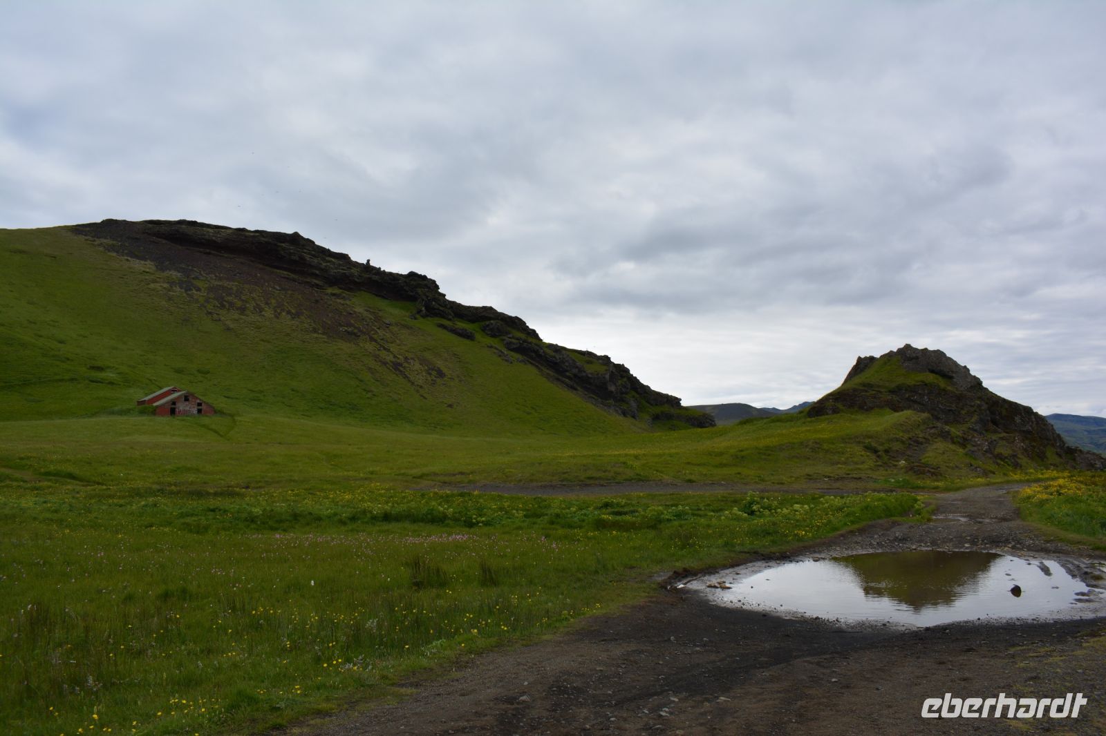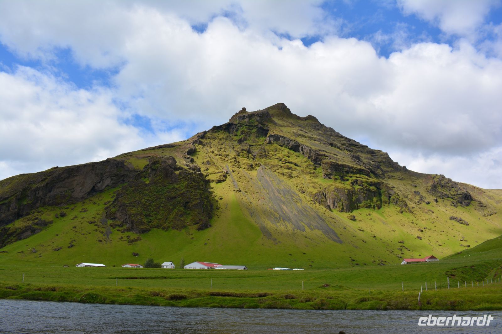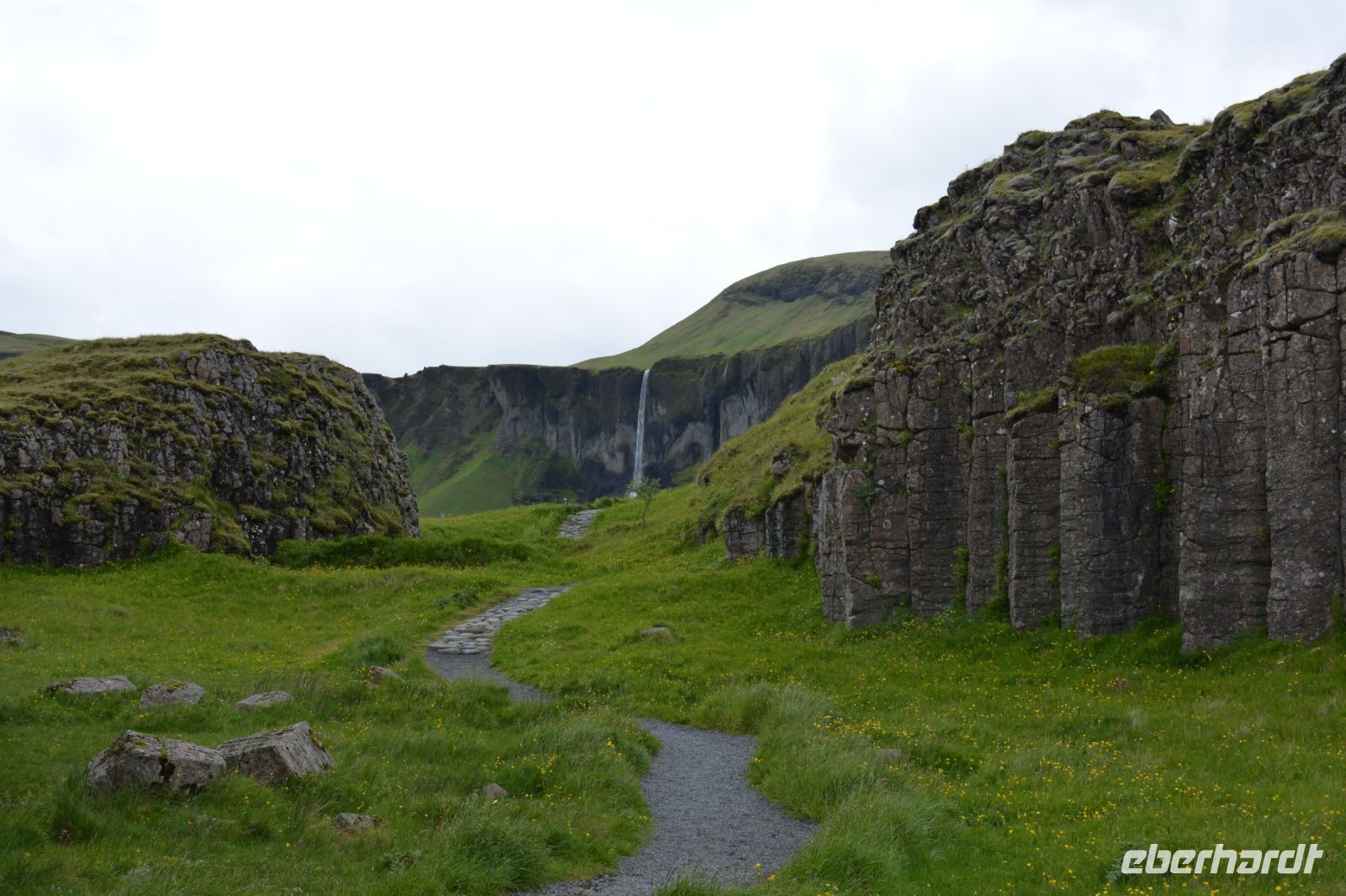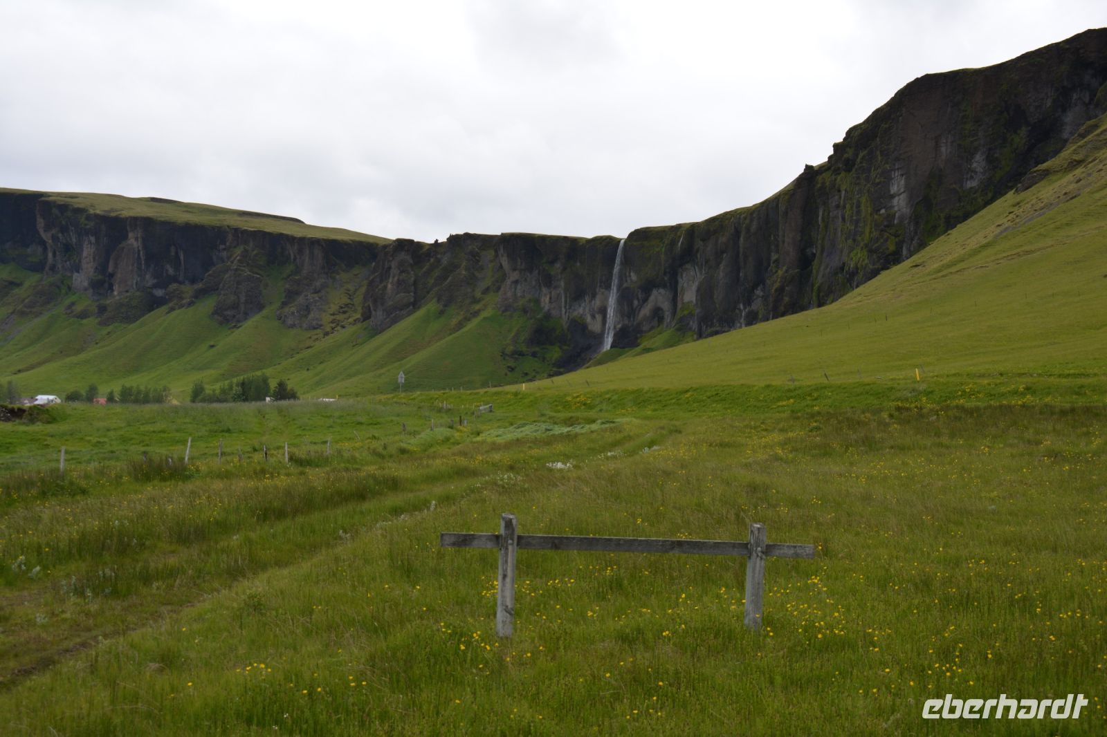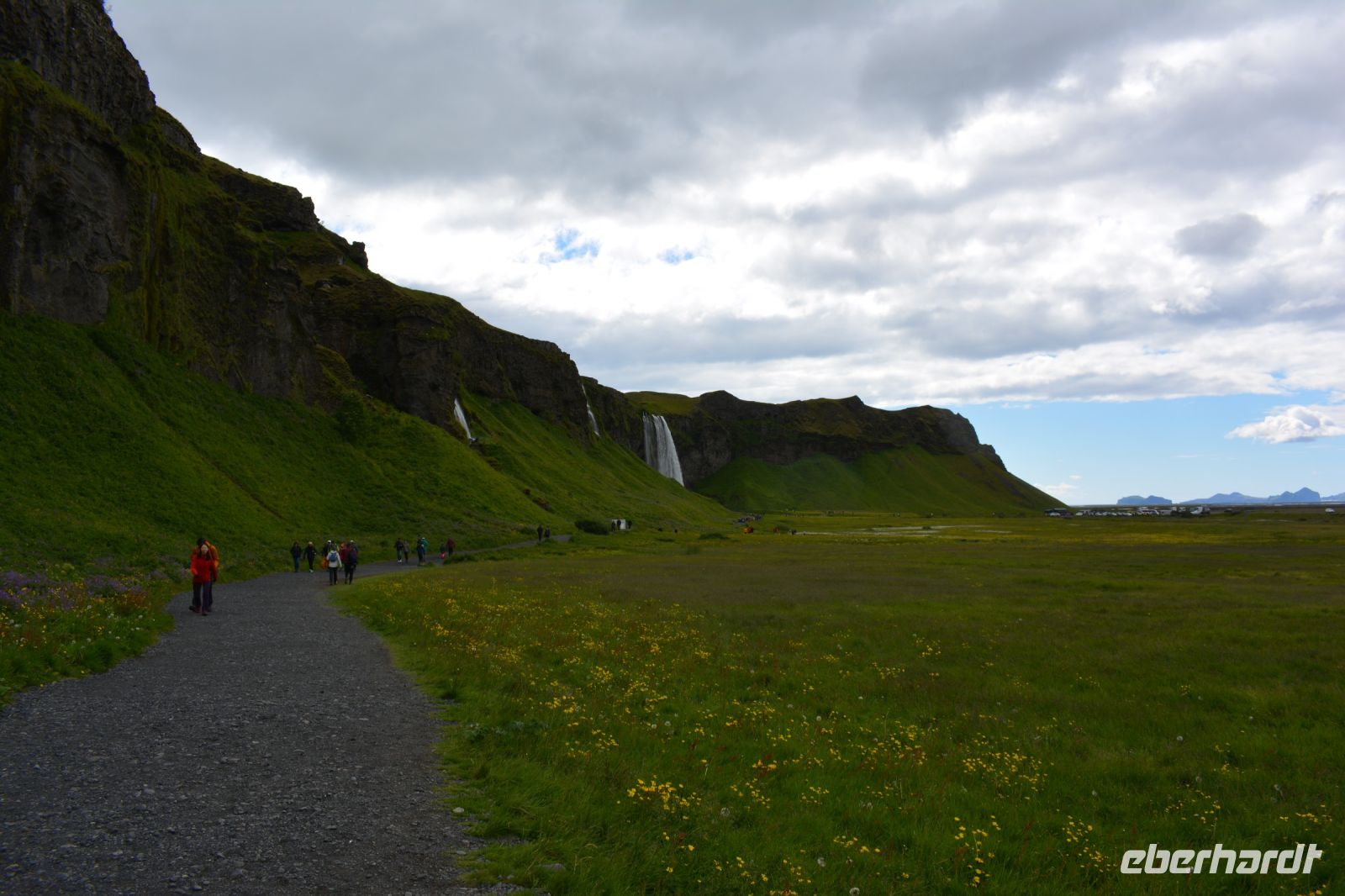Den frühen Nachmittag verbringen wir am Seljalandsfoss. Dieser gewaltige Wasserfall ist etwas besonderes, denn wer hier Regensachen dabei hat und gutes Schuhwerk, kann den Wasserfall umrunden. Auch hier stürzt das Wasser 60 Meter in die Tiefe. Wer nicht nass werden will, geht den Weg nach hinten und wirft noch einen Blick auf die kleineres Wasserfälle. Ganz besonders ist hier noch der Gljufrabui, dieser Wasserfall stürzt sich in einer Höhle in die Tiefe