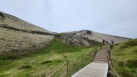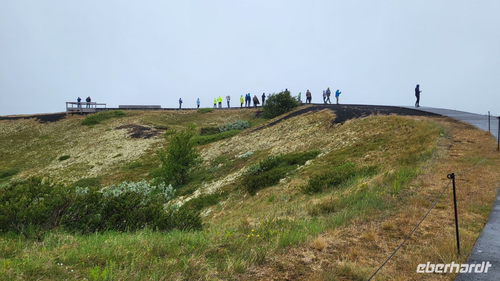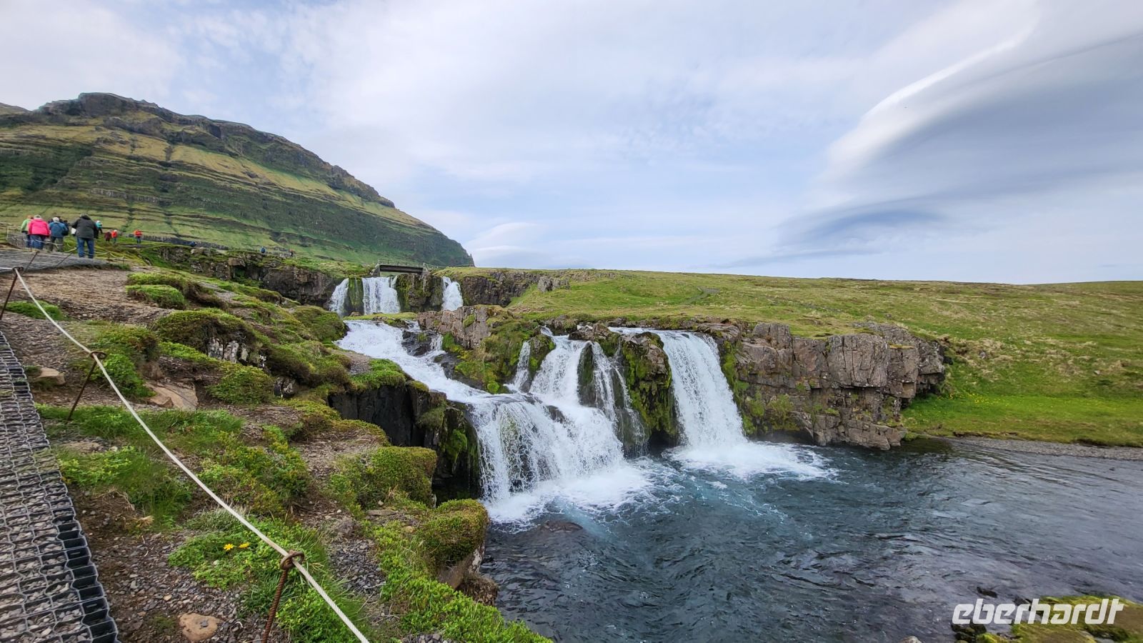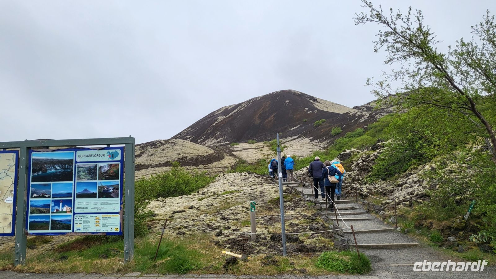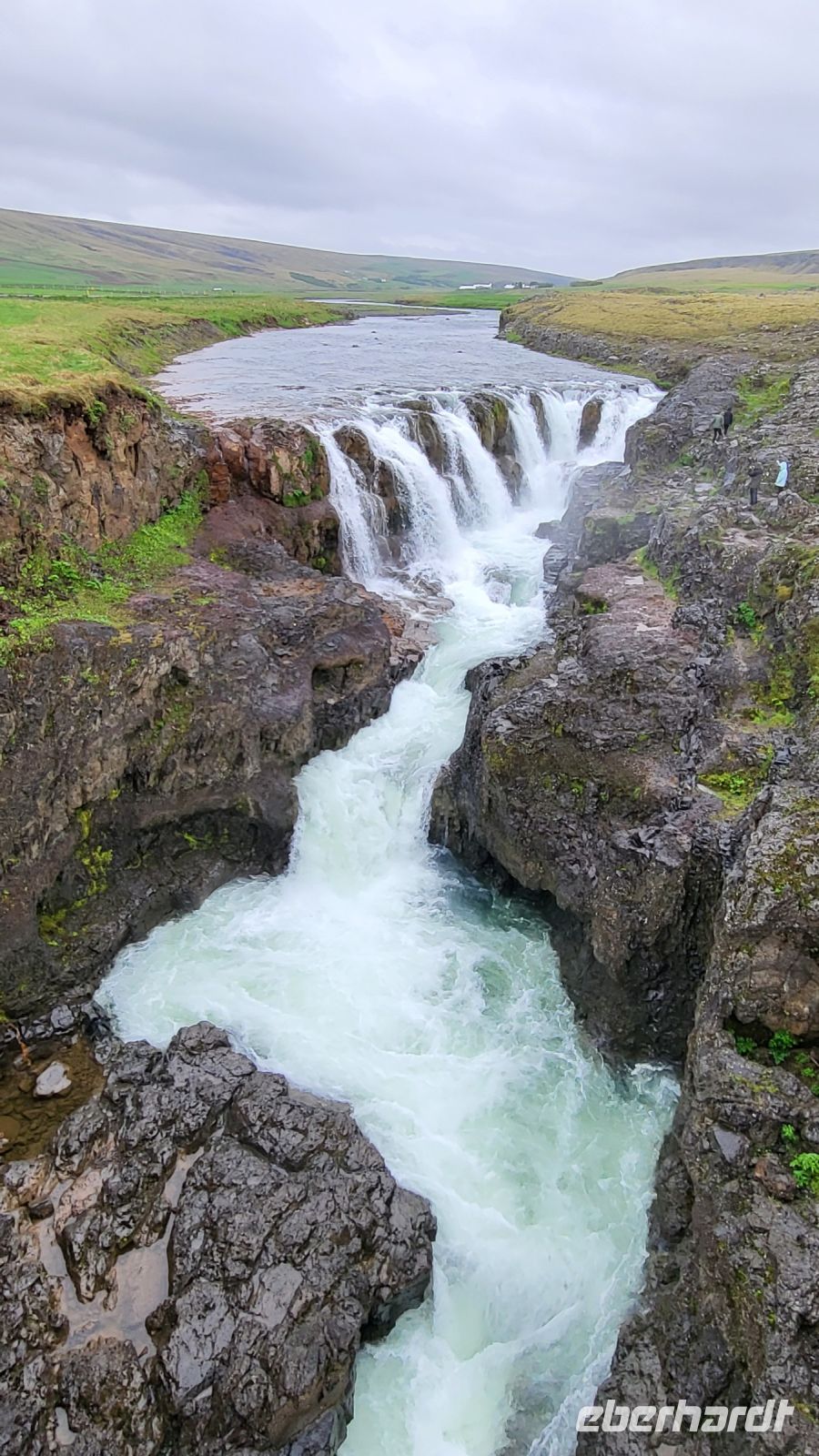 Wir starteten unseren Tag mit einem guten Frühstück im Hotel und machten uns auf, den Vulkankrater Grabrok zu erklimmen. Der Weg nach oben war herausfordernd, aber die Anstrengungen wurden belohnt, als wir die Spitze des Kegels erreichten. Von dort aus konnte man einmal drumherum laufen und eine wundervolle Aussicht auf die umliegende Landschaft und einen weiteren Vulkankegel genießen. Obwohl das Wetter regnerisch war, konnten wir später dennoch beeindruckende Fotos an den Kolufossar machen. Die Kolufossar sind drei Wasserfälle im Nordwesten Islands und bildeten eine faszinierende Kulisse für unsere Erinnerungsfotos.