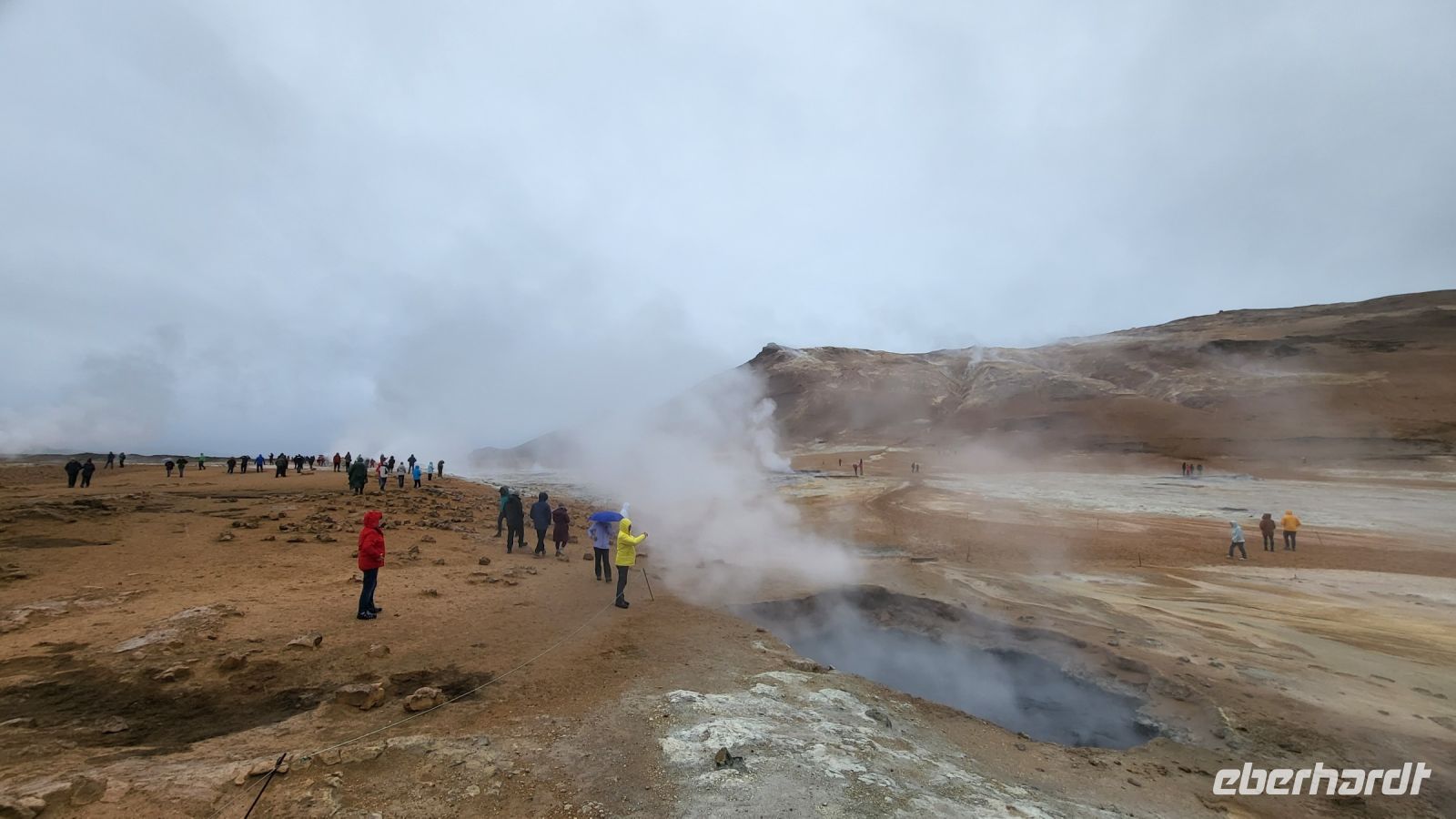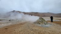 Frisch erholt führte uns unsere Reise weiter zu Namskard, einem aktiven geothermischen Gebiet, bekannt für seine intensiv farbigen Schlammquellen und Dampfventile. Der Anblick der brodelnden und zischenden Erde war ein anschauliches Zeugnis der rohen, vulkanischen Kraft, die unter der isländischen Oberfläche brodelt.