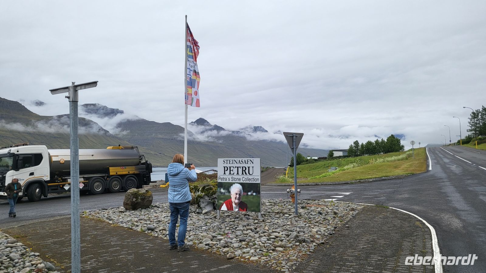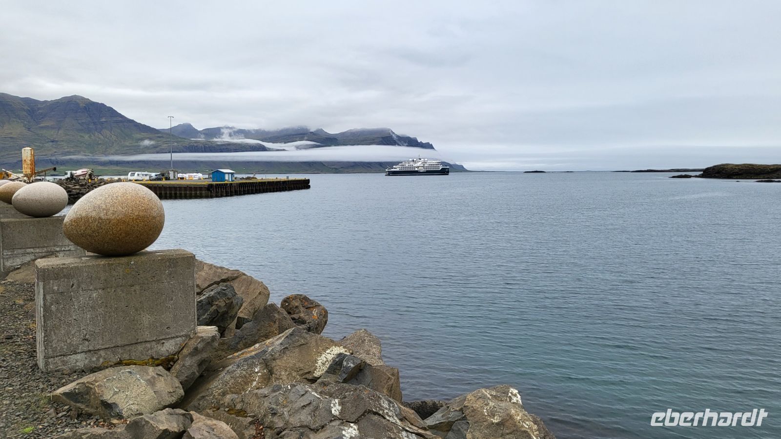 Nach dieser faszinierenden Besichtigung setzten wir unsere Reise fort und machten eine Mittagspause in dem idyllischen Dorf Djupivogur. Hier bestaunten wir die berühmten "Steineier", eine beeindruckende Kunstinstallation am Hafen, die 34 Vogelarten Islands repräsentiert. Anschließend genossen wir lokale Köstlichkeiten, während wir die Ruhe und Schönheit des kleinen Fischerdorfes auf uns wirken ließen.