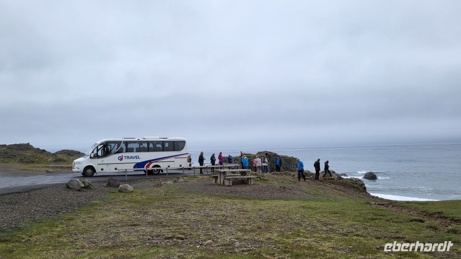 Der Tag begann heute sehr entspannt und so starteten wir unsere Reise mit einer malerischen Fahrt entlang der Ostfjorde. Wie in einer Szenerie aus einem Märchenbuch schmiegten sich kleine Ortschaften an die grün bewachsenen Hänge, während der Blick auf den Nordatlantik uns beeindruckte. Das diesige Wetter tat der ganzen Szenerie keinen Abbruch. Nein! Sie unterstützte diese.