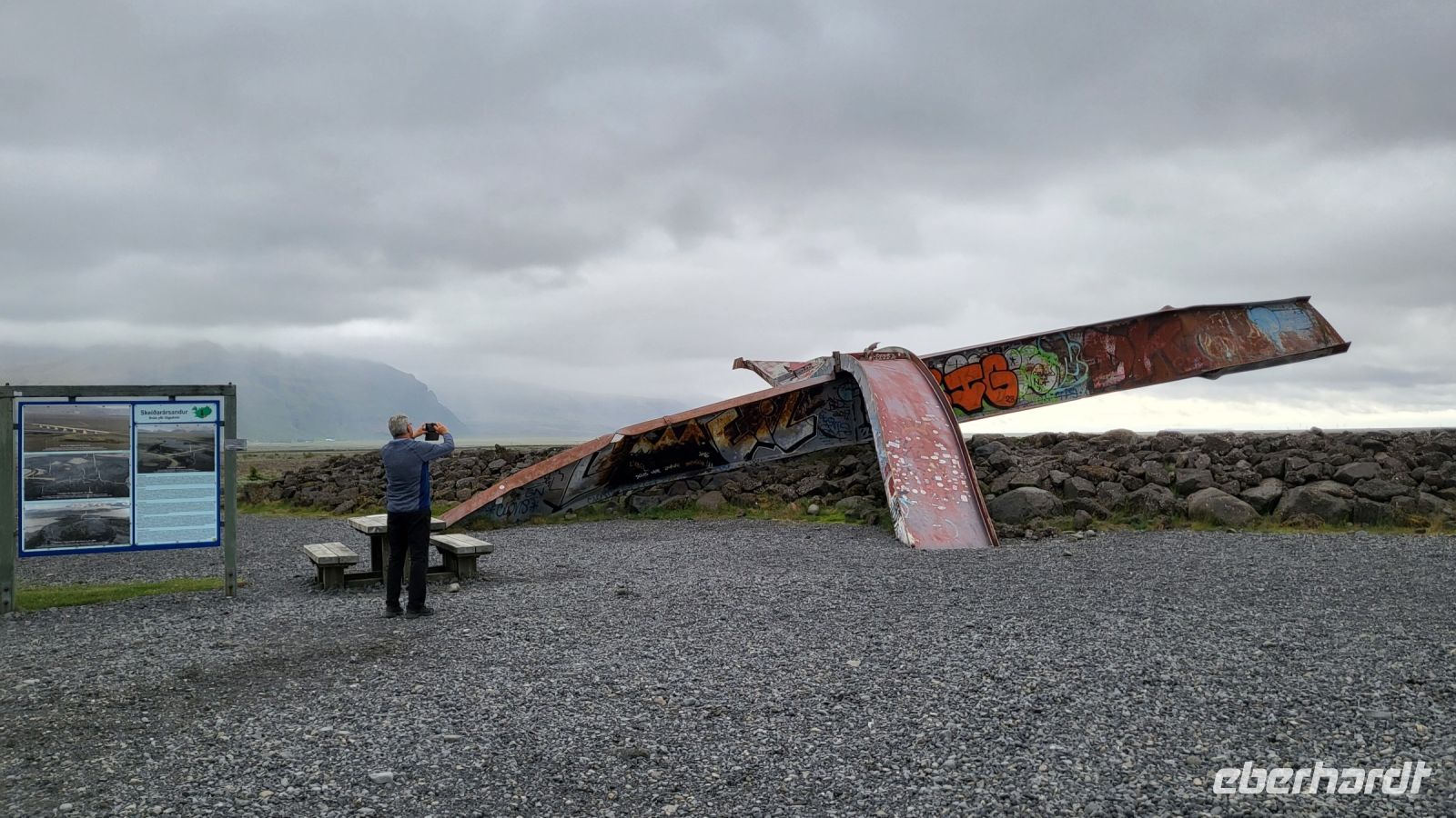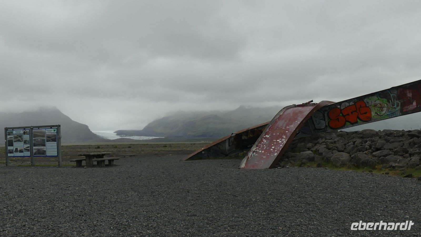 Unser Tag begann mit einem frischen Morgenspaziergang zum Skaftafell Gletscher, der uns durch eine atemberaubende Szenerie entlang hoher markanter Felswände führte. Der Gletscher wirkte wie eine Szene aus einer anderen Welt. Nach dieser erfrischenden Wanderung besuchten wir das Besucherzentrum vom Skaftafell-Nationalpark und legten anschließend einen Zwischenstopp beim Skeiðará Bridge Monument ein. Dieses ist eine Erinnerung an die verheerende Gletscherflut, die 1996 durch einen Vulkanausbruch unter dem Vatnajökull-Gletscher verursacht wurde. Der Ausbruch ließ einen Teil des Gletschers schmelzen, was zu einer gewaltigen Flut führte, die als "Jökulhlaup" bekannt ist. Die Flutwelle, die den Fluss Skeiðará hinunterstürzte, führte große Eisbrocken mit sich, die schließlich die Brücke zerstörten, die Teil der Ringstraße war, Islands Hauptverkehrsader, die das Land umrundet. Das Skeiðará Bridge Monument besteht aus den Überresten dieser Brücke und dient heute als ein ständiges Mahnmal für die gewaltigen Naturkräfte Islands.