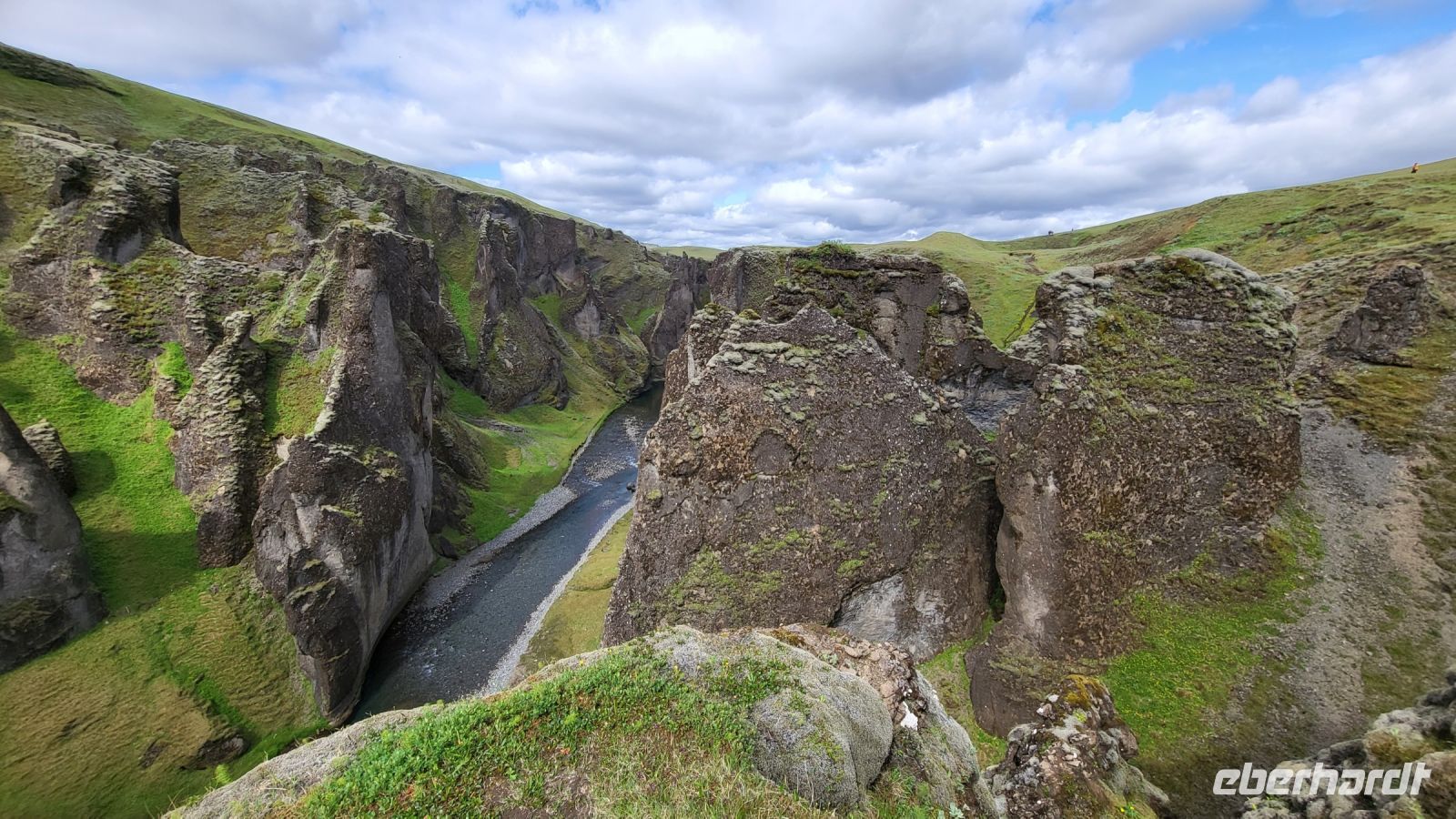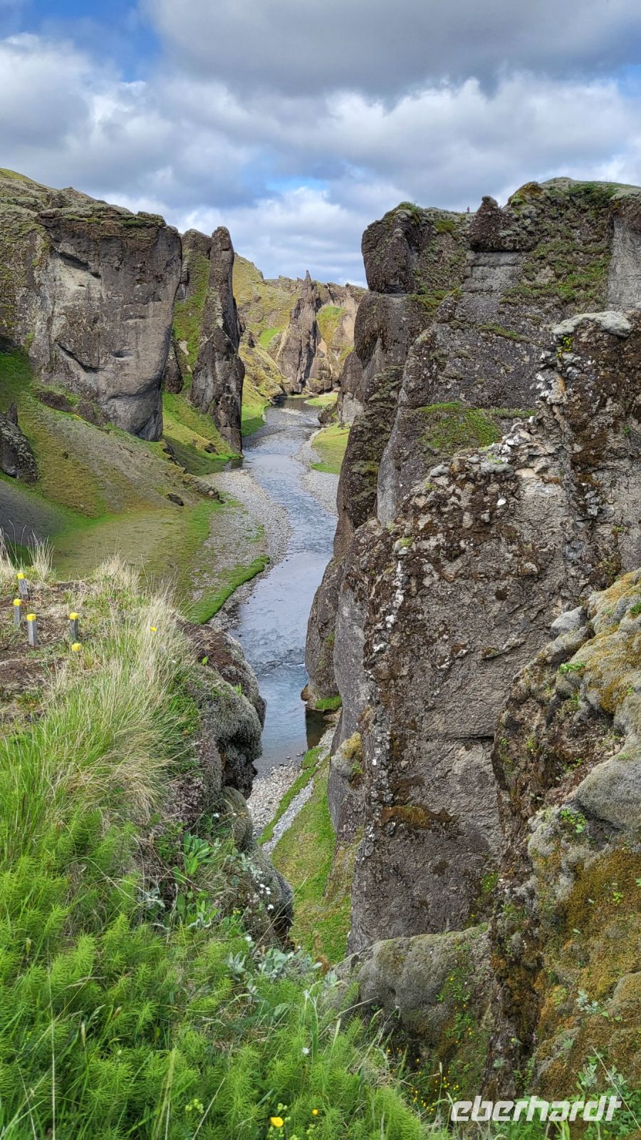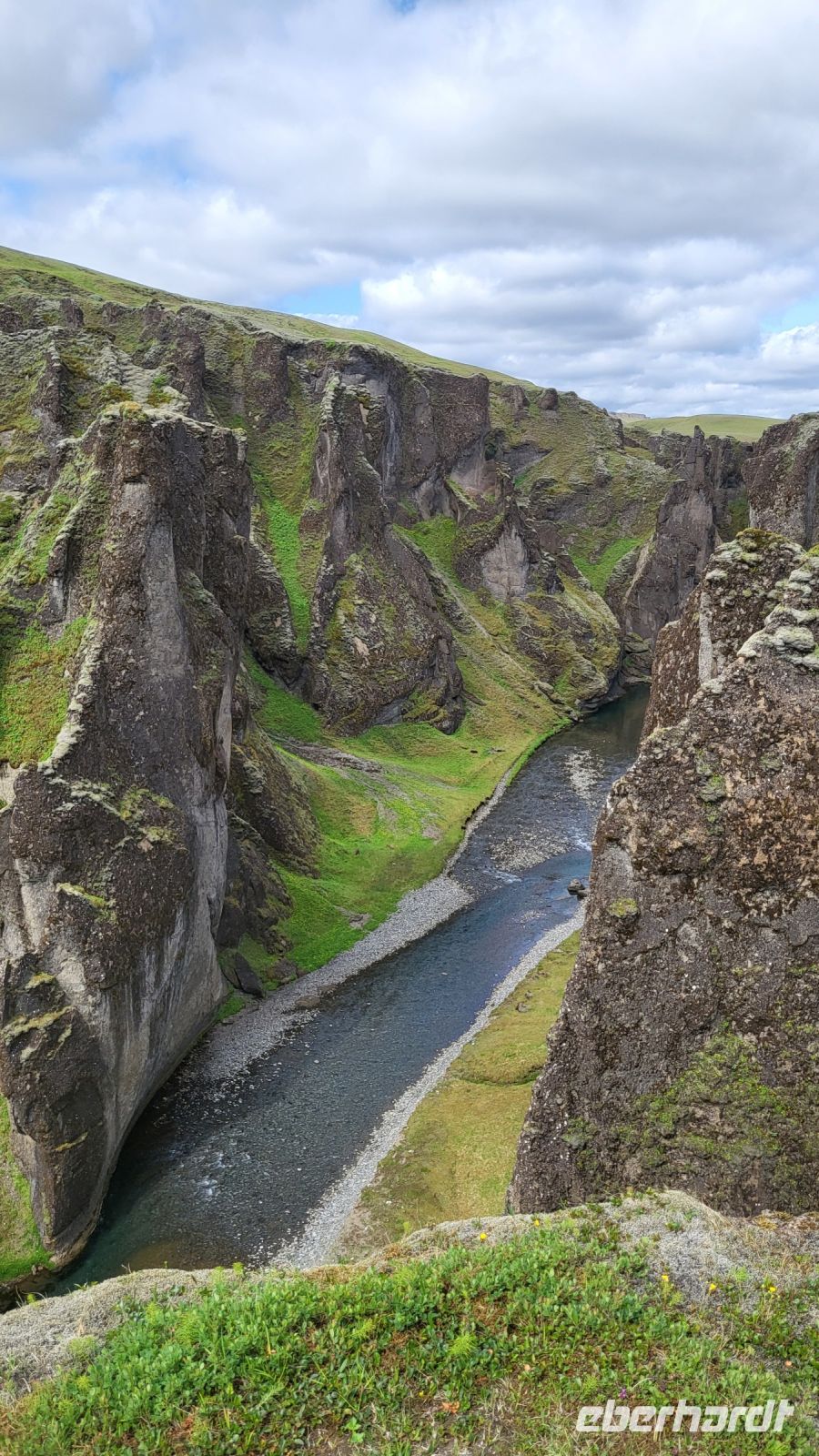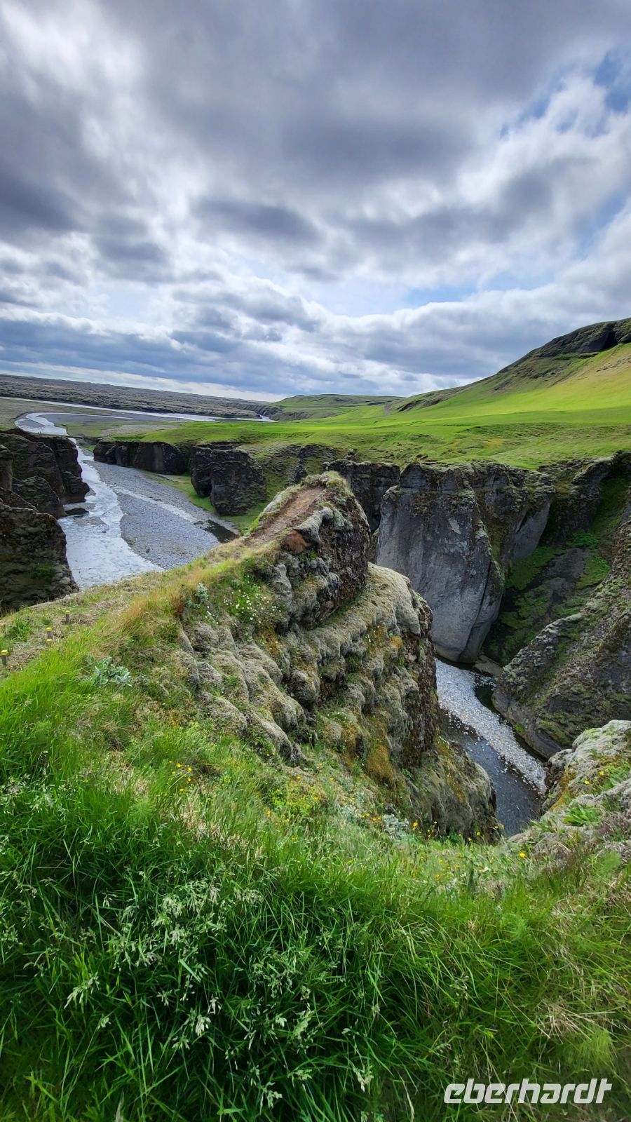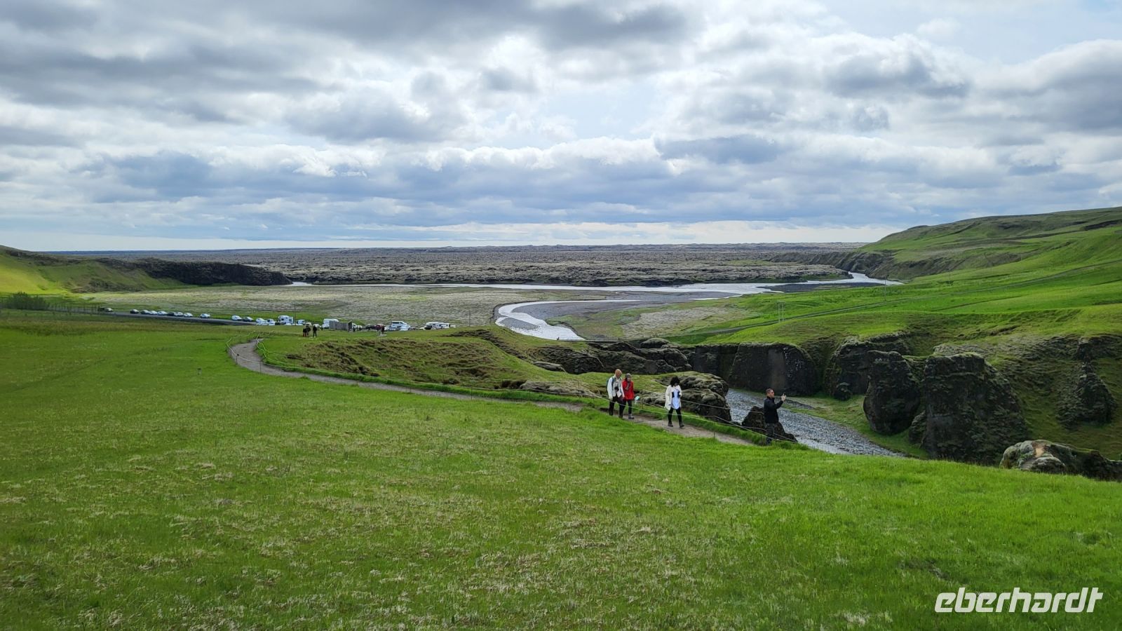 Entlang der folgenden Strecke legten wir immer mal wieder ein paar Fotostopps ein, sahen Islandpferde, alte Torfhäuser und besuchten schließlich die beeindruckenden Basaltsäulen von Kirkjubæjarklaustur. Die Säulen, die durch die Abkühlung von Lava entstanden sind, zeigten uns sichtbar die Macht der Naturgewalten. Unsere Reise führte uns weiter zur Schlucht von Fjaðrárgljúfur, einem der schönsten Naturwunder Islands. Eine kleine Wanderung entlang des Randes der Schlucht bot uns spektakuläre Aussichten auf die tief eingeschnittene, grün bewachsene Landschaft. Nachdem wir die Schönheit der Schlucht bewundert hatten, spazierten wir durch das Lavafeld Eldhraun. Dieses riesige Feld aus erkalteter Lava, das von grünem Moos bedeckt ist, war ein weiterer Beweis für die vulkanische Aktivität der Insel. Wenn nicht hier, wo sonst sollte man echte isländische Lava Käse-Cracker kosten? :-)