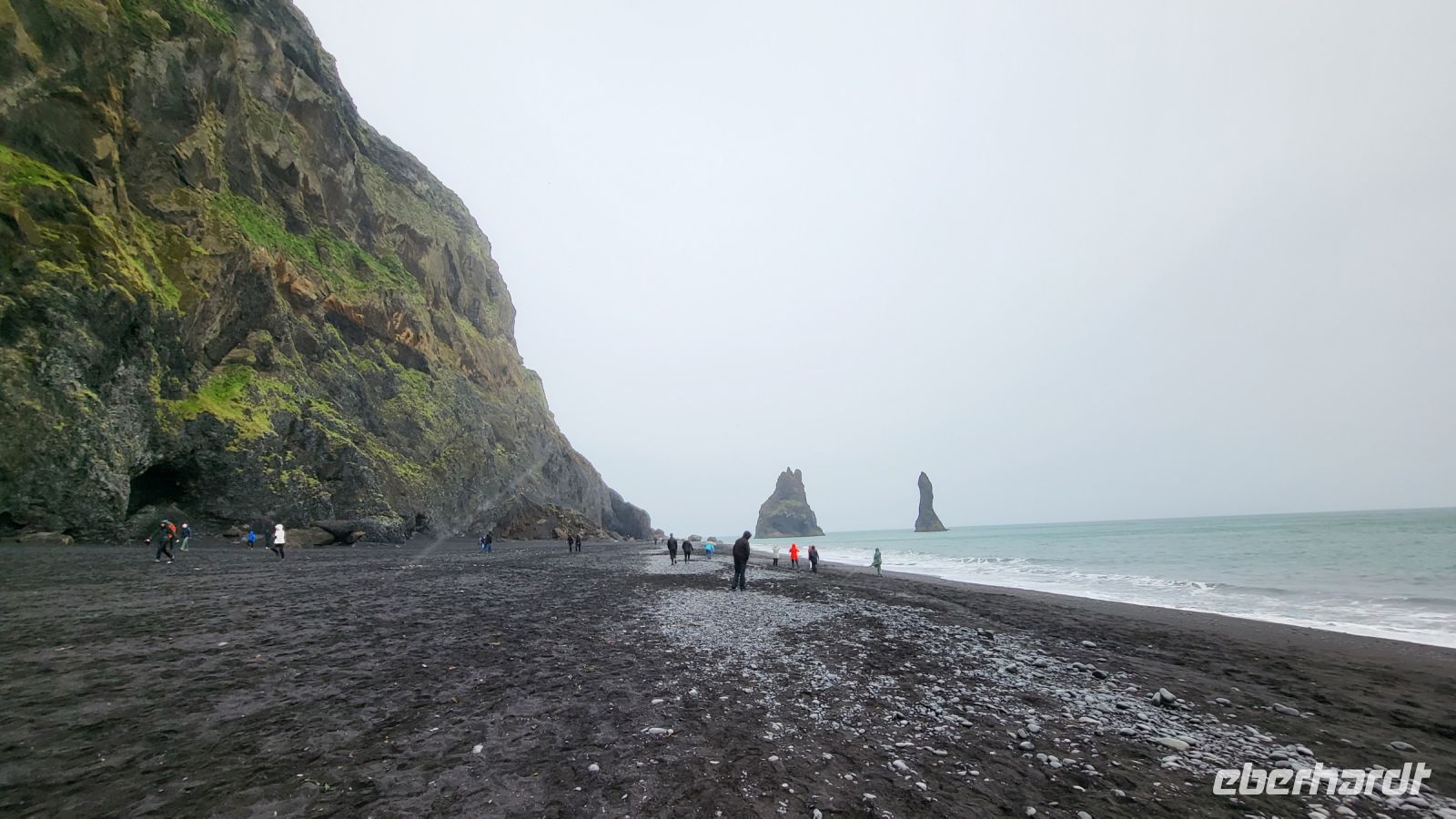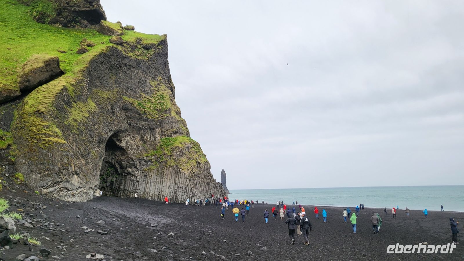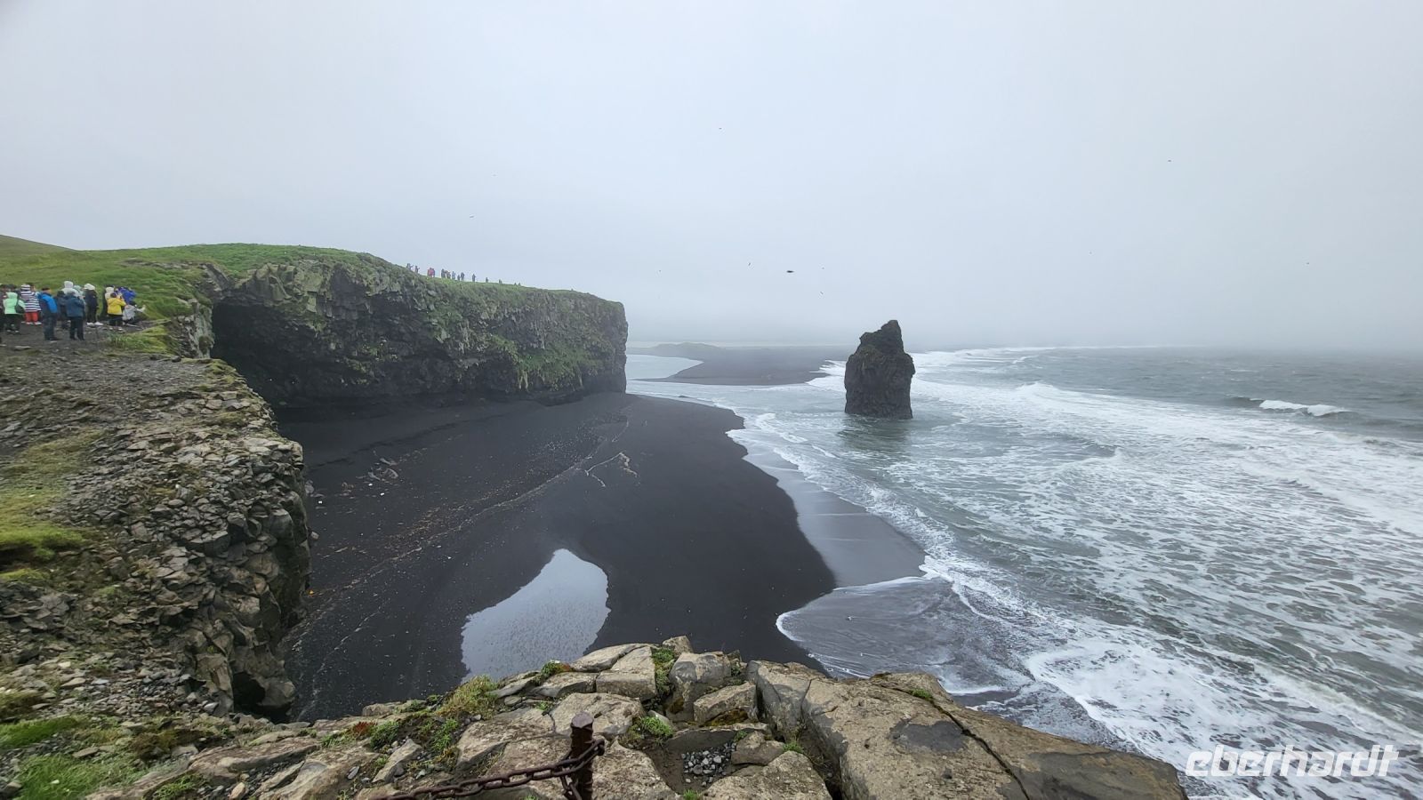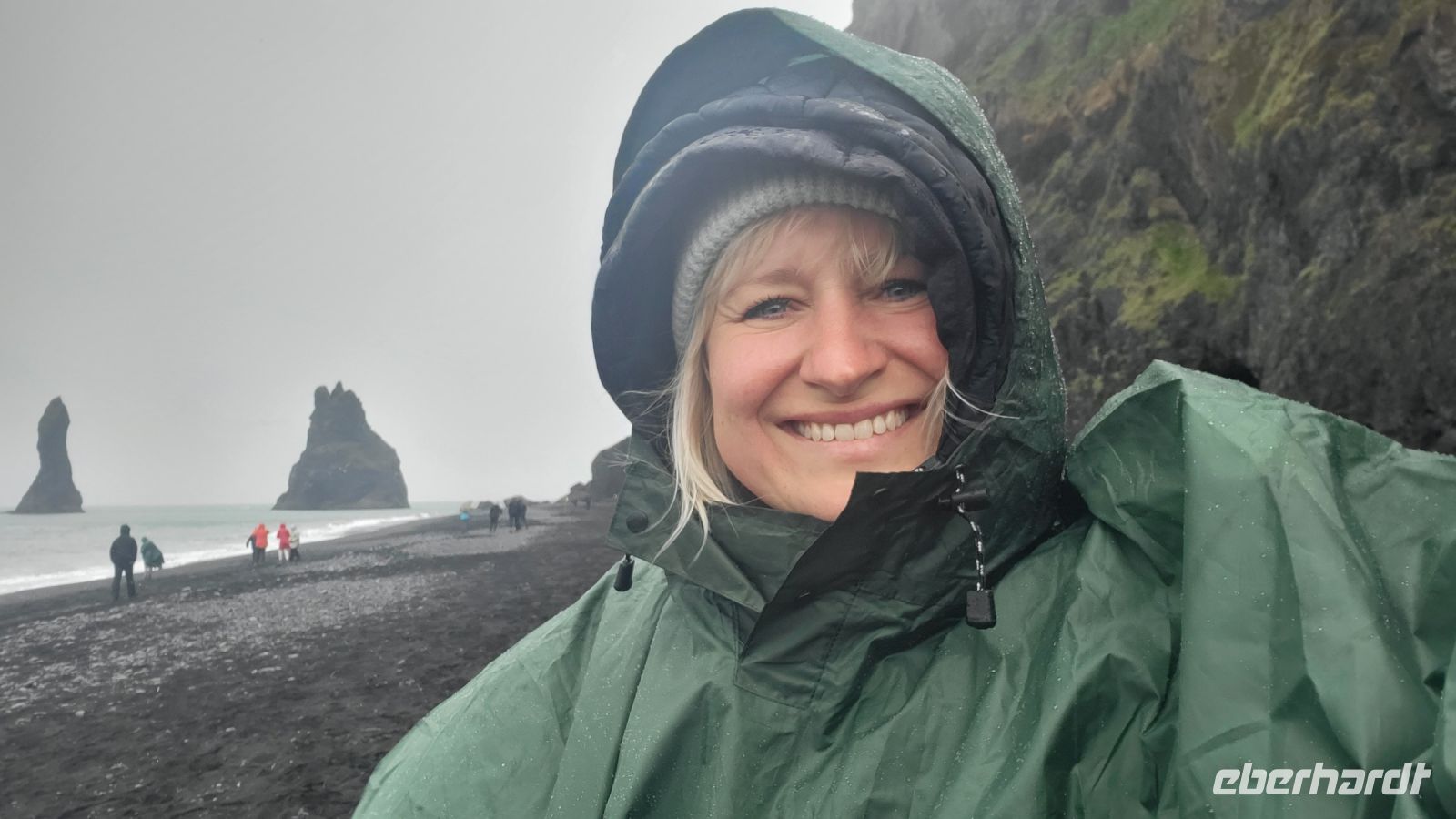 Trotz des Regens entschieden wir uns, den schwarzen Strand von Vik zu besuchen. Mit unseren Regenjacken machten wir uns auf den Weg über den pechschwarzen Sand. Die Wellen und der graue Himmel verstärkten nur den dramatischen Anblick, den dieser besondere Ort bietet. Obwohl der Regen unsere Sicht einschränkte, konnten wir die dunklen Silhouetten der Reynisdrangar im Meer sehen und die sagenumwobenen Basaltsäulen, schienen noch mystischer und unheimlicher als sonst.