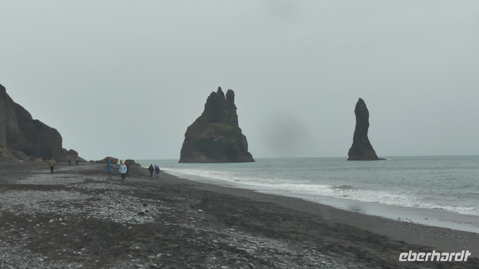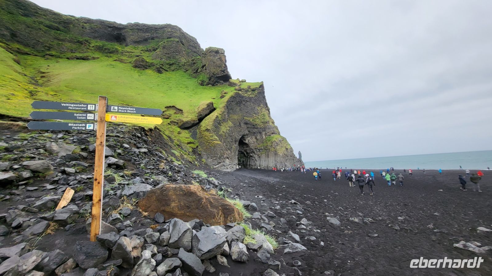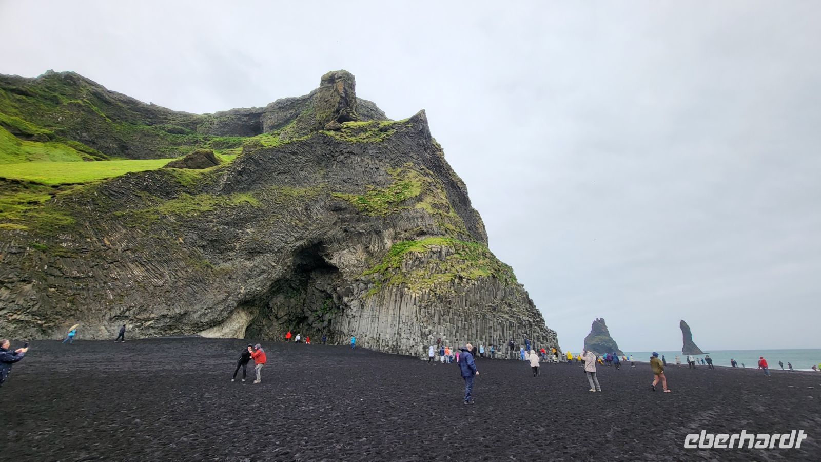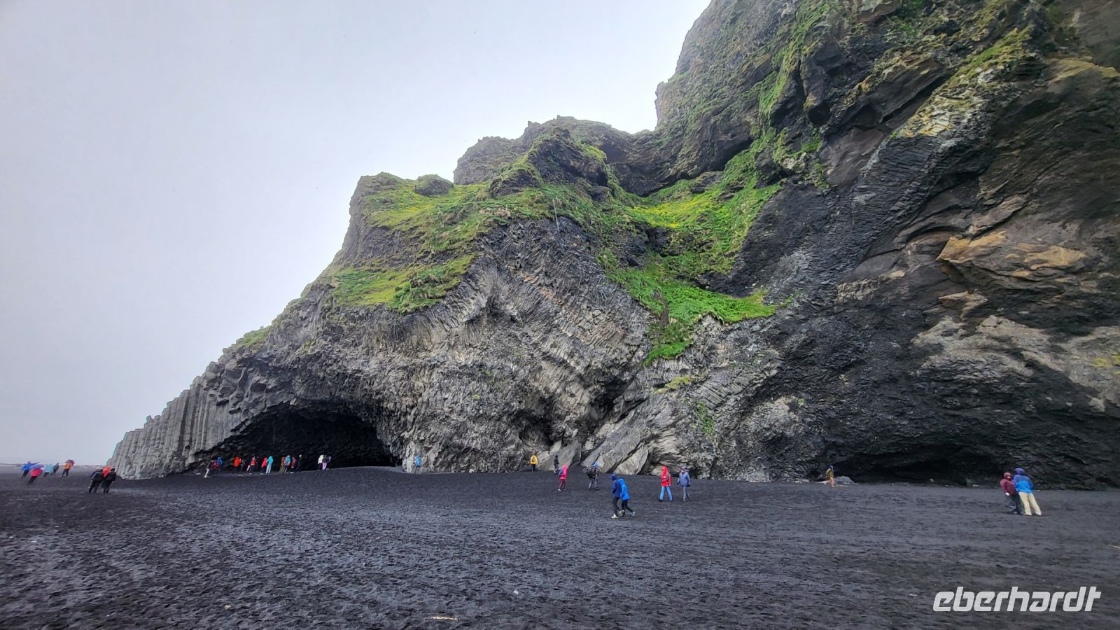 Trotz des Regens entschieden wir uns, den schwarzen Strand von Vik zu besuchen. Mit unseren Regenjacken machten wir uns auf den Weg über den pechschwarzen Sand. Die Wellen und der graue Himmel verstärkten nur den dramatischen Anblick, den dieser besondere Ort bietet. Obwohl der Regen unsere Sicht einschränkte, konnten wir die dunklen Silhouetten der Reynisdrangar im Meer sehen und die sagenumwobenen Basaltsäulen, schienen noch mystischer und unheimlicher als sonst.