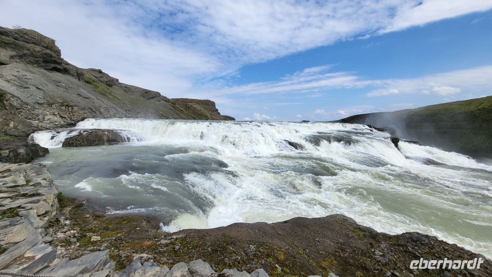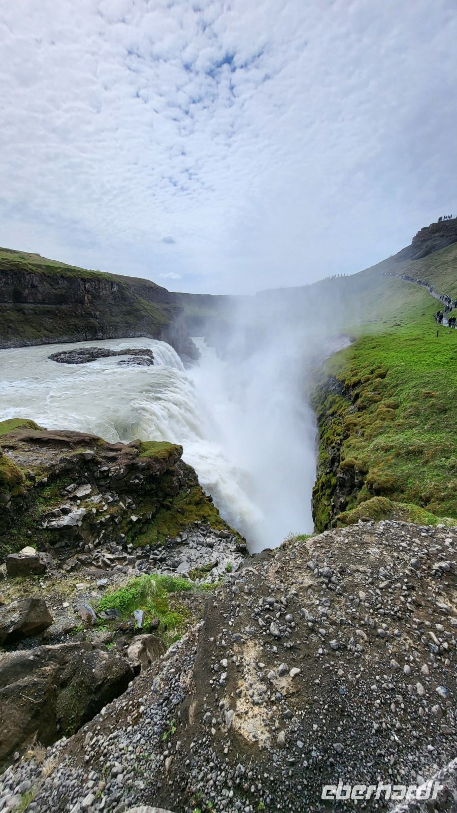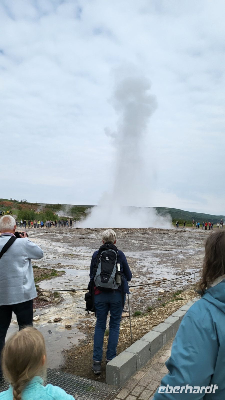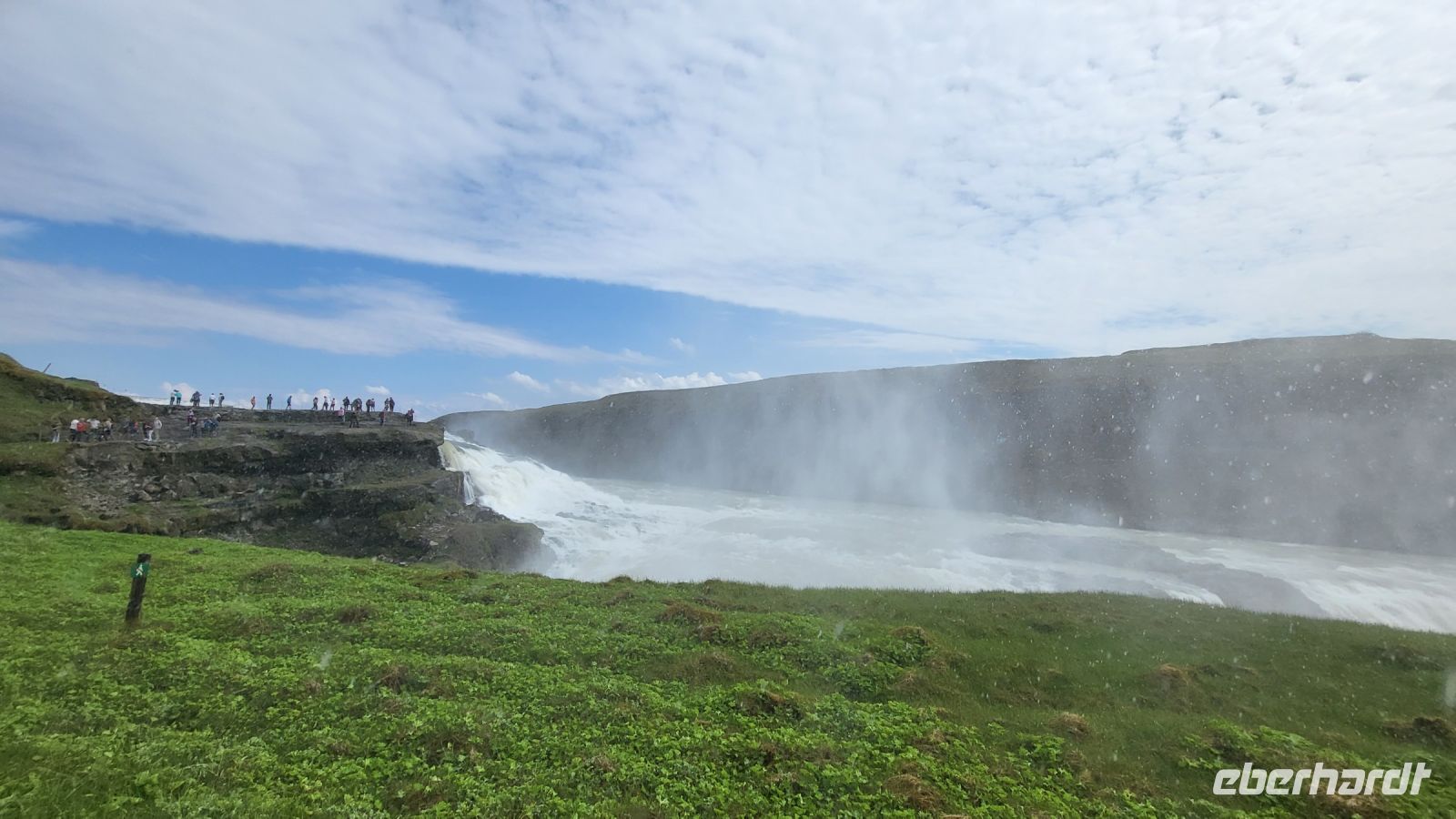 Im Anschluss bewunderten wir den beeindruckenden Gullfoss-Wasserfall, der mit seiner breiten Front über zwei mächtige Kaskaden ins Tal stürzte.