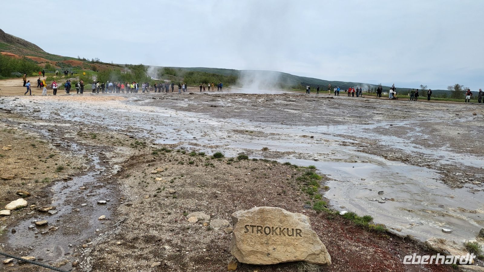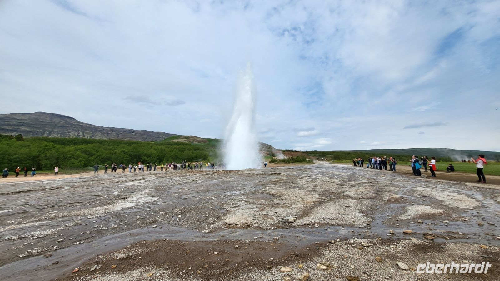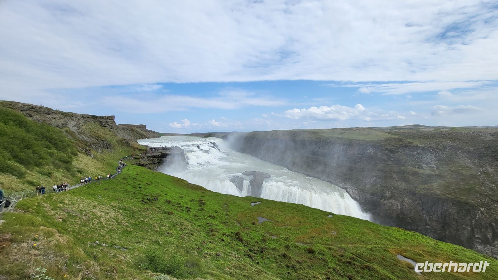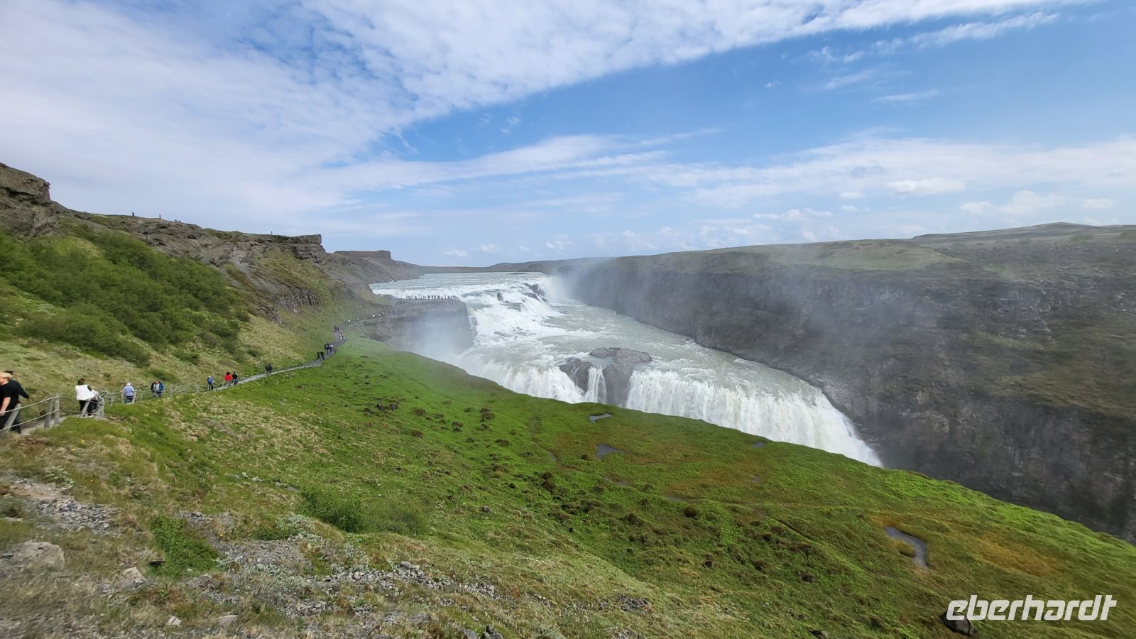 Im Anschluss bewunderten wir den beeindruckenden Gullfoss-Wasserfall, der mit seiner breiten Front über zwei mächtige Kaskaden ins Tal stürzte.