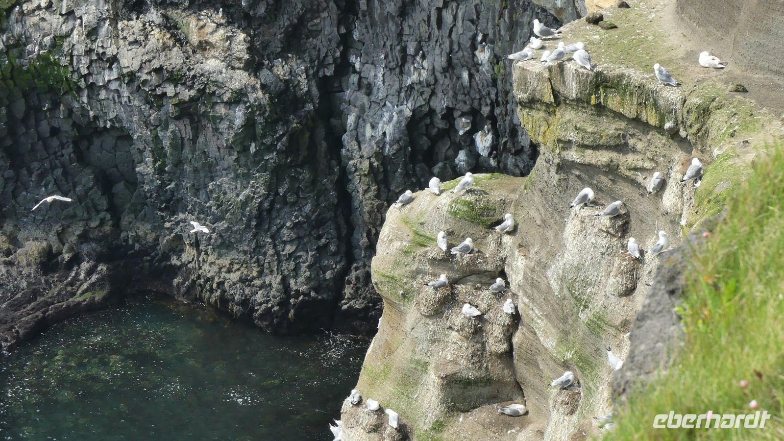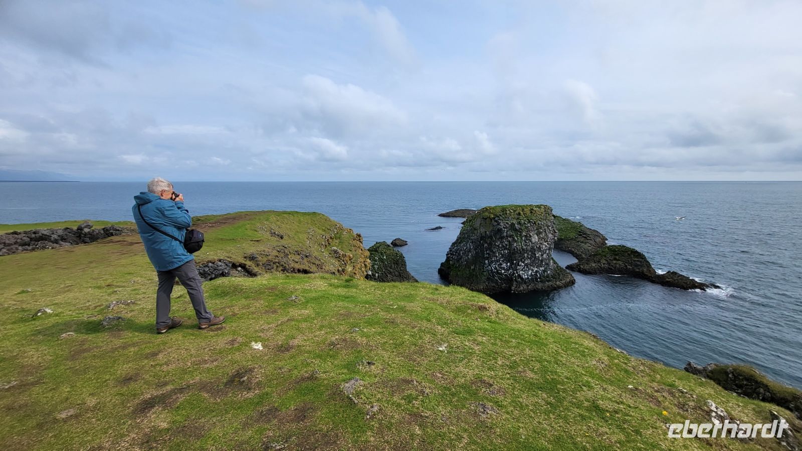 Unser nächster Halt war an den markanten Felsnadeln von Lóndrangar, wo wir einen Fotostopp einlegten. Die geheimnisvolle Atmosphäre und die imposante Größe der Felsen faszinierten uns. Für unsere Mittagspause machten wir Rast in Arnastapi, einem malerischen Ort direkt an der wilden Küste. Während wir entlang des Küstenwegs spazierten, wurden wir von den wunderschönen Aussichten auf das Meer und die umliegenden Klippen verwöhnt. Dabei konnten wir sogar eine Robbe vergnügt beobachten, die stolz ihren gefangenen Fisch präsentierte, während eine Möwe versuchte, ihn ihr zu stehlen.