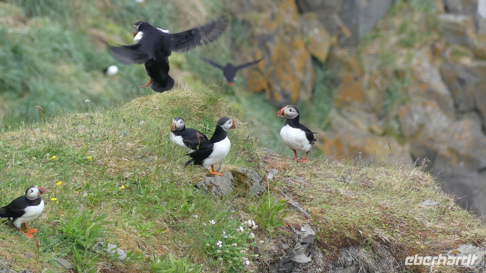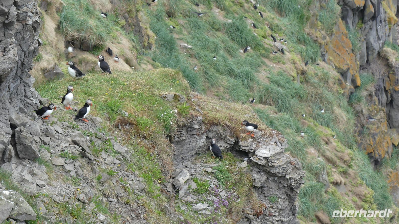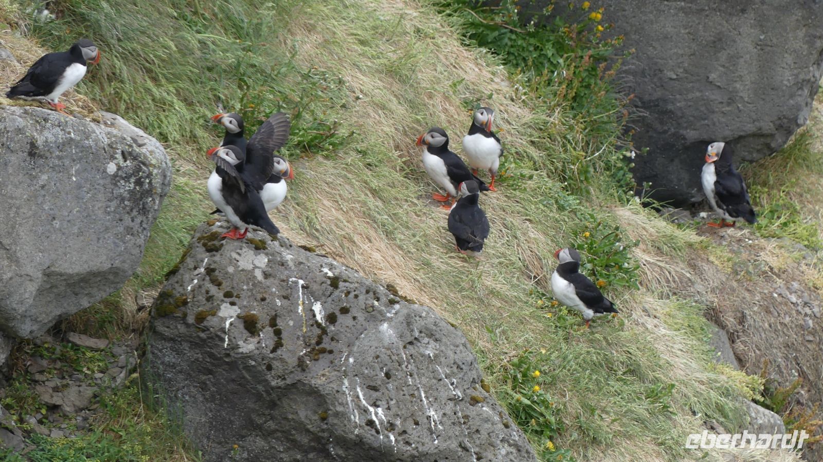 Unser Tag begann mit dem Besuch des Godafoss, auch bekannt als "Wasserfall der Götter". Dieses atemberaubende Naturwunder, das seinen Namen von einer wichtigen historischen Begebenheit erhielt, als im Jahr 1000 n. Chr. die heidnischen Götterbilder in den Wasserfall geworfen wurden, war ein spektakulärer Anblick. Von dort aus fuhren wir nach Husavik, einem malerischen Fischerdorf im Norden Islands. Bekannt als die "Walhauptstadt" Islands, bot Husavik eine charmante Mischung aus kleinstädtischem Flair und reicher maritimer Geschichte. Unser Reiseleiter Ari führte durch den Ort und gab uns interessante Einblicke. Auf dem Weg zum nächsten geologischen Highlight, legten wir einen spontanen Stopp an der Küste ein um Puffins zu beobachten. Diese farbenfrohen und einzigartigen Vögel, auch Papageientaucher genannt, sind ein Synonym für die isländische Tierwelt. Wir beobachteten sie, wie sie teilweise ungeschickt durch die Luft flatterten und in die Wellen tauchten, auf der Suche nach Fischen. Wenn das Schauspiel kein Bild wert war :-)