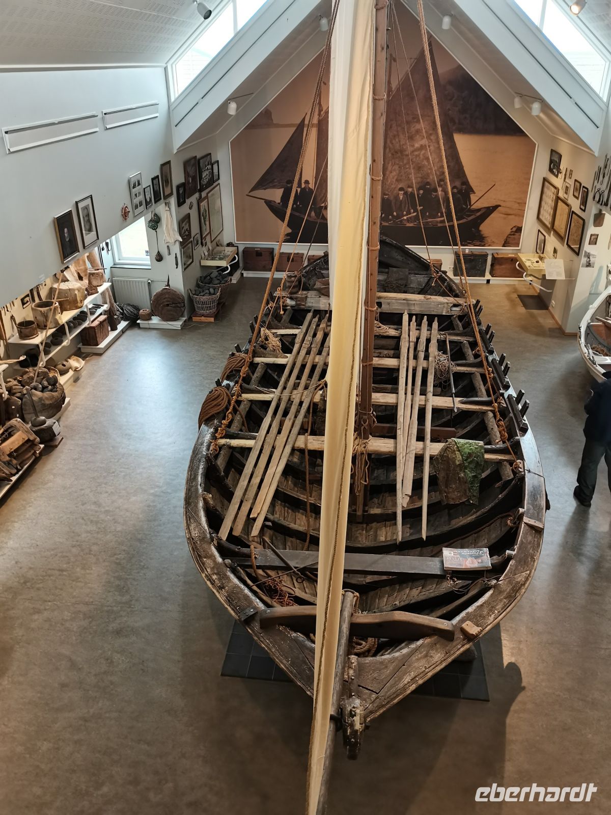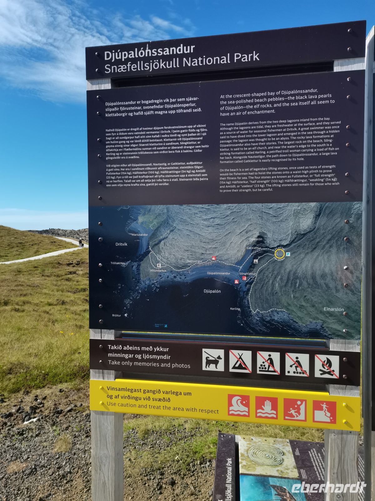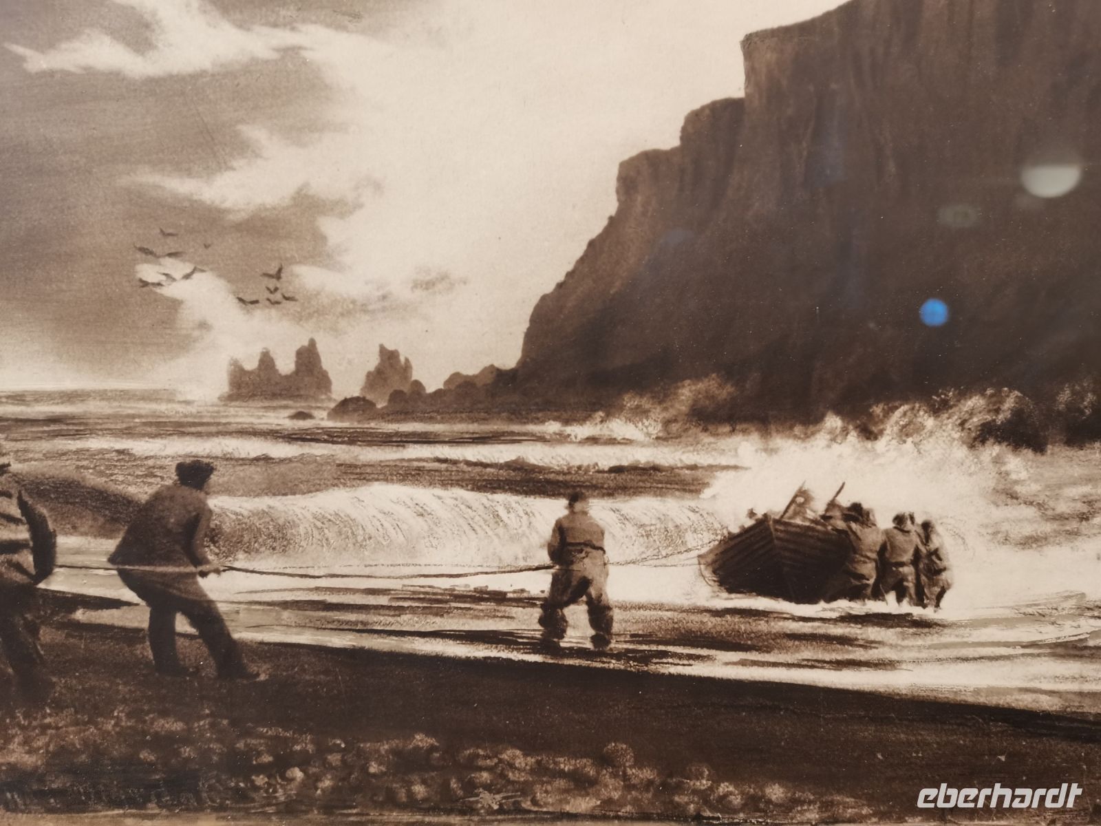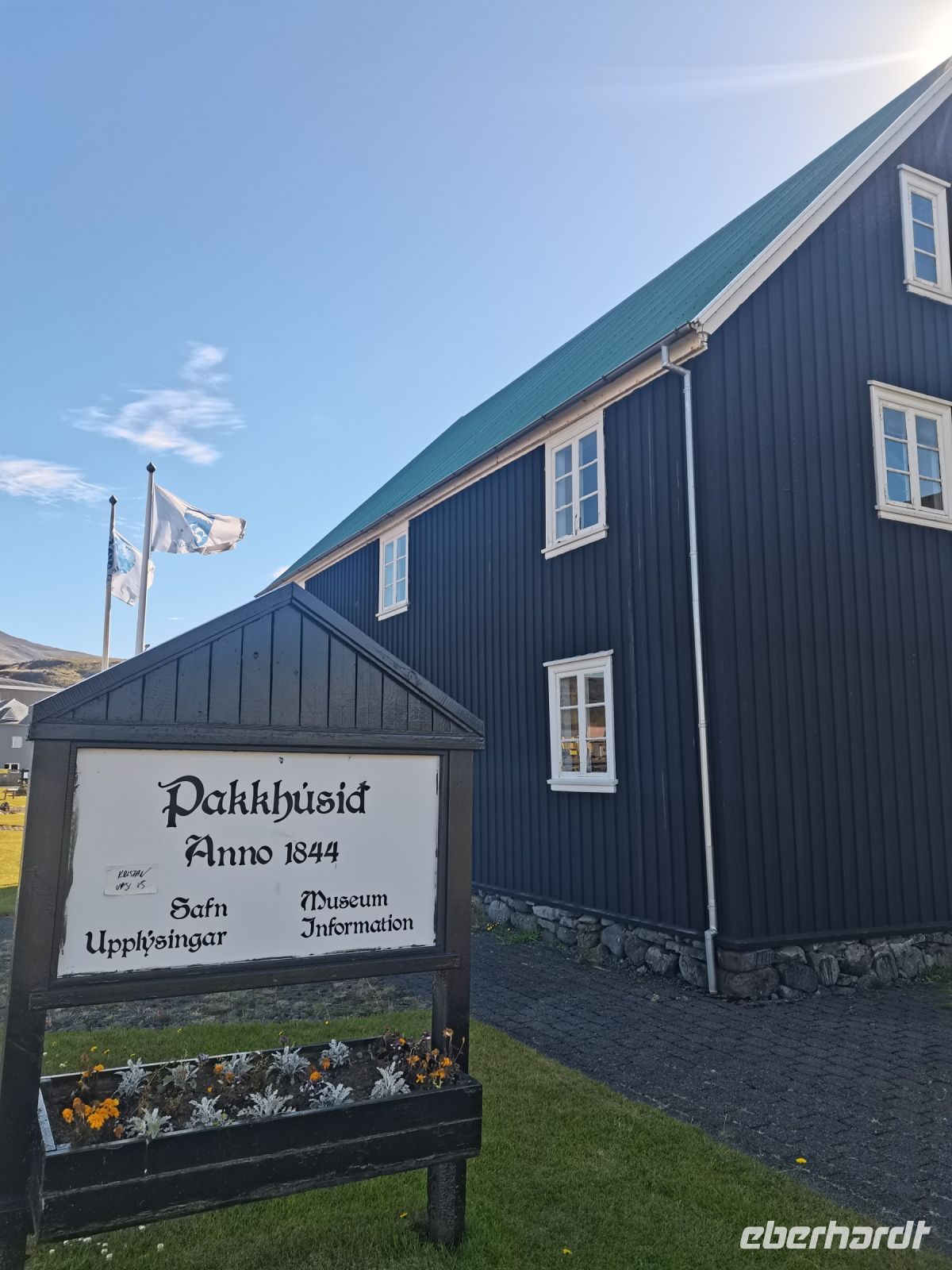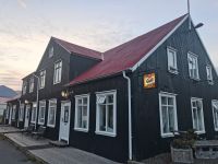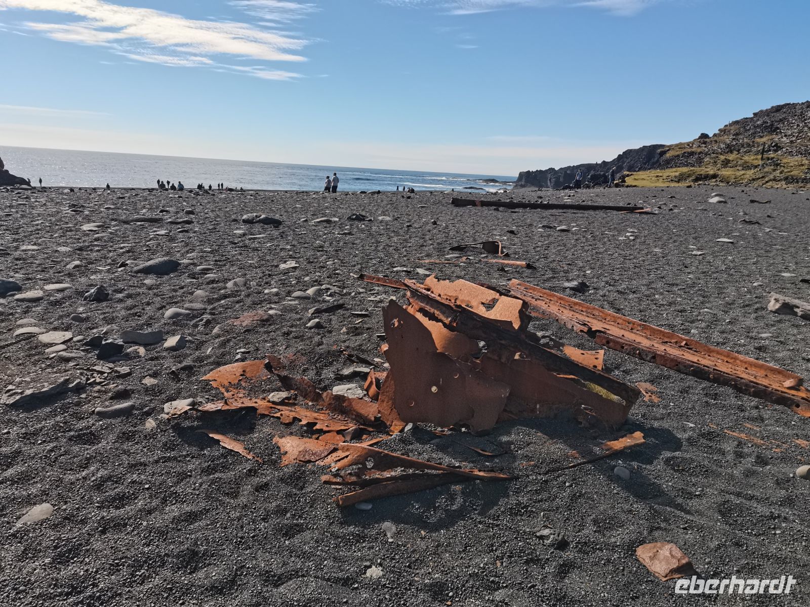 Der nächste Halt ist mitten im Nationalpark Snæfellsjökull an der Bucht Djúpalónssandur. Hier soll ein Schiffswrack liegen. Wir steigen einen zerklüfteten Felspfad hinunter. Die Formen erinnern an Skulpturen und Trolle. Wir gelangen schnell in eine weite Bucht mit schwarzem Sand und einem kleinen See. Tatsächlich liegen hier verstreut die Teile eines britischen Schiffswracks von 1948. Sie erinnern an die vielen Toten, die hier beim Schiffsbruch ums Leben gekommen sind. In der breiten Bucht auf der Halbinsel Snaefellsnes lagen einst viele Fischerboote, doch die Arbeit war hart und gefährlich, weshalb die Fischer aus den einstigen Dörfern weggezogen sind. Auf der Weiterfahrt bieten sich immer neue atemberaubende Ausblicke.Wir machen einen kurzen Stopp im ehemaligen Fischerort Ólafsvik. Hier stehen eine moderne Kirche und eines der ältesten Häuser Islands. Heute ist das zweistöckige Holzhaus von 1844 ein Museum.
