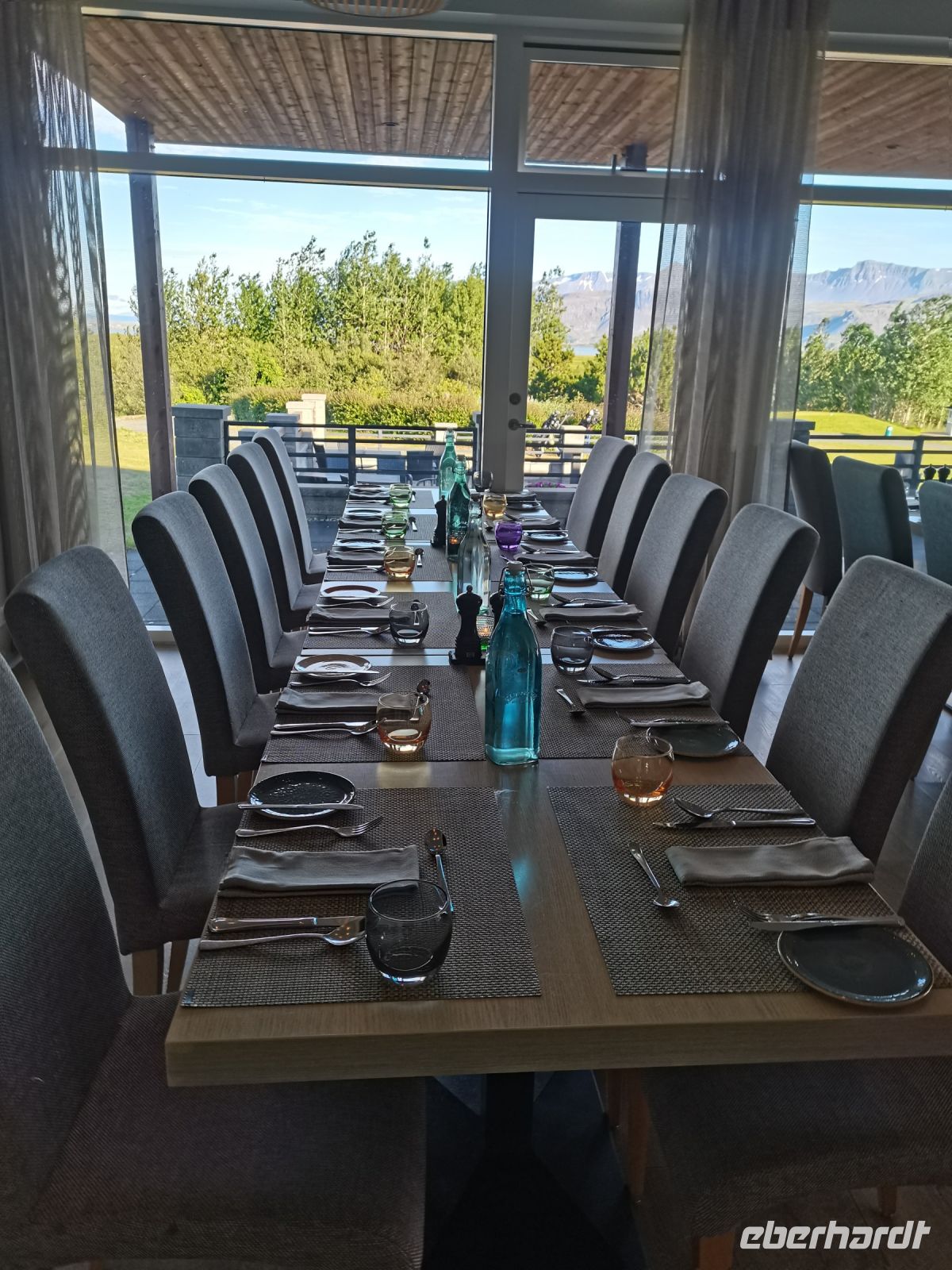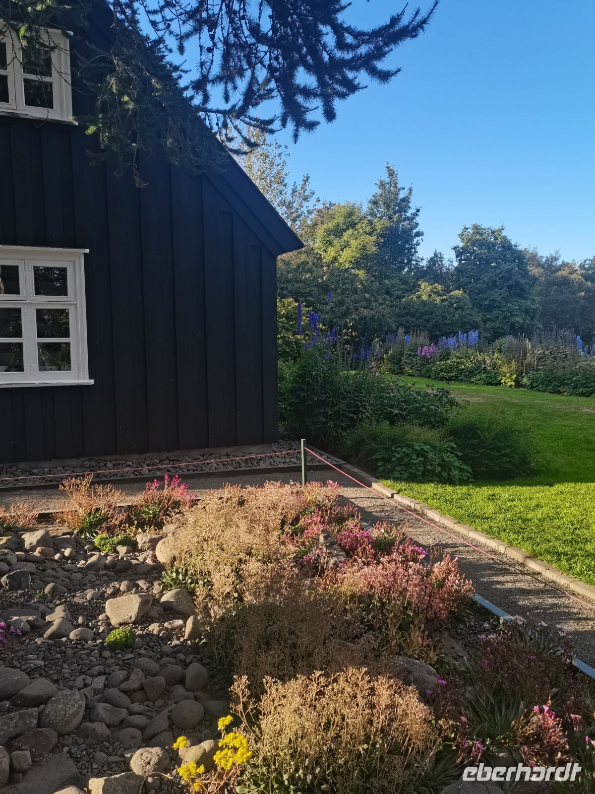 Am späten Nachmittag kommen wir in unserer Unterkunft in Akureyri, einer größeren Stadt am Fuße des Fjords Eyjafjördur im Norden Islands an. Hier liegt ein wunderschöner Botanischer Garten, in dem sich auch das Restaurant für unser Abendessen befindet. Der Inhaber und Chefkoch ist ein begeisterter Gourmet und präsentiert uns stolz die Gerichte auf der Basis regionaler Küche, zu der natürlich tagesfrischer Fisch gehört. Wir lassen den Abend gemütlich ausklingen und genießen die Ruhe nach einem ereignisreichen Tag.