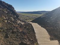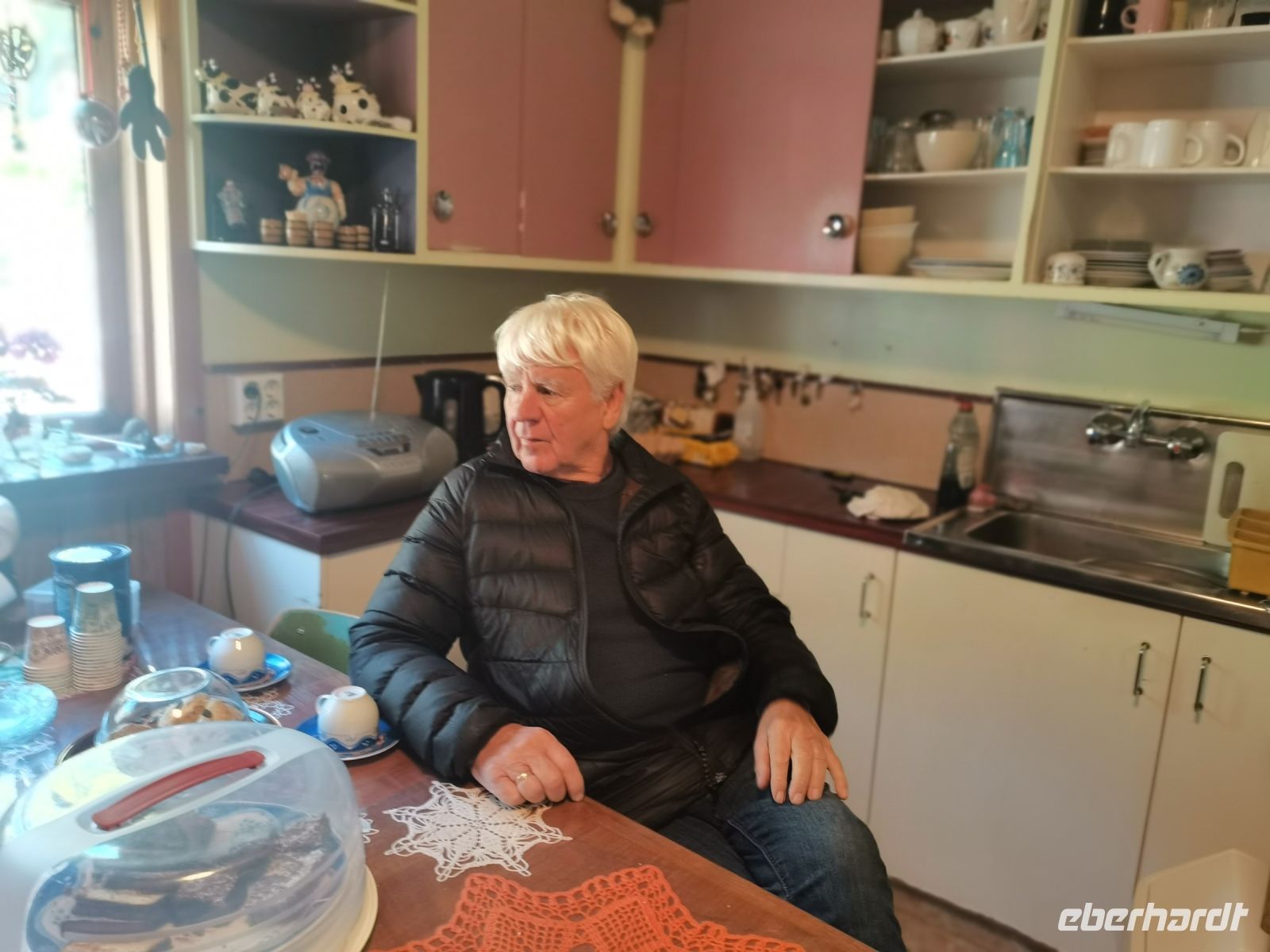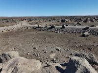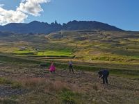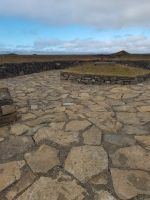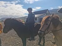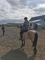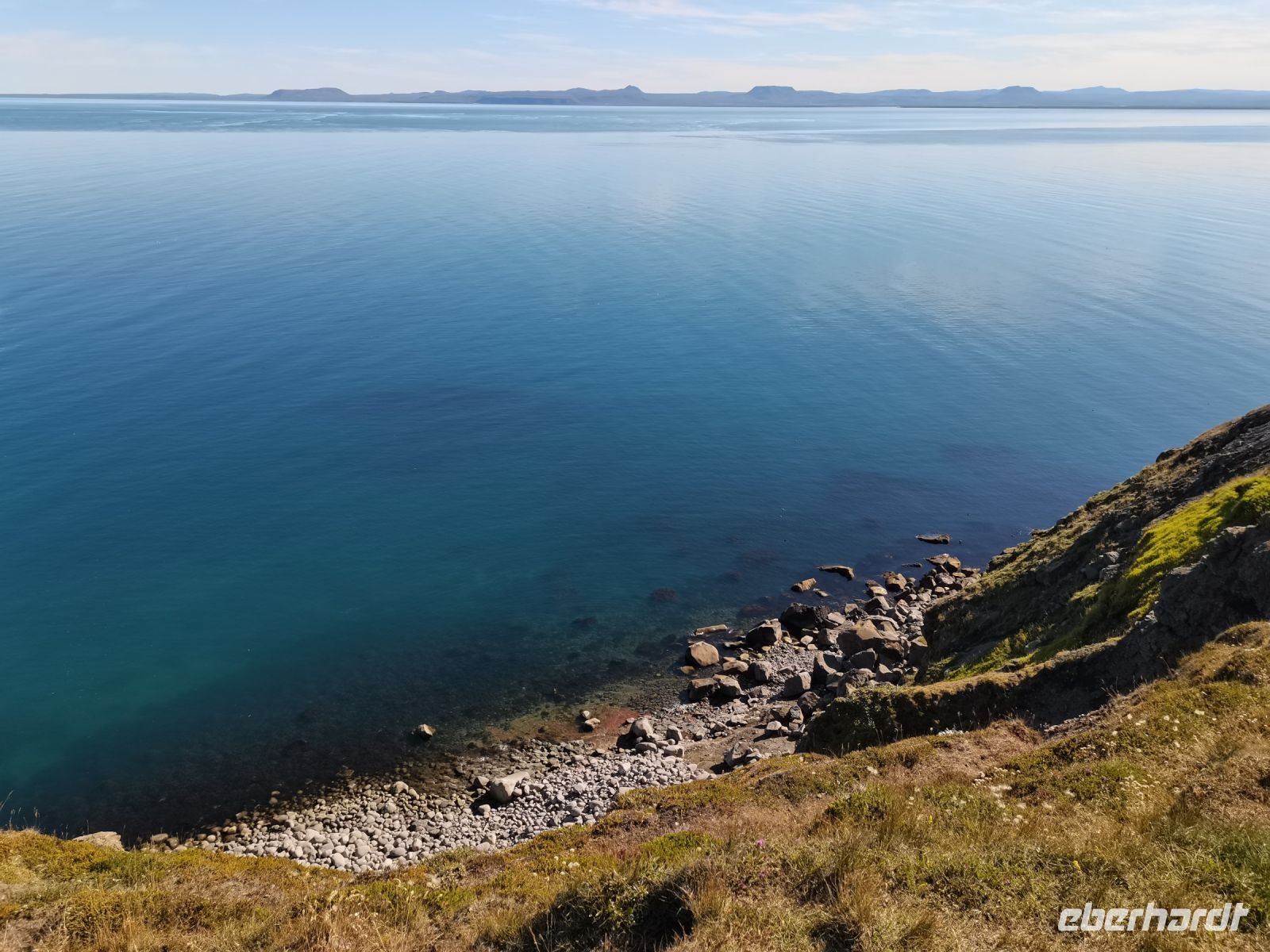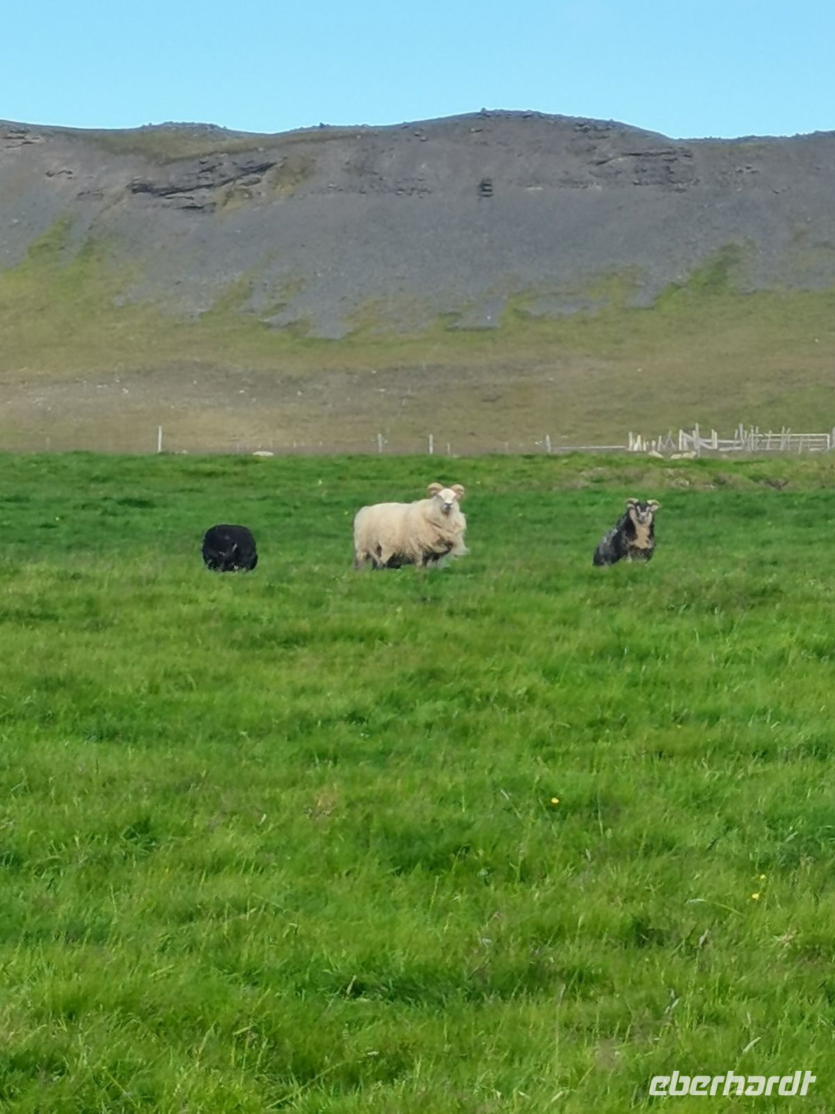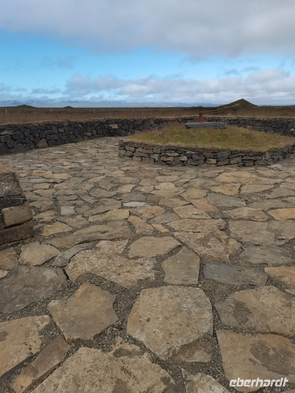 Der nächste Stopp ist besonders ungewöhnlich und liegt in einer Landschaft aus vielen kleinen Hügeln. Wir halten an der Gedenkstätte, an der die letzte Hinrichtung Islands im Jahr 1830 stattgefunden hat. Das Beil traf die Mörderin Agnes Magnusdottir, eine Magd, und ihren Komplizen Friðrik Sigurðsson. Wir schreiten durch ein rotes Eisentor und lesen auf den Steintafeln am Wegesrand Stück für Stück die bewegende Geschichte aus den rauen Zeiten Islands, in denen Armut, harte Arbeit und Einsamkeit vorherrschten. Im Anschluss machen wir Rast im Ort Blönduós. Gestärkt erreichen wir den Pferdehof Lytingsstadir. Hier erwarten uns die Inhaber und zwei junge Kennerinnen von Islandpferden. Die beiden Deutschen verbringen den Sommer auf der Insel. Sie erzählen uns von den Besonderheiten der Tiere, die einmal fort von Island, niemals mehr zurückkommen dürfen. Wir sehen die verschiedenen Galopparten in der Vorführung und besuchen die typischen Torfhäuser, die auf dem Gelände authentisch nachgebaut wurden. Im Anschluss sind wir zu einer Kaffee- bzw. Teepause eingeladen, bei der uns das Gebäck "Eheglück" angeboten wird. Es ist so köstlich, dass wir uns das Rezept mit nach Hause nehmen.