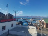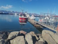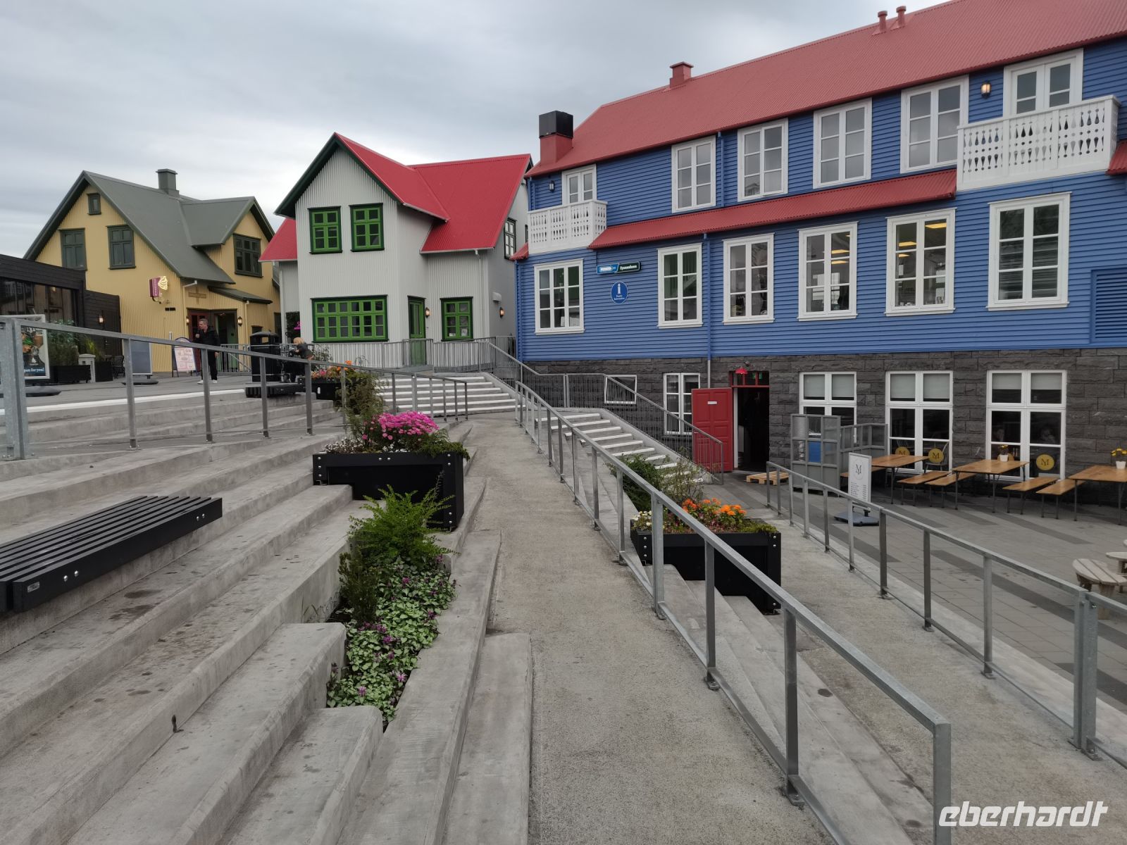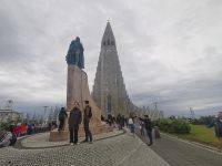 Alle Reisegäste, die den Berliner Flughafen genutzt haben, treffen sich am frühen Morgen mit mir am Flughafen, um gemeinsam einzuchecken. Wir haben noch ausreichend Zeit für ein Frühstück am Flughafen, bevor der Flug nach Keflavik mit Iceland Air startet. Die Landung ist recht pünktlich. In Island angekommen, stellen wir die Uhren zunächst zwei Stunden zurück. Am Flughafen erwartet uns schon unsere Reiseleiterin Rósa Mária. Das Wetter ist bei Ankunft etwas trüb, aber Rósa lenkt uns auf der 40-minütigen Fahrt zum Hotel in Reykjavik mit ersten Informationen über Land und Leute vom leichten Regen ab. Zwei weitere Gäste mit einem späteren Flug stoßen am Nachmittag zur Gruppe hinzu. Nachmittags ist Zeit, die Stadt zu besichtigen, eines der vielen Restaurants zum Mittagessen aufzusuchen und die Zimmer zu beziehen. Die gemeinsame Zeit für alle beginnt mit einem isländischen Abendessen in einem typischen Restaurant, das uns sofort von der Kochkunst der Isländer überzeugt. Trinkwasser gibt es in Lokalen in Island übrigens für alle immer gratis zum Essen dazu, denn Island hat wahrscheinlich das sauberste Leitungswasser der Welt (auch wenn es mal leicht nach Schwefel riechen kann, wenn es aus dem Hahn kommt). Wir verbringen die ersten zwei Nächte in der nördlichsten Stadt der Erde.