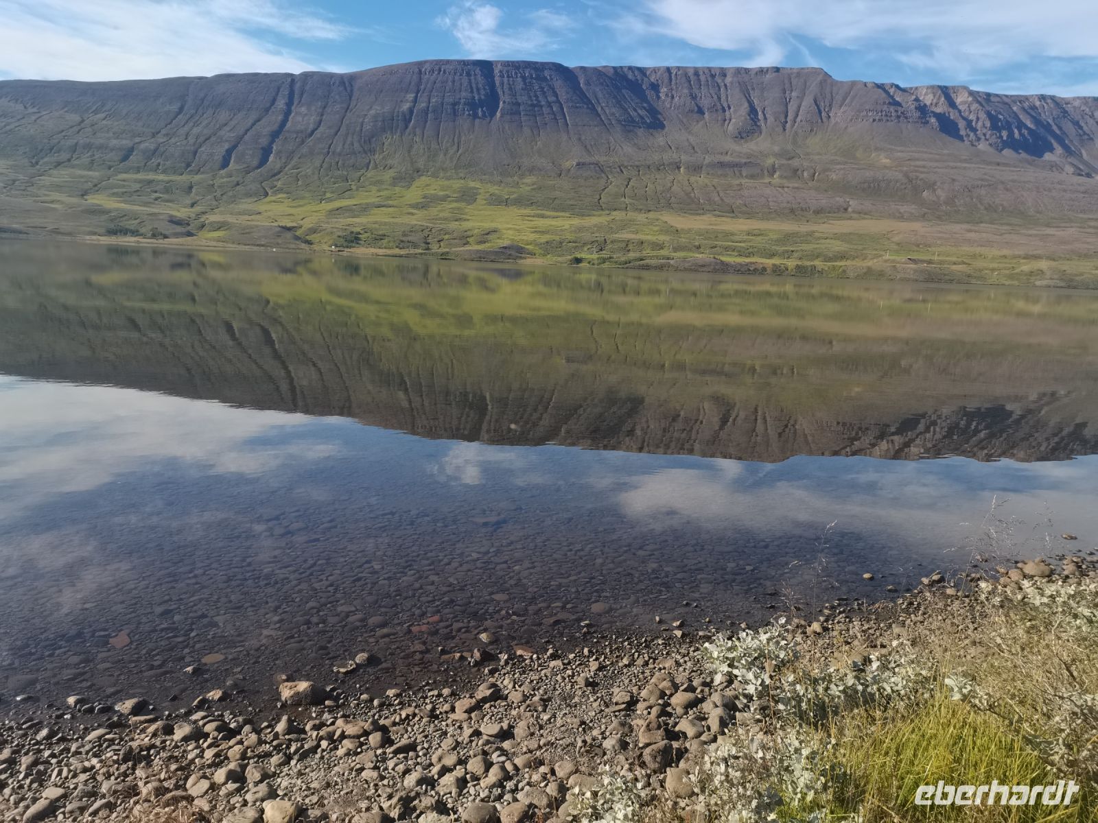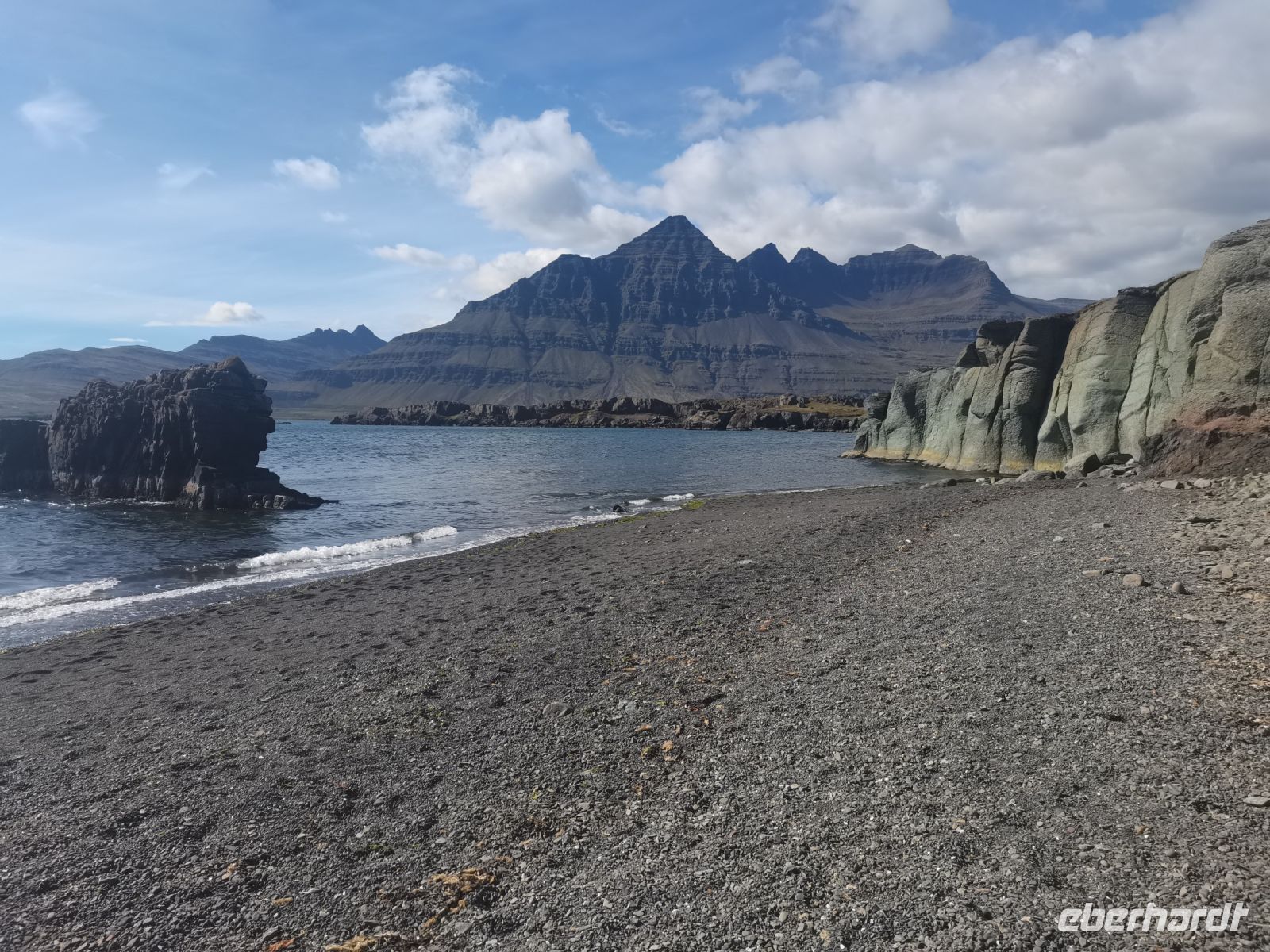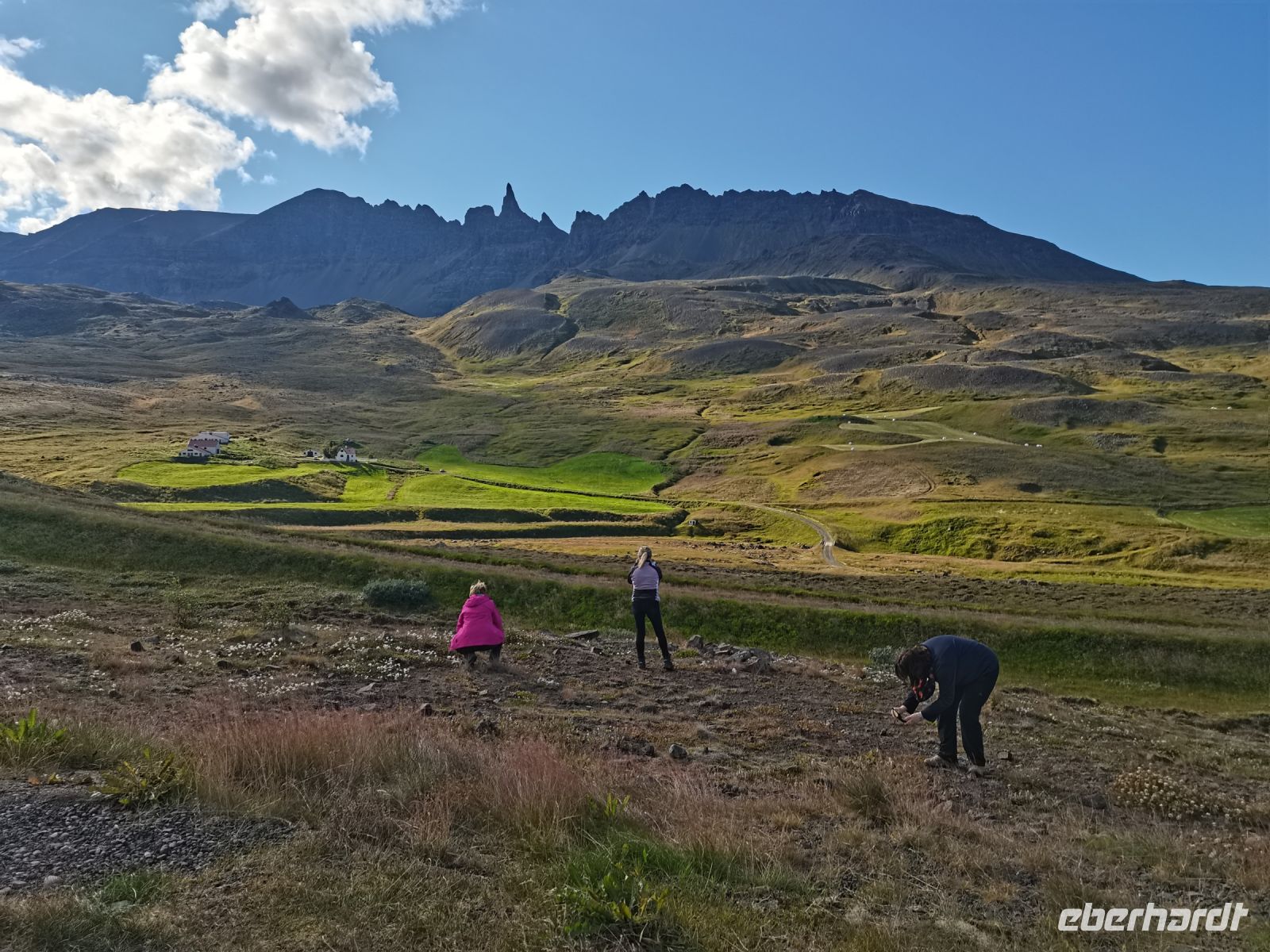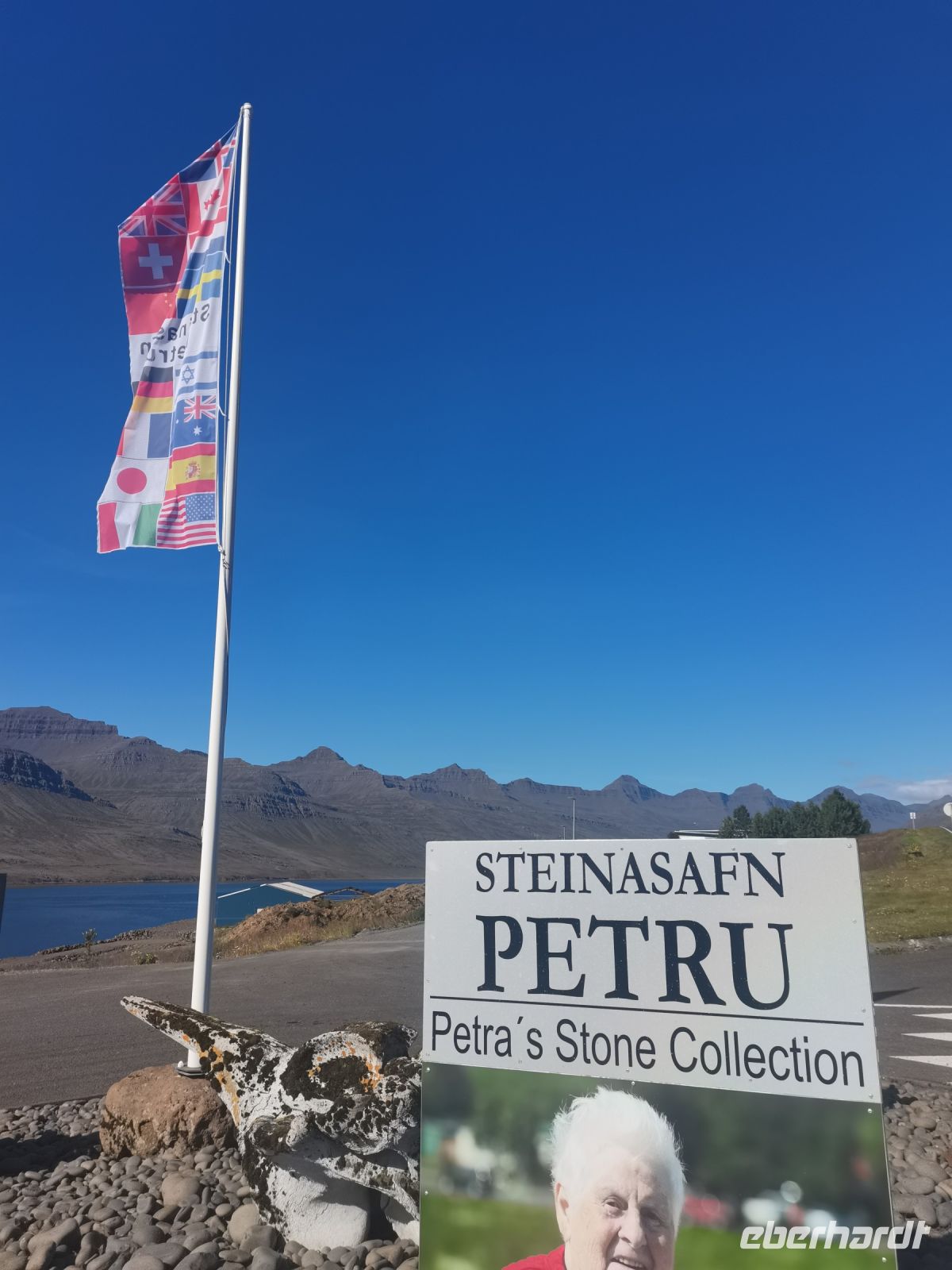 Schon wieder strahlt die Sonne und es zeigen sich kaum Wolken am Himmel. Heute fahren wir kreuz und quer über die südlichen Ostfjorde. Die Panoramastraße bietet viele eindrucksvolle Fotostopps. Wir sind auf dem Weg zur privaten Steinsammlung von Petra Sveinsdóttir in Stöðvarfjörður. Wir erfahren, dass Petra bereits als kleines Mädchen von Mineralien fasziniert war. Bis zu ihrem Lebensende hat sie Steine und viele andere Dinge gesammelt und ihr Haus den Besuchern zur Verfügung gestellt. Heute pflegen ihre Nachkommen die beeindruckende Sammlung, die jedes Jahr zahlreiche Besucher in die Region zieht. Nach einem kurzen Stopp im großen Kunsthandwerksgeschäft des Ortes machen wir uns auf den Weg zu unserem nächsten Übernachtungsort. Die Fahrt ist noch lang, und wir haben Zeit für viele Fotostopps. Wir machen Halt am "Grünen Felsen", eine kleine Bucht, die einen Abstecher lohnt. Ein weiterer Wasserfall im Fossardalur-Tal steht noch auf unserem Programm. Jeder Wasserfall ist anders spektakulär, das macht die vielfältige Landschaft dieser Insel voller Naturwunder aus.