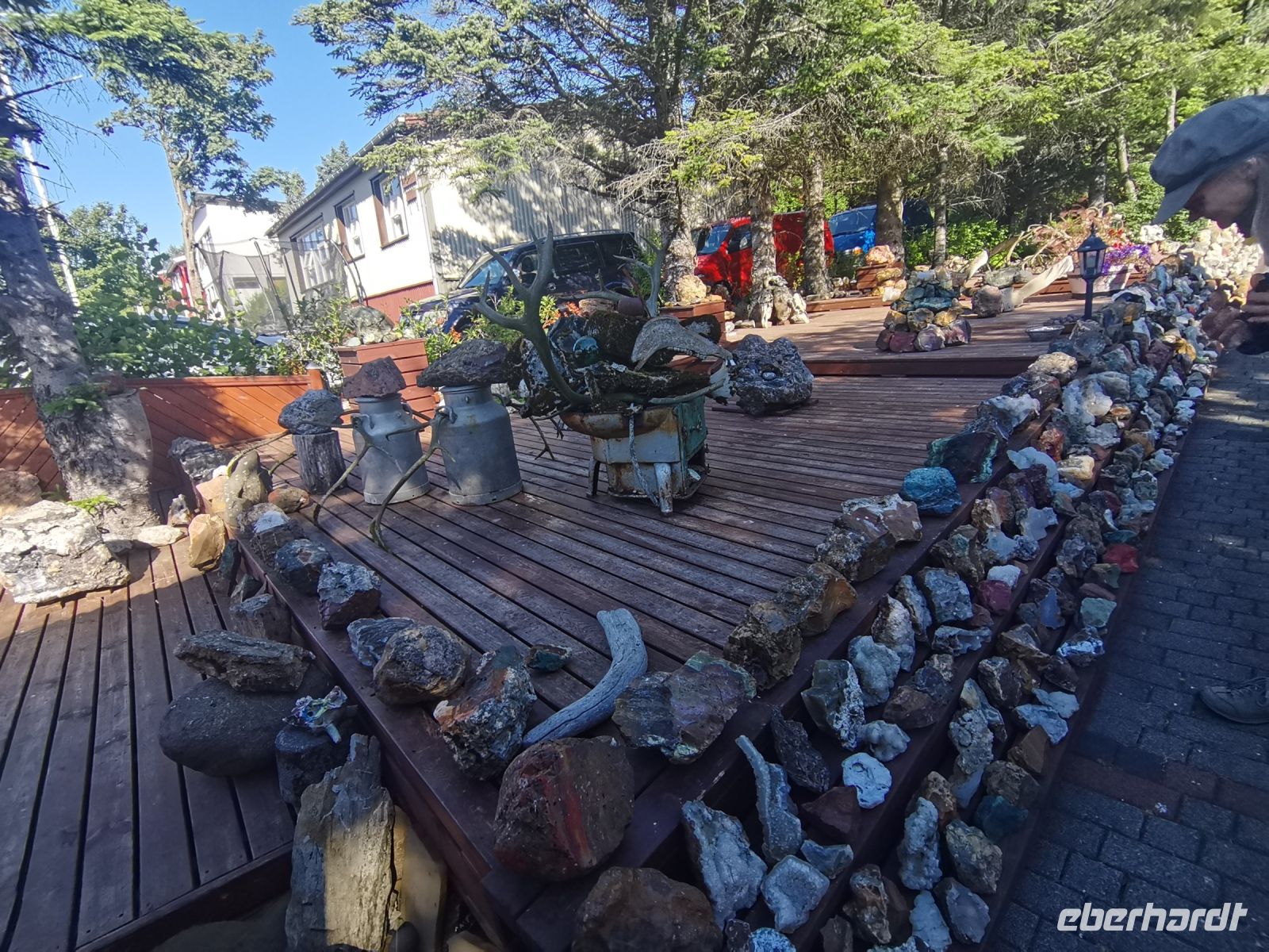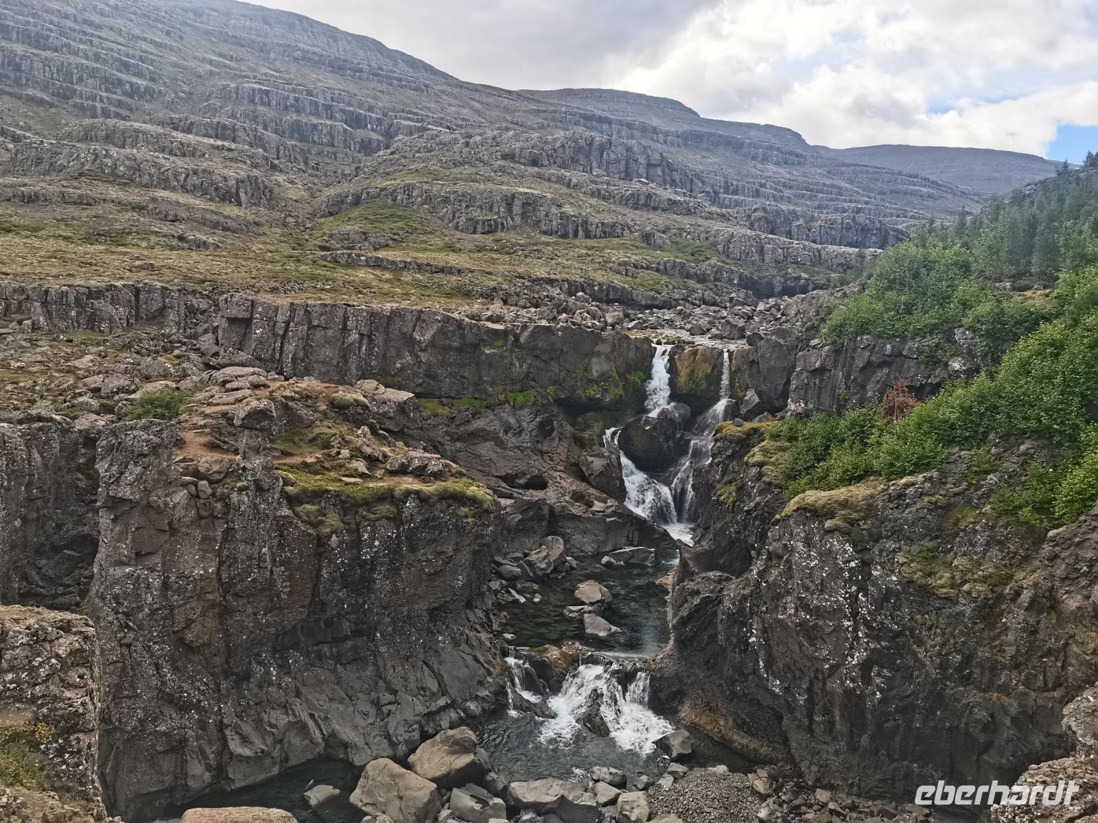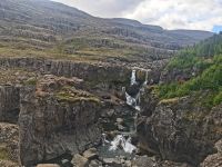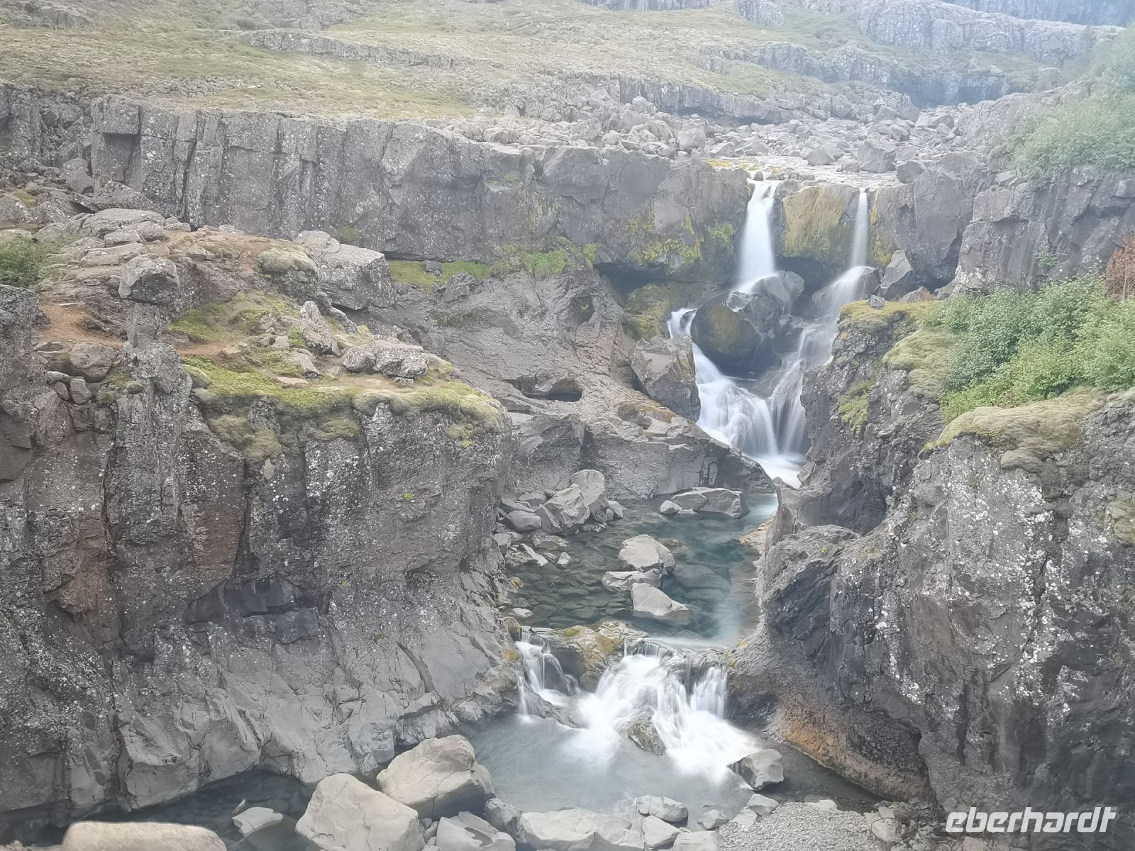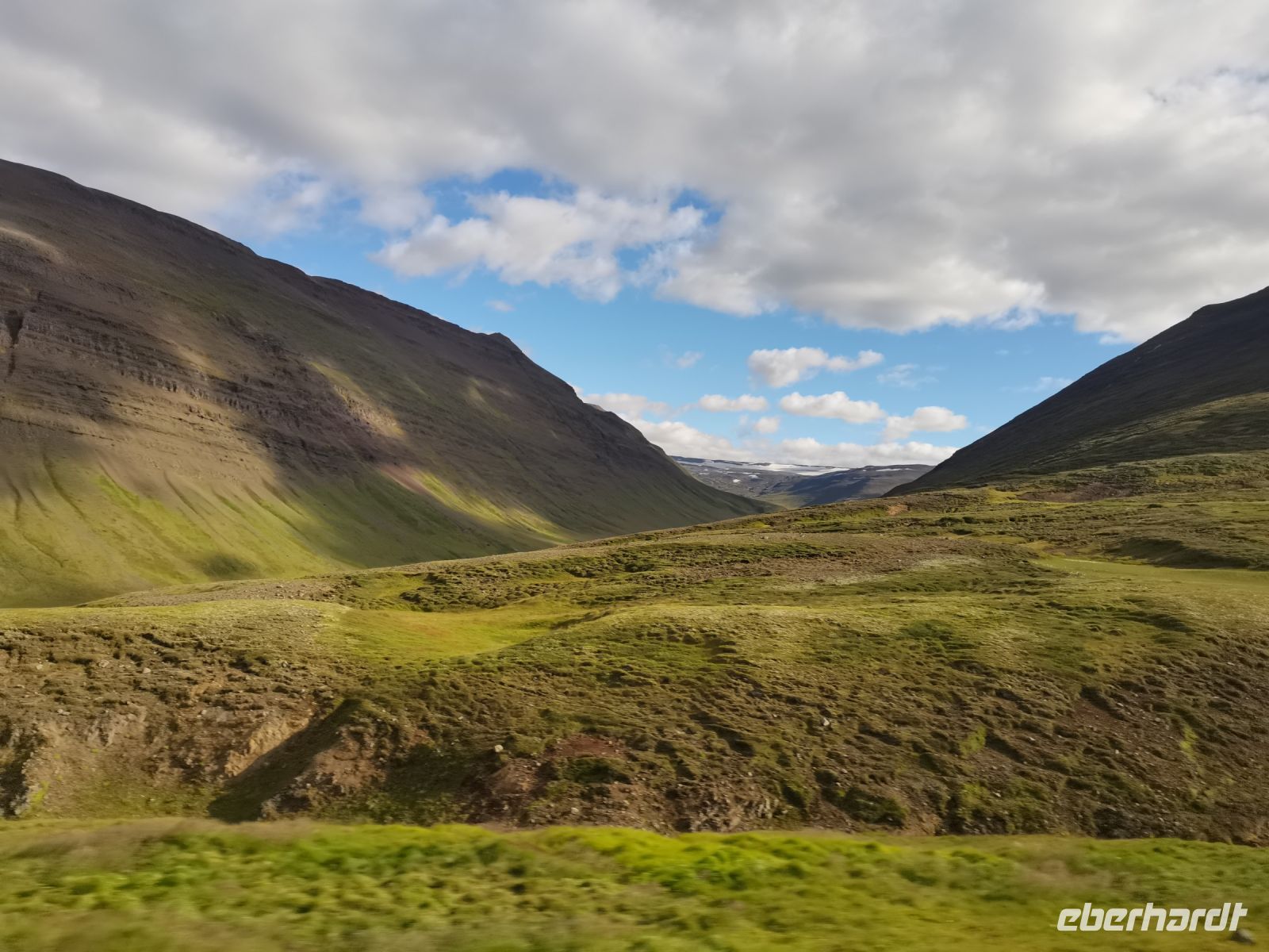 Schon wieder strahlt die Sonne und es zeigen sich kaum Wolken am Himmel. Heute fahren wir kreuz und quer über die südlichen Ostfjorde. Die Panoramastraße bietet viele eindrucksvolle Fotostopps. Wir sind auf dem Weg zur privaten Steinsammlung von Petra Sveinsdóttir in Stöðvarfjörður. Wir erfahren, dass Petra bereits als kleines Mädchen von Mineralien fasziniert war. Bis zu ihrem Lebensende hat sie Steine und viele andere Dinge gesammelt und ihr Haus den Besuchern zur Verfügung gestellt. Heute pflegen ihre Nachkommen die beeindruckende Sammlung, die jedes Jahr zahlreiche Besucher in die Region zieht. Nach einem kurzen Stopp im großen Kunsthandwerksgeschäft des Ortes machen wir uns auf den Weg zu unserem nächsten Übernachtungsort. Die Fahrt ist noch lang, und wir haben Zeit für viele Fotostopps. Wir machen Halt am "Grünen Felsen", eine kleine Bucht, die einen Abstecher lohnt. Ein weiterer Wasserfall im Fossardalur-Tal steht noch auf unserem Programm. Jeder Wasserfall ist anders spektakulär, das macht die vielfältige Landschaft dieser Insel voller Naturwunder aus.