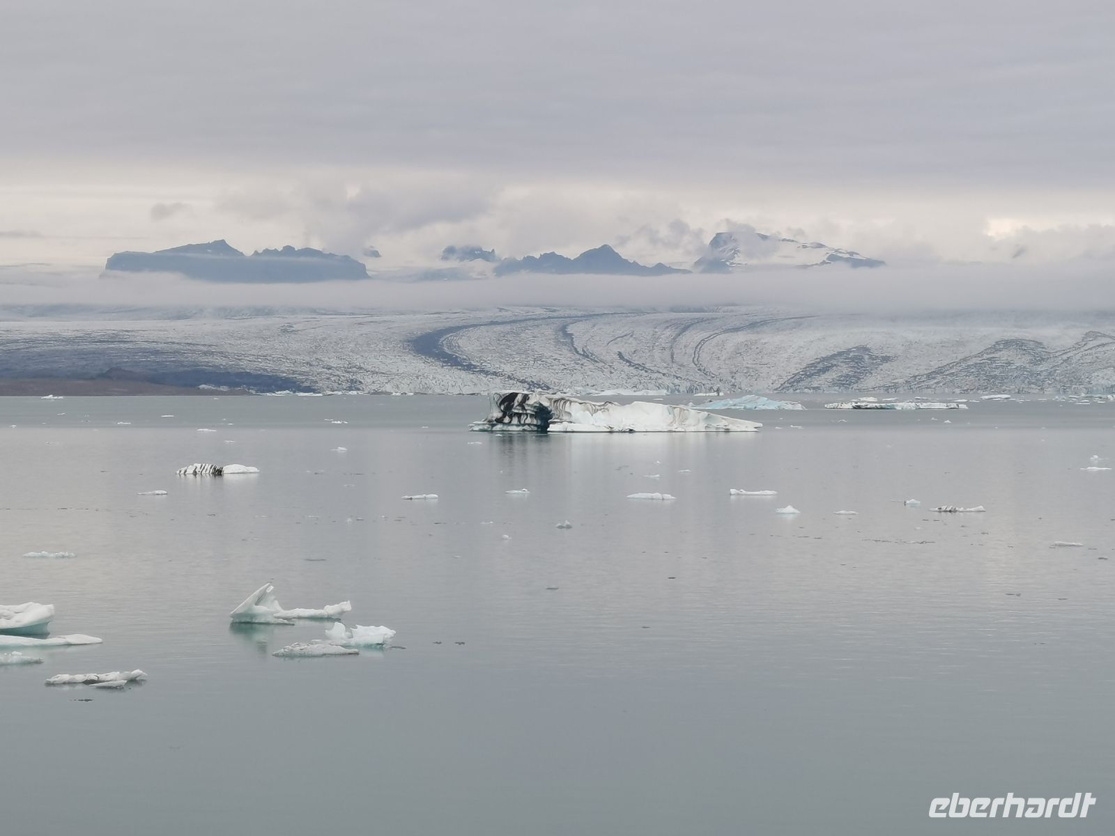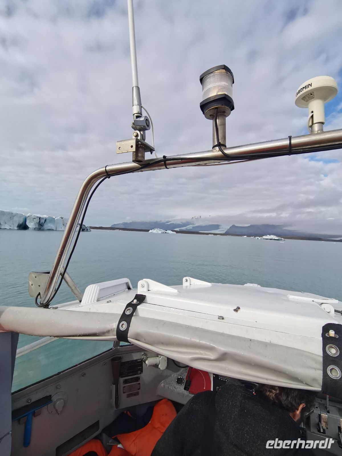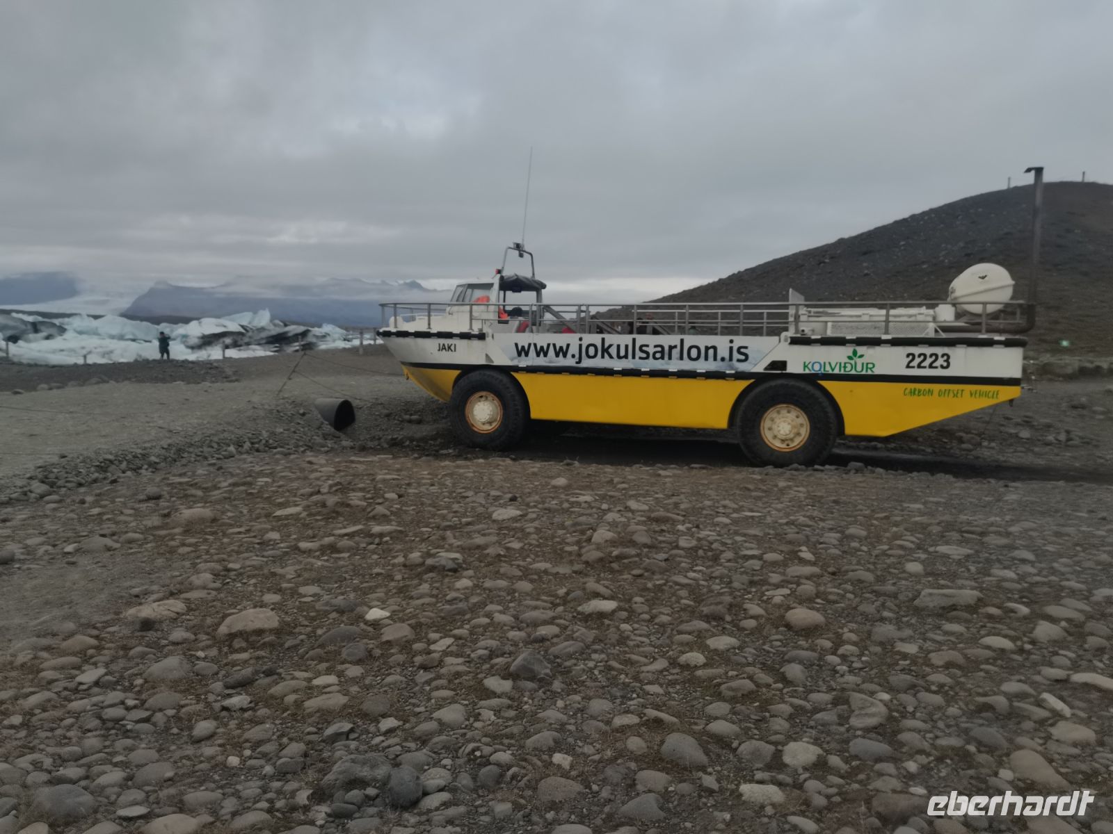Schon morgens erwartet uns das Amphibienboot für die Gletscherfahrt. Bis wir nach einer kurzen Fahrt mit dem Bus an der Gletscherlagune Jökulsarion im Nationalpark Vatnajökull angekommen sind, ist der Himmel bereits weitestgehend aufgeklart. Wir haben noch Zeit für Fotos, bevor wir auf das rollende Boot steigen. Die Gletscherlandschaft und die Lagune sind schon vom Rande aus eindrucksvoll. Wir sind gespannt auf die Bootsfahrt, während wir uns die Rettungswesten anziehen. Auf der Fahrt lernen wir, wie sich die Gletscherwelt stetig verändert. Jedes Jahr kommen rund 300 Meter Wasser zur Lagune hinzu. Wir freuen uns, dass wir dieses Naturschauspiel erleben dürfen.