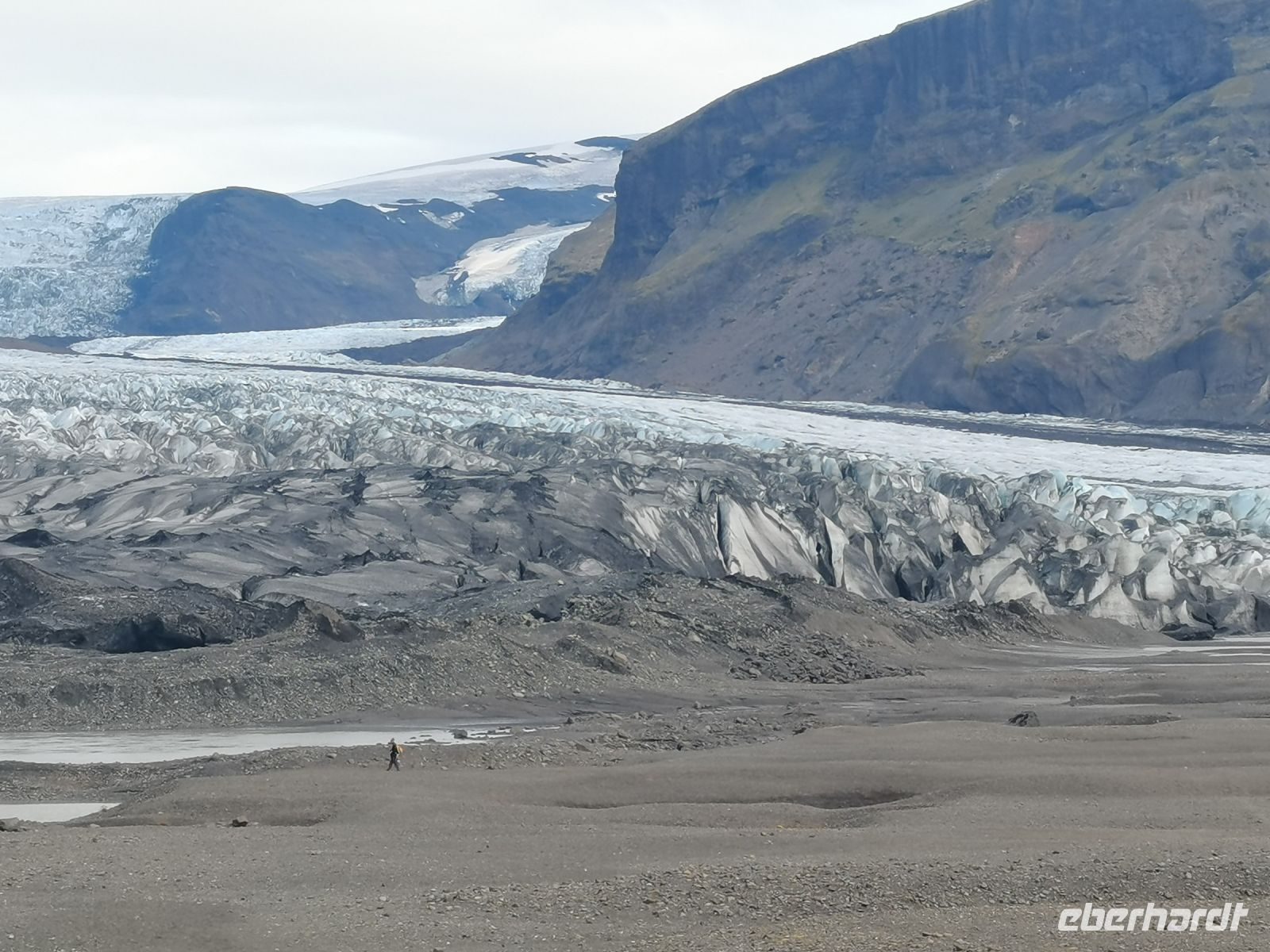 Im Nationalpark Skaftafell, der zum Vatnajökull-Nationalpark gehört, machen wir einen gemeinsamen Spaziergang zur Gletscherzunge. Einige von uns besuchen den Wasserfall Svartifoss mit seinen schwarzen Basaltsäulen. Auf dem Weg zum Hotel machen wir noch einige Fotostopps, auch in der Moosheide, einer grün überzogenen Lavalandschaft.
