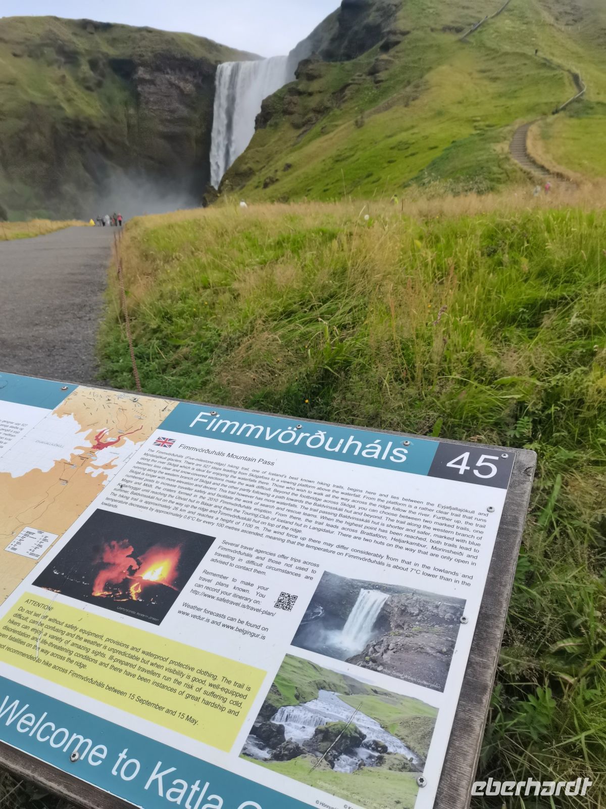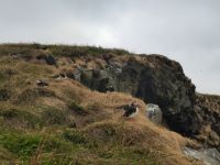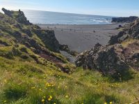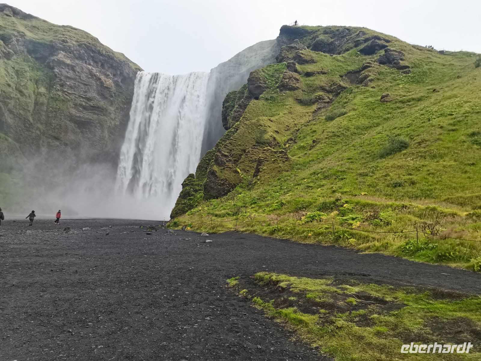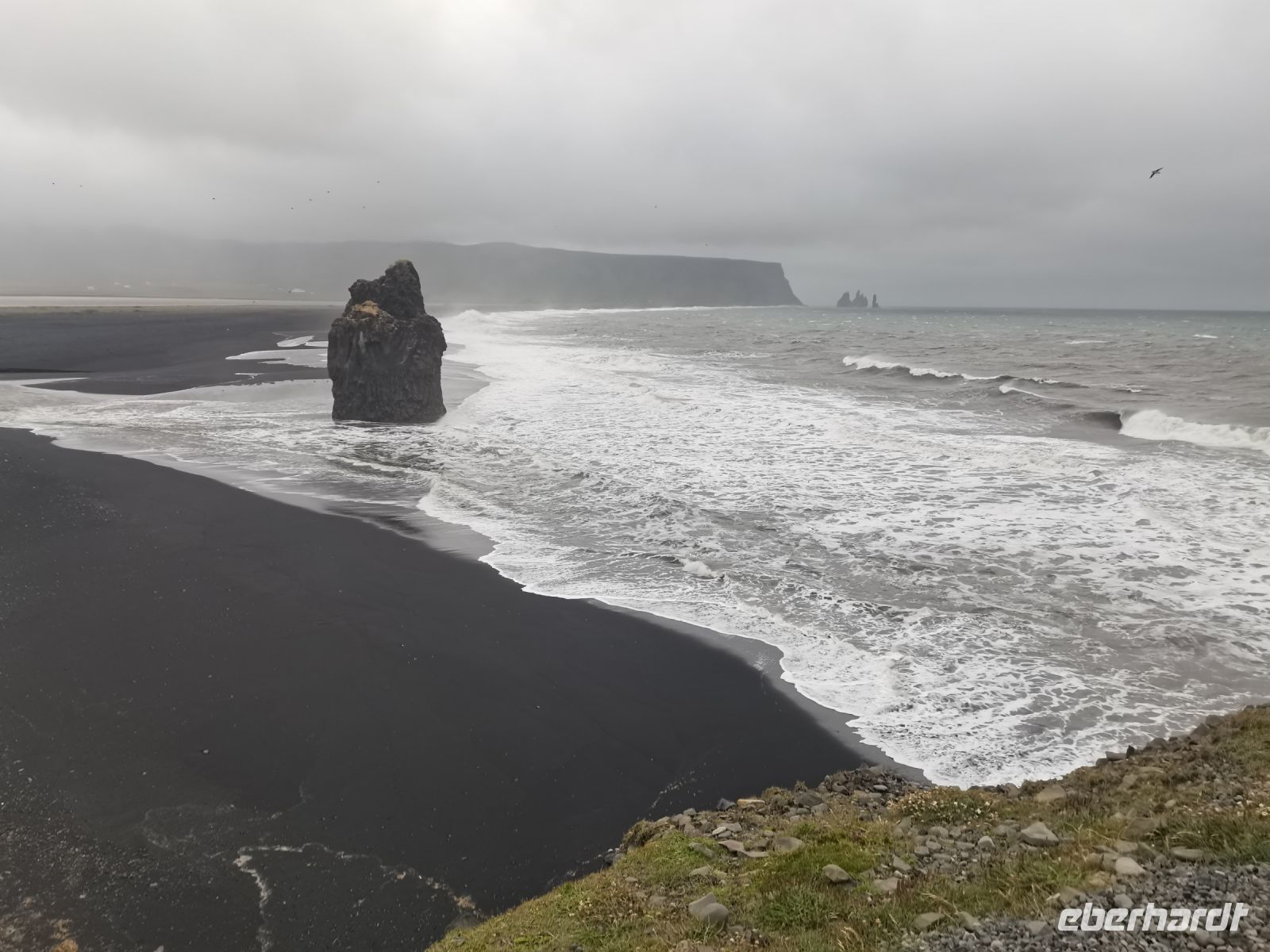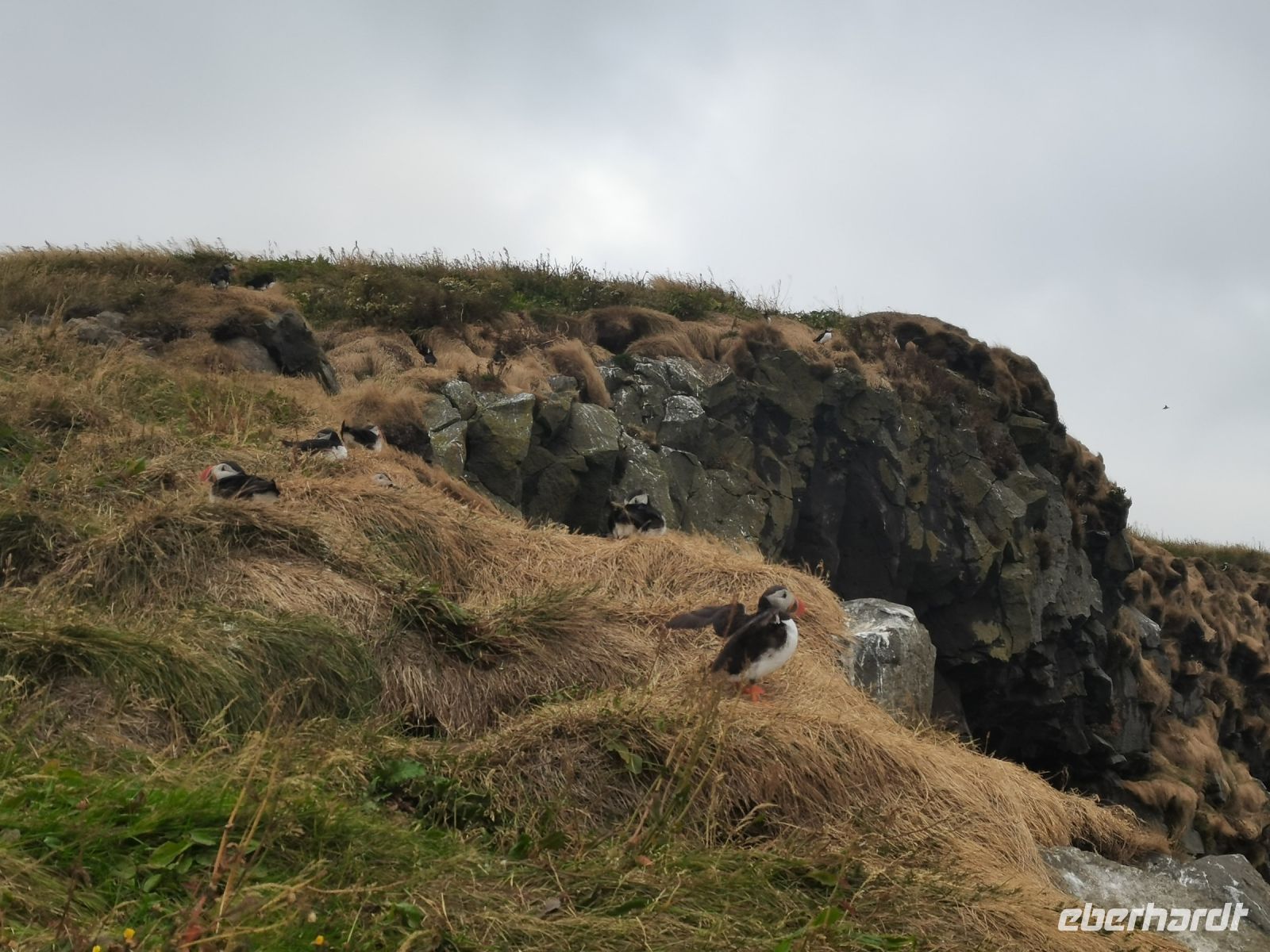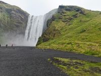 Nach einem umfangreichen Frühstück verlassen wir unser Hotel. Wir machen zunächst Halt an der Bucht Dyrhólaos, einer 115 Meter hoch aufragenden Halbinsel in Süd-Island. Das Kap fällt zum Meer hin schroff ab. Von oben haben wir eine hervorragende Aussicht auf das Meer und den schwarzen Sandstrand mit seinem imposanten Felsen. Vor allem gibt es hier eine große Kolonie Papageitaucher, die wir endlich nah vor die Linse bekommen. Unser nächster Stopp ist ein weiterer Wasserfall: Der Skogafoss. Er hat eine erstaunliche Breite von 25 Metern und stürzt über eine steile Felswand rund 60 Meter in die Tiefe. Wir kommen ganz nah an die Wassermassen, ein herrlicher Anblick.
