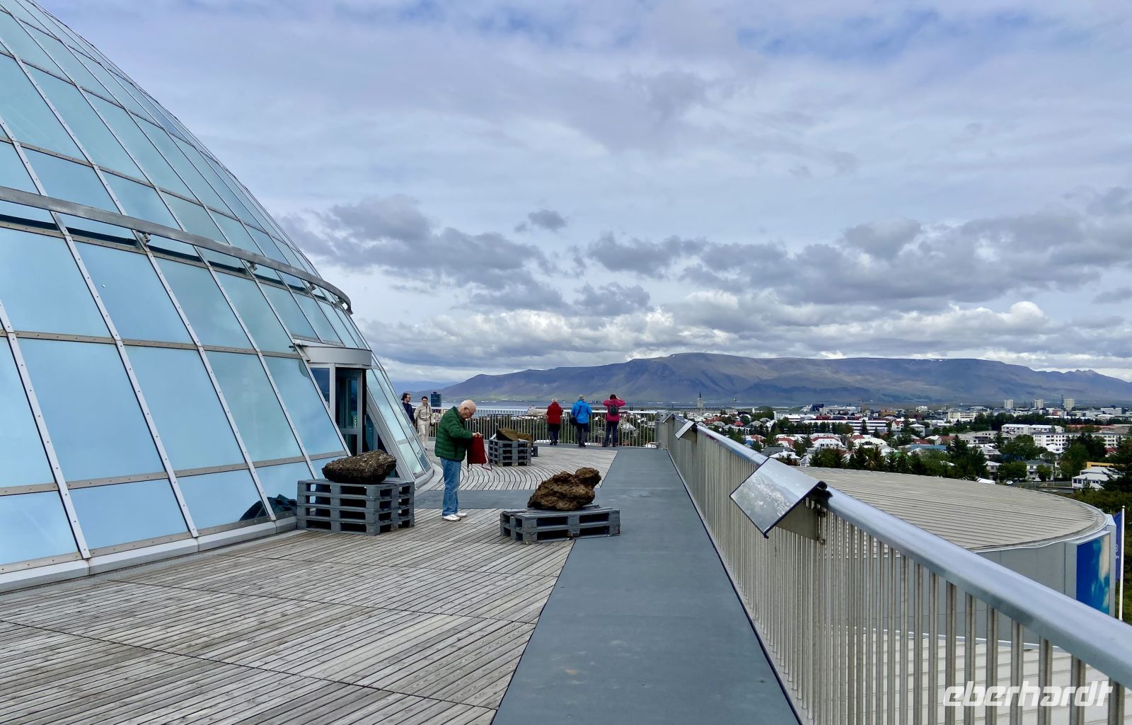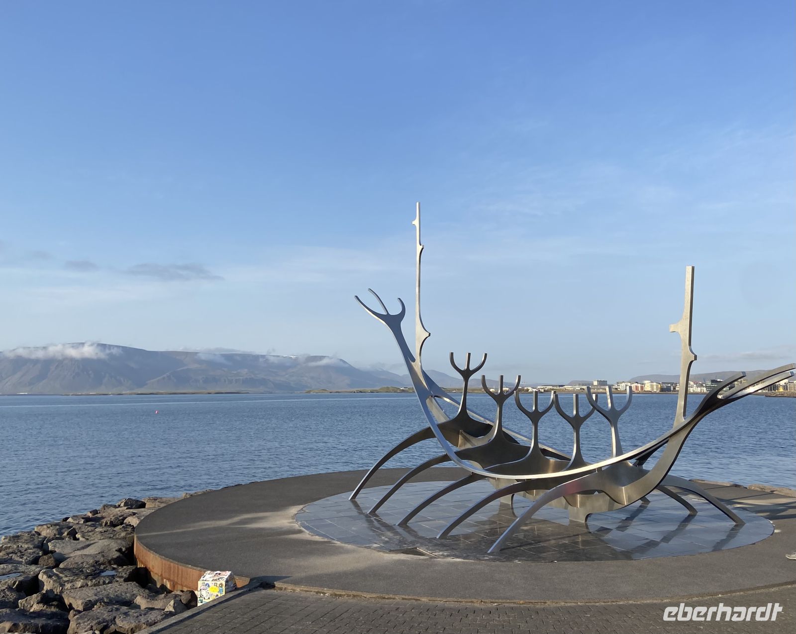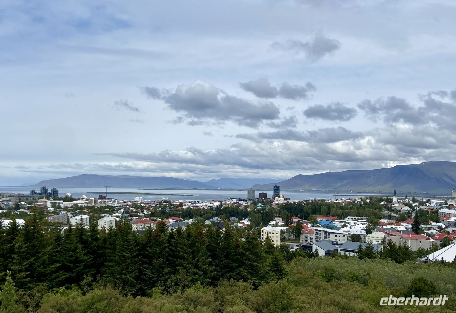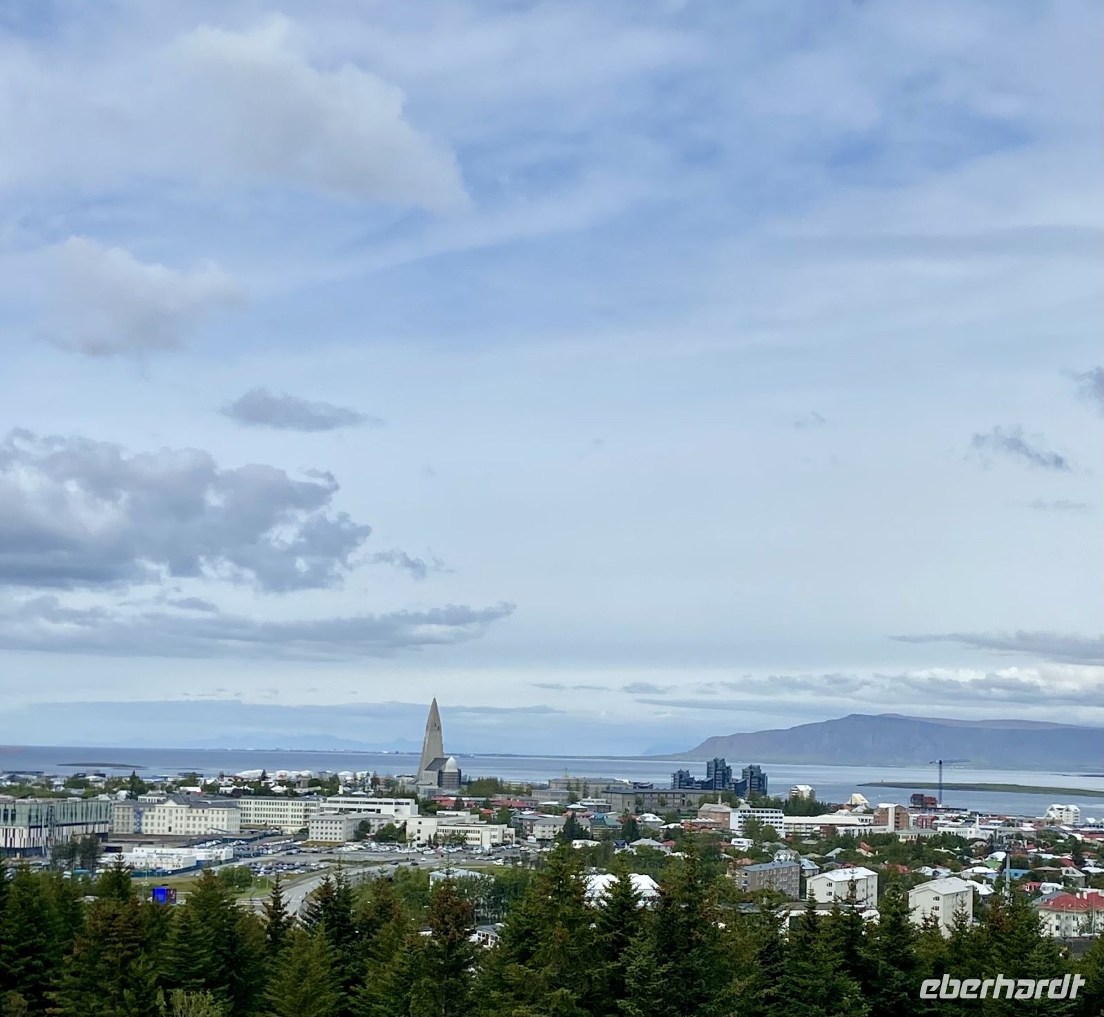 Weiter geht die Fahrt durch Südisland und durch das herrliche Wetter, das uns fast die ganze Zeit begleitet, erleben ein weiteres Highlight: Klar und deutlich können wir die Westmänner-Inseln sehen, die vor der Küste liegen. Marta, unsere Reiseleiterin, erzählt uns, dass dieser Anblick sich nur selten bietet, denn meistens sind die Inseln wolkenverhangenen. Wir erreichen schließlich die Hauptstadt und machen hier eine kleine Rundfahrt, um die wichtigsten Sehenswürdigkeiten kennenzulernen. Fast an jeder Ecke findet man Skulpturen und Statuen verschiedener Künstler und es wird an bedeutende Dichter und Nationalhelden erinnert. Einer davon ist Jon Sigurdsson, dessen Statue sich vor dem Parlament befindet. Er war Politiker und gilt als der Architekt des modernen Island. Sein Geburtstag, der 17.06., ist heute ein isländischer Nationalfeiertag. Am 17.06.1944 wurde die Republik Island ausgerufen und fortan war man von Dänemark unabhängig. Die wichtigsten Attraktionen der Stadt sind für viele "Harpa", "Hallgrimskirkja" und "Perlan". Bei Harpa (deutsch: Harfe) handelt es sich um die 2011 eröffnete Konzerthalle mit der je nach Lichteinfall wechselnden Glasfassade. Die Hallgrimskirche mit ihrem charakteristischen 75 m hohen Turm erhebt sich majestätisch über den Häusern, ihr Inneres ist äußerst schlicht. Der ehemalige Warmwasserspeicher Perlan auf dem höchsten Hügel der Stadt ist heute ein naturwissenschaftliches Museum mit einer Aussichtsplattform. Von hier hat man einen wunderbaren Blick über weite Umgebung.