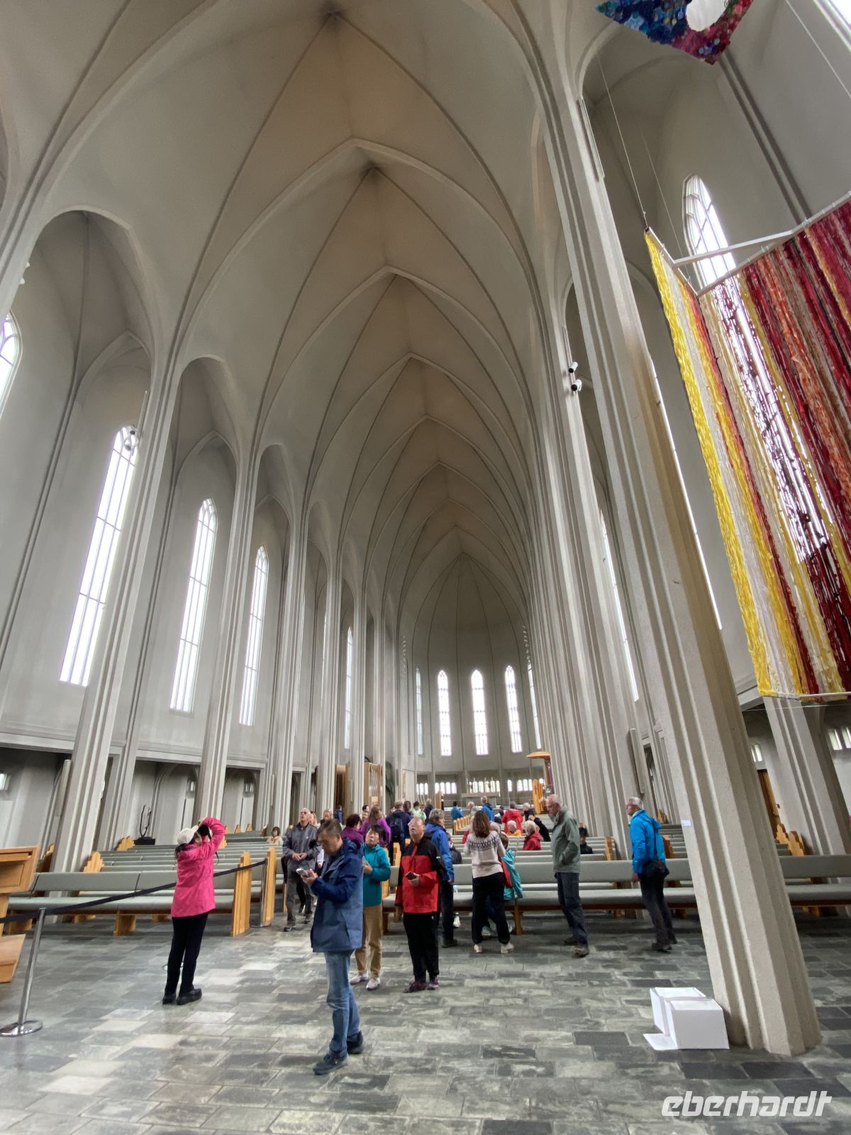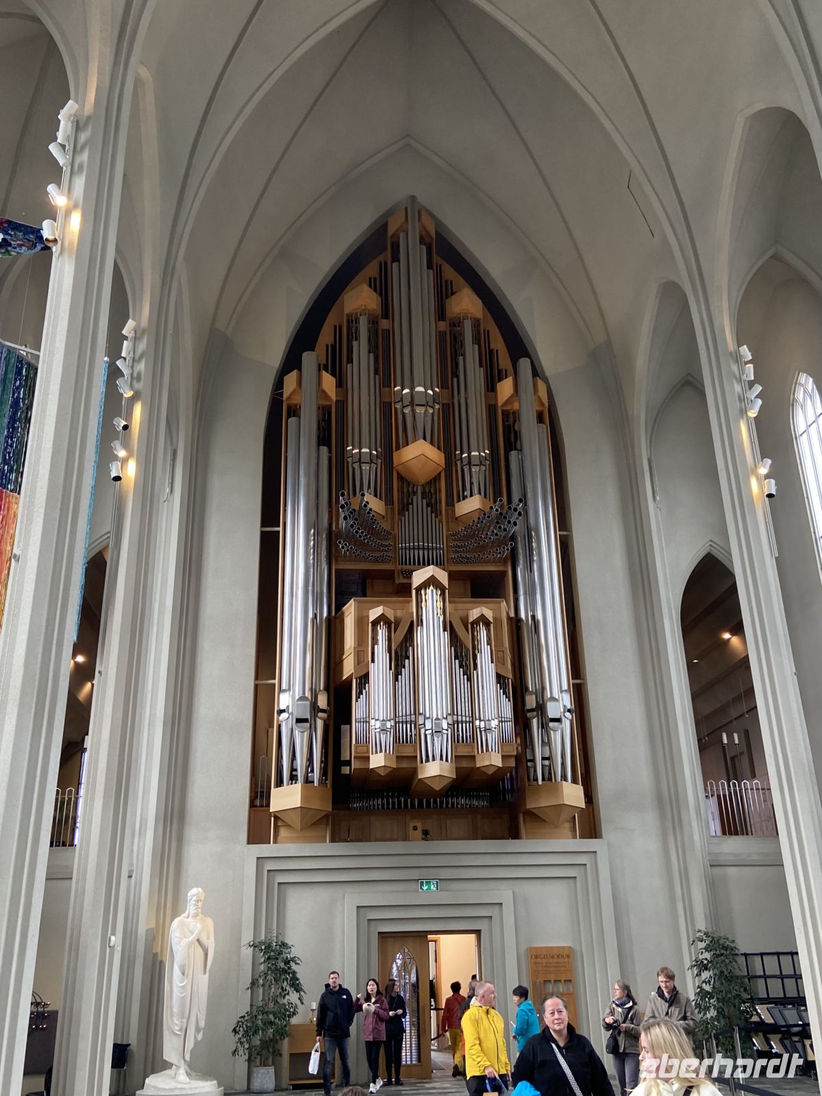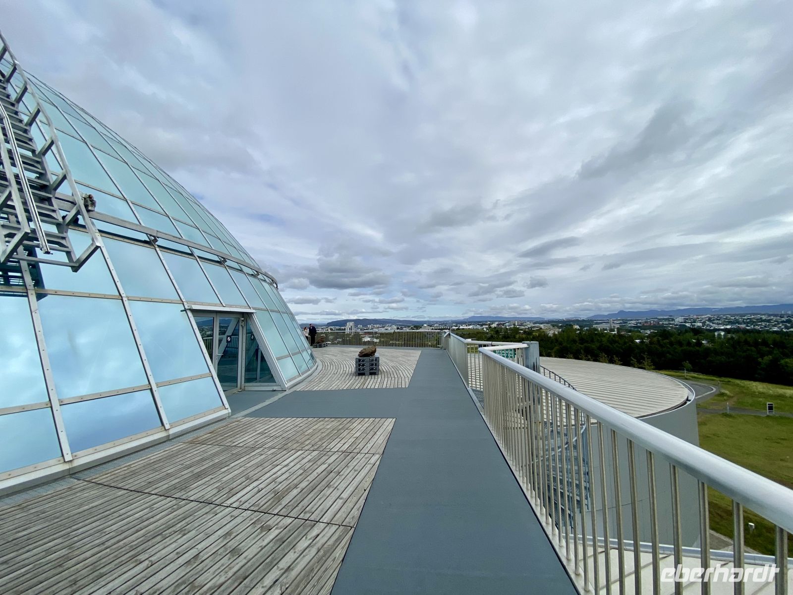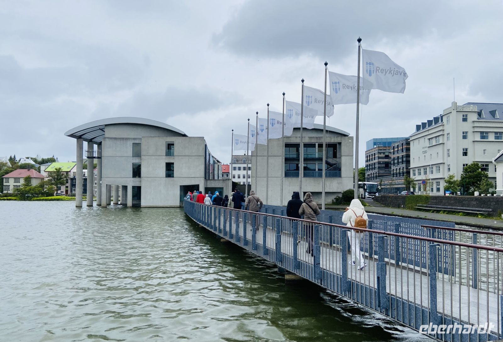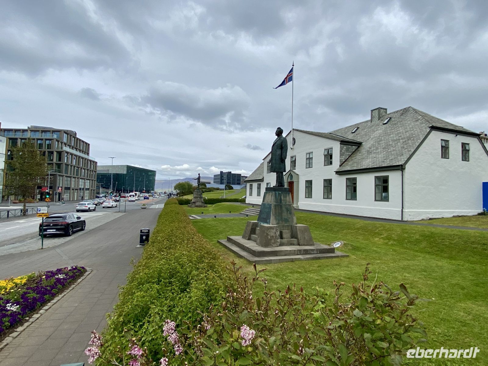 Weiter geht die Fahrt durch Südisland und durch das herrliche Wetter, das uns fast die ganze Zeit begleitet, erleben ein weiteres Highlight: Klar und deutlich können wir die Westmänner-Inseln sehen, die vor der Küste liegen. Marta, unsere Reiseleiterin, erzählt uns, dass dieser Anblick sich nur selten bietet, denn meistens sind die Inseln wolkenverhangenen. Wir erreichen schließlich die Hauptstadt und machen hier eine kleine Rundfahrt, um die wichtigsten Sehenswürdigkeiten kennenzulernen. Fast an jeder Ecke findet man Skulpturen und Statuen verschiedener Künstler und es wird an bedeutende Dichter und Nationalhelden erinnert. Einer davon ist Jon Sigurdsson, dessen Statue sich vor dem Parlament befindet. Er war Politiker und gilt als der Architekt des modernen Island. Sein Geburtstag, der 17.06., ist heute ein isländischer Nationalfeiertag. Am 17.06.1944 wurde die Republik Island ausgerufen und fortan war man von Dänemark unabhängig. Die wichtigsten Attraktionen der Stadt sind für viele "Harpa", "Hallgrimskirkja" und "Perlan". Bei Harpa (deutsch: Harfe) handelt es sich um die 2011 eröffnete Konzerthalle mit der je nach Lichteinfall wechselnden Glasfassade. Die Hallgrimskirche mit ihrem charakteristischen 75 m hohen Turm erhebt sich majestätisch über den Häusern, ihr Inneres ist äußerst schlicht. Der ehemalige Warmwasserspeicher Perlan auf dem höchsten Hügel der Stadt ist heute ein naturwissenschaftliches Museum mit einer Aussichtsplattform. Von hier hat man einen wunderbaren Blick über weite Umgebung.
