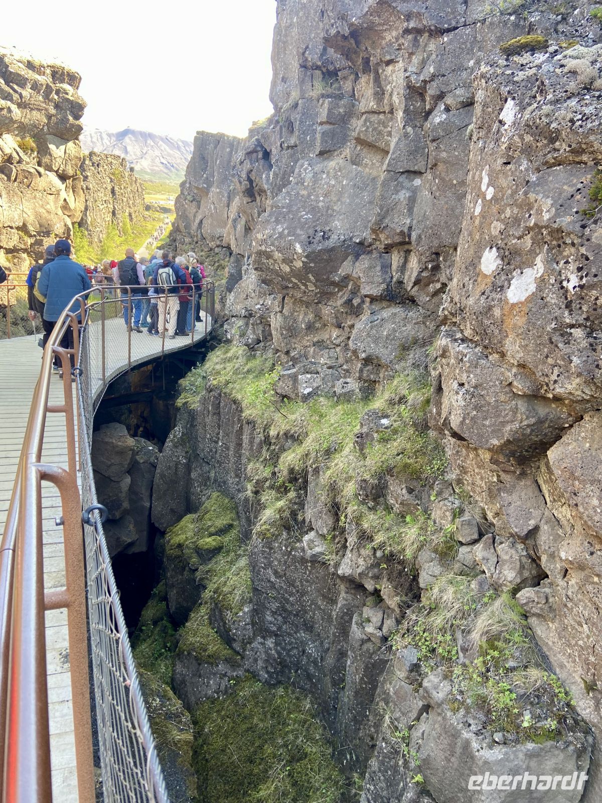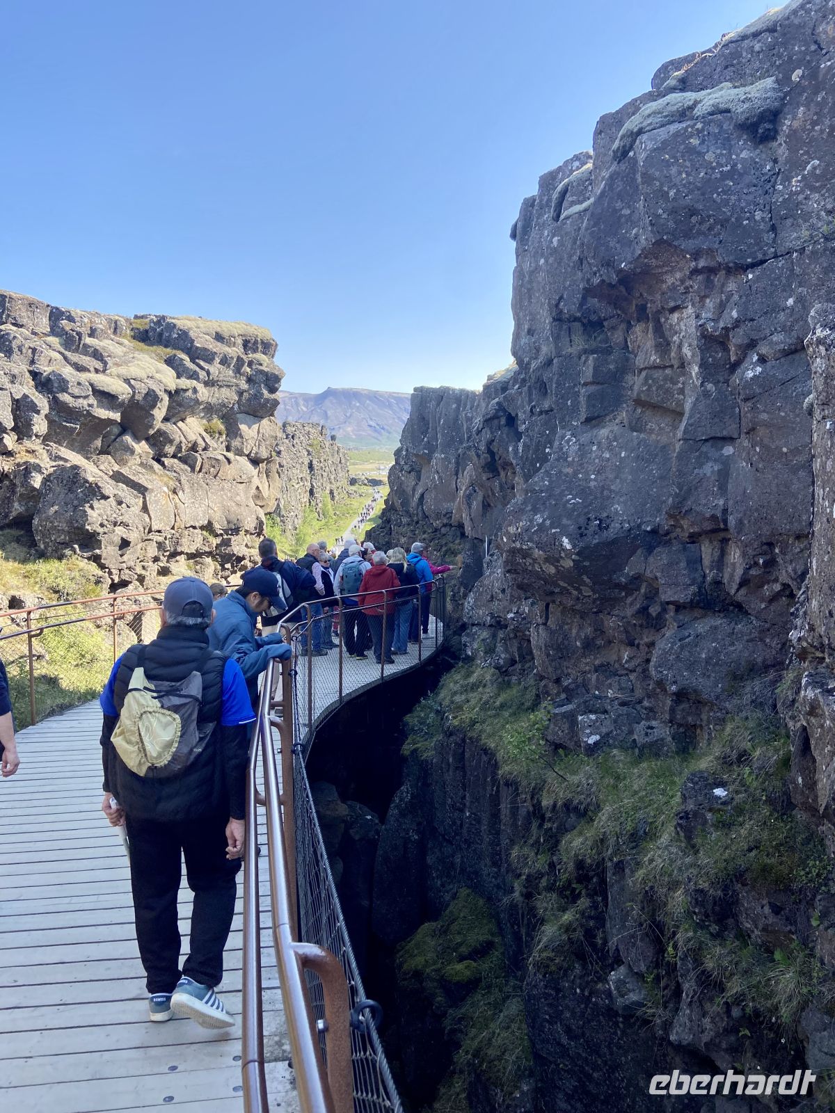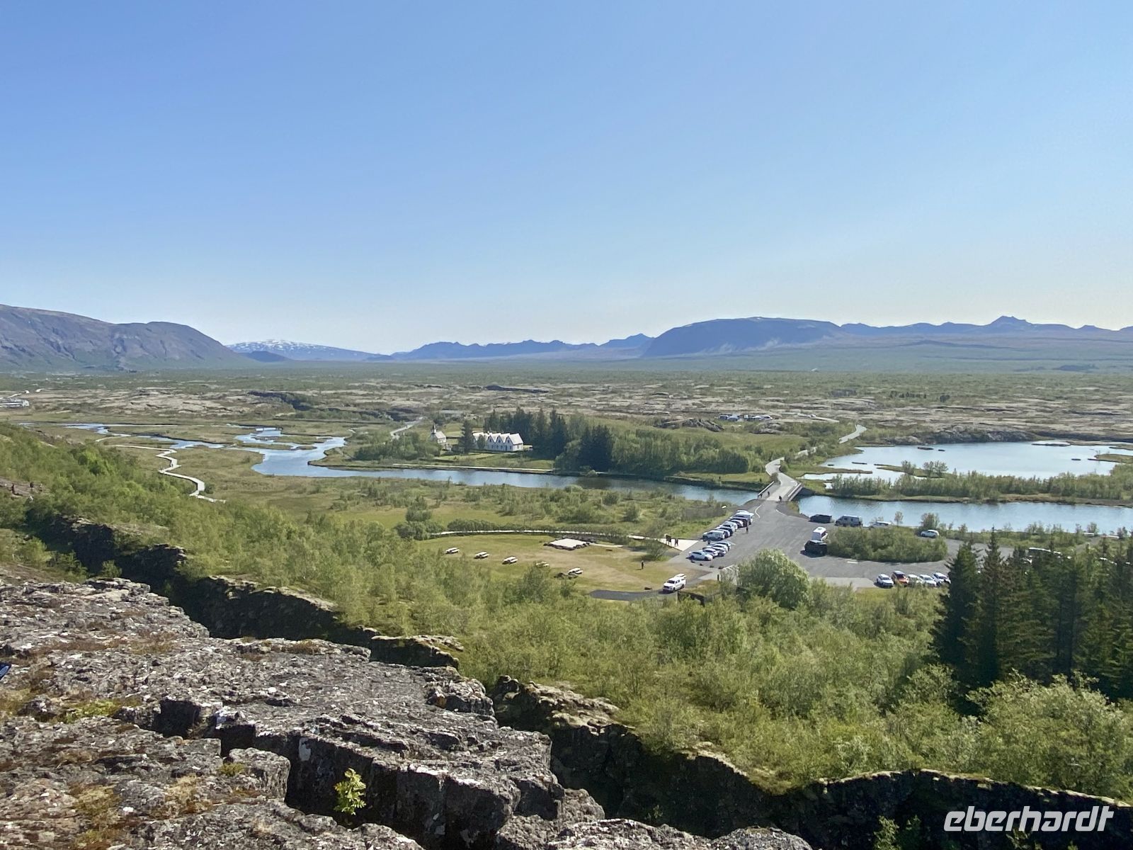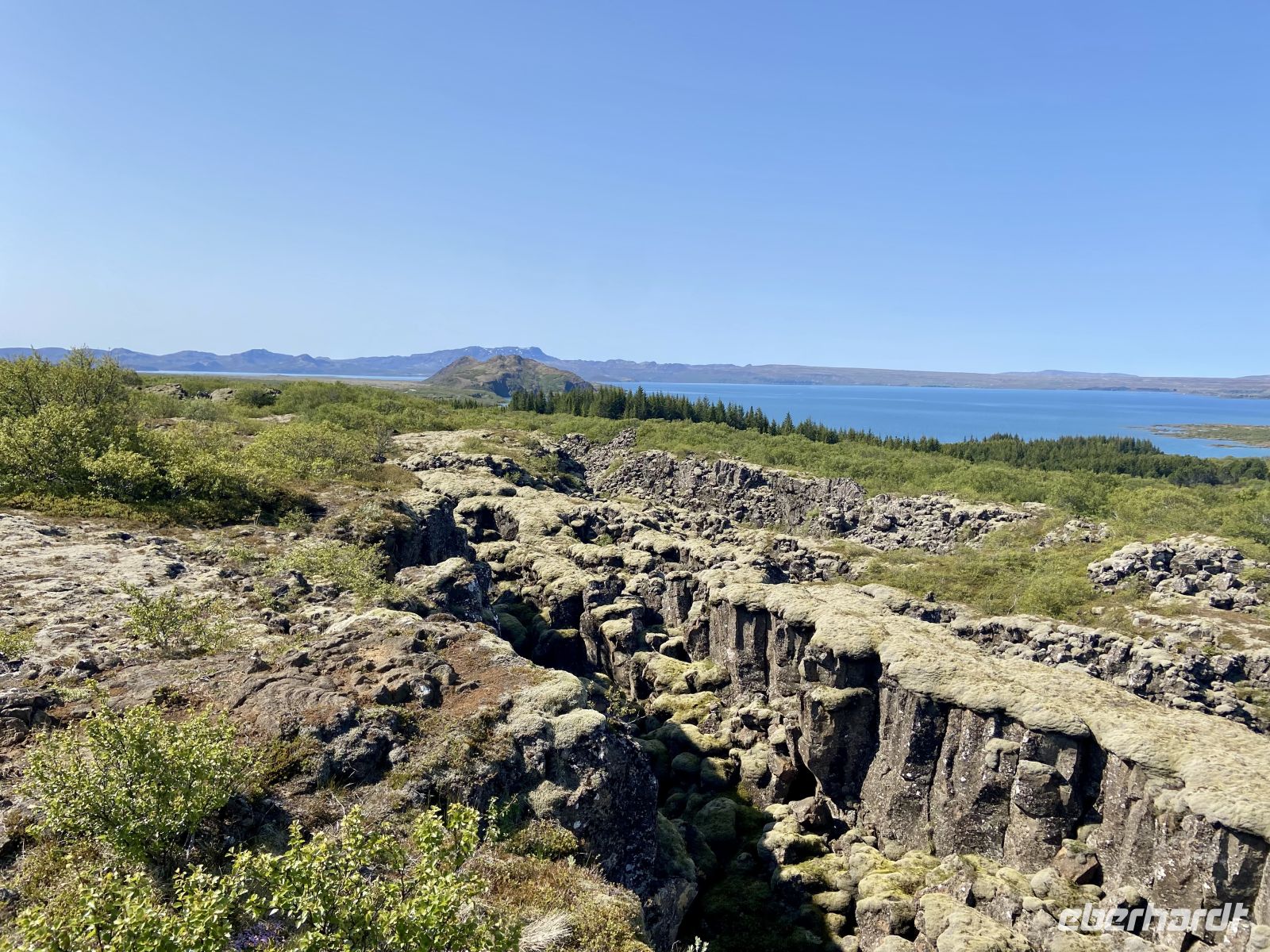 Geschichtlich interessant ist Thingvellir als zentraler Versammlungsplatz der Isländer. Seit dem Jahre 930 fanden am Lögberg, dem „Gesetzesfelsen“, die alljährlichen Zusammenkünfte des Althing statt. Bis zum Jahr 1798 blieb dies der Hauptversammlungsort der Nation. Der Althing in Thingvellir bildete die höchste politische Instanz des Landes und war zugleich Parlament und Gerichtsort. Thingvellir war auch Schauplatz isländischer Sagas. Im Jahr 1874 erhielt Island eine eigene Verfassung und 1944 wurde hier die unabhängige Republik Island proklamiert. Zur 1.000-Jahr-Feier des isländischen Parlaments wurde 1930 der Thingvellir-Nationalpark gegründet – seit 2004 ist der Nationalpark UNESCO-Weltkulturerbe. Kein Ort auf Island ist enger mit der Geschichte und Kultur des Landes verbunden als Thingvellir. Aber auch landschaftlich ist die Ebene von Thingvellir sehr interessant. Der wohl größte See Islands - der Thingvallavatn - hat extrem klares Wasser, wir machen hier einen Fotostop. Thingvellir ist historisch und geologisch von großer Bedeutung, denn das Gebiet liegt inmitten der isländischen Dehnungszone. Hier driften die Kontinente Europa und Amerika auseinander. Offene Klüfte und Spalten ziehen sich durch das absinkende Gebiet des Grabens von Thingvellir. Besonders eindrucksvoll ist das in der Almannagjá - der „Allmänner-Schlucht“ - zu sehen.
