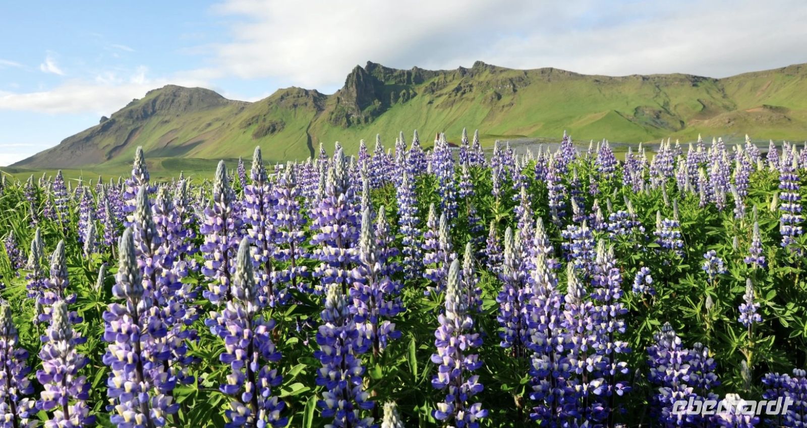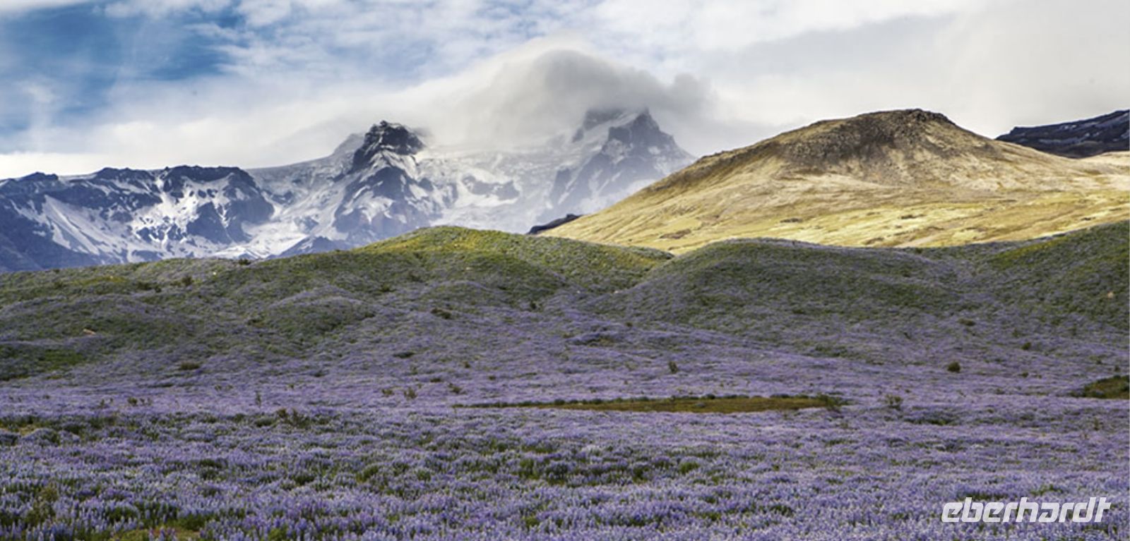 Der berühmte "Goldene Kreis" wird auch die „Mutter aller Islandtouren“ genannt, denn er besucht die Top-Sehenswürdigkeiten der Insel: den Nationalpark Thingvellir, den Wasserfall Gullfoss und das Heißquellengebiet Geysir. Die Landschaftsfahrt im strahlenden Sonnenschein gestaltet sich für uns wie ein Film; blau-lila Lupinenfelder erstrecken sich bis fast zum Horizont, in der Ferne leuchten die Gletscher in hellstem Weiß, kleine Flüsse sprudeln durch grüne Wiesen und Lavafelder fesseln den Blick.