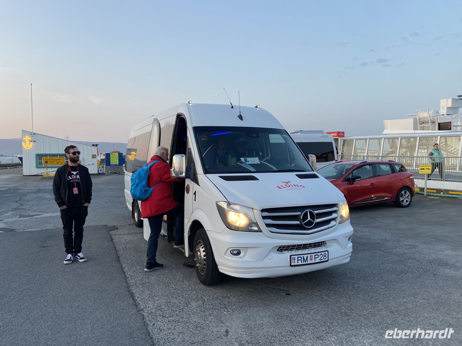 Nachdem wir uns am Berliner Flughafen getroffen haben, versüßen wir uns den etwas schleppenden Check-In und die längere Wartezeit auf den Abflug, der leicht verspätet stattfinden wird, mit Vorfreude auf den geheimnisvollen Norden. Nach einem ruhigen Flug erreichen wir 3,5 Stunden später den Flughafen Keflavik. Der Name des Flughafens ist eine Hommage an den isländischen Entdecker Leifur Eriksson, der mit seinen Schiffen noch vor Christoph Kolumbus in Amerika anlandete. Schnell hatten wir alle Koffer auf dem Gepäckband wiedergefunden und gehen wir gemeinsam in die Ankunftshalle, wo unsere Reiseleiterin Marta Rúnars und die beiden Gäste, die aus Frankfurt angereist sind, uns schon erwarten.