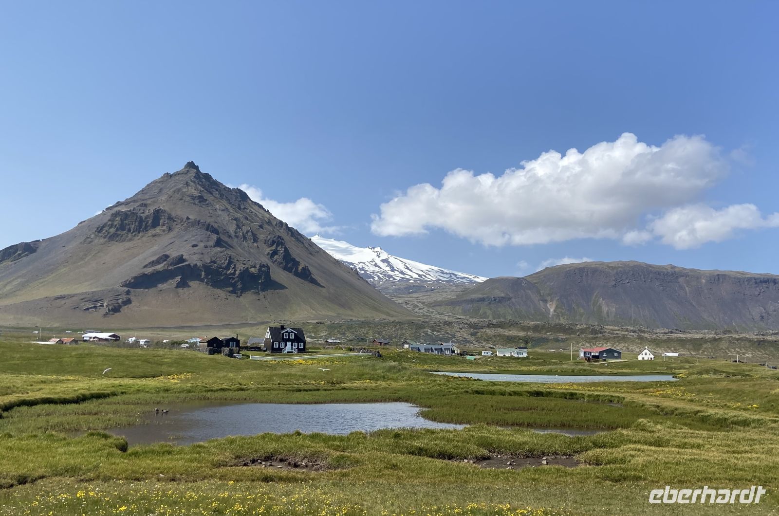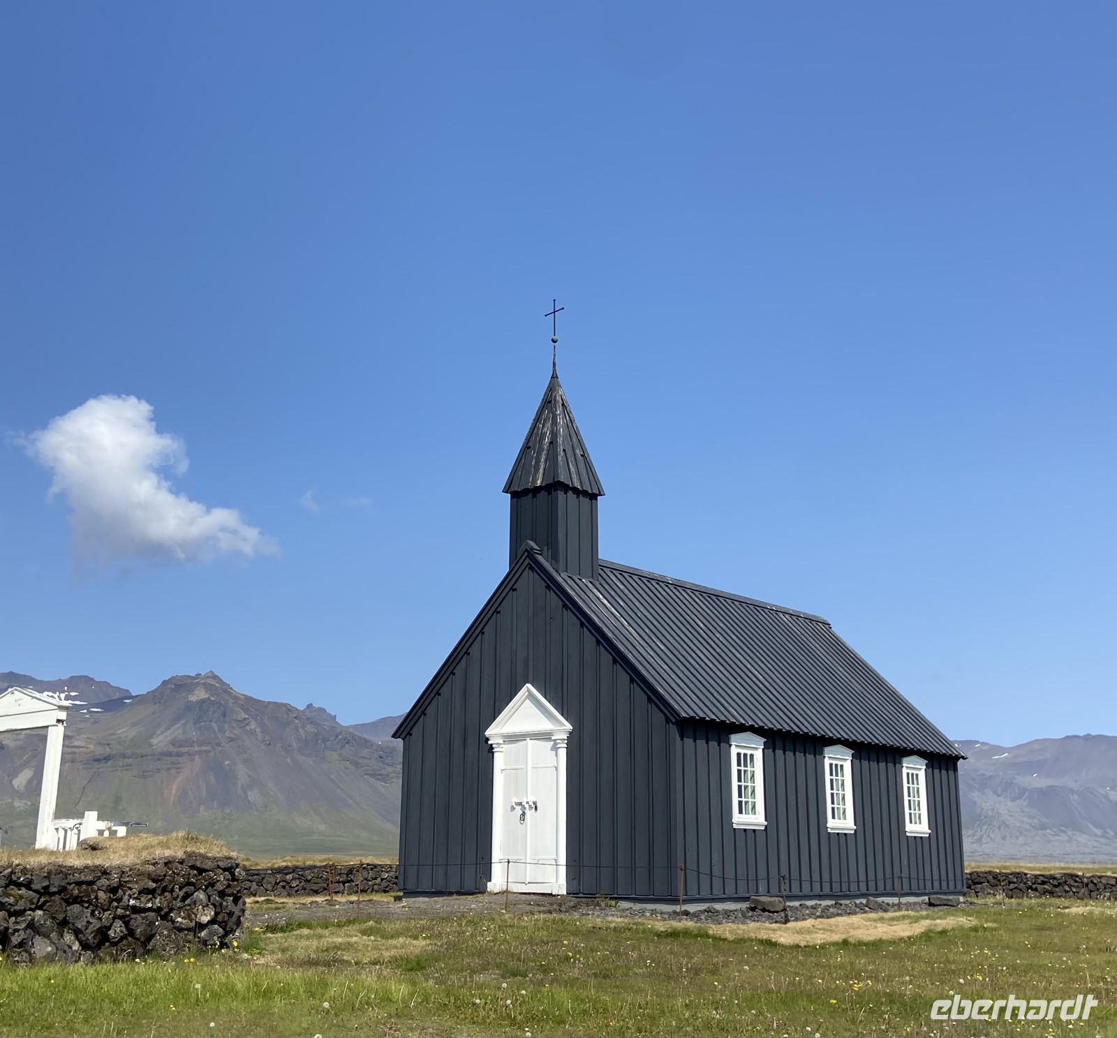 Wir besuchen das Nationalpark-Zentrum in Malariff und halten zur Mittagspause in Amastarpi. Nach dem Essen machen wir alle gemeinsam eine kleine Wanderung entlang der Küste hinab zum pittoresken kleinen Hafen. In Budir besuchen wir die „Budakirkja“, eine kleine Holzkirche auf der Südseite der Halbinsel. Der Ort hatte in der Vergangenheit bis etwa 1930 eine wichtige Rolle als Handelsplatz, besteht heute aber nur noch aus einem Hotel und der Pfarrkirche. Die heutige Kirche wurde 1848 erbaut und 1987 renoviert. Einige Gegenstände der ursprünglichen Kirche sind erhalten geblieben, darunter das Schloss am Tor mit wunderschönen alten Intarsien. Die Kirche besticht durch ihre schlichte Schönheit und durch ihre Einbettung in das Landschaftsbild. Man kann sie sowohl mit den Bergen als auch mit dem Ozean im Hintergrund betrachten, sie bietet stets einen perfekten architektonischen Kontrast zur Natur. So zählt sie zu den meistfotografierten Gebäuden in Island.
