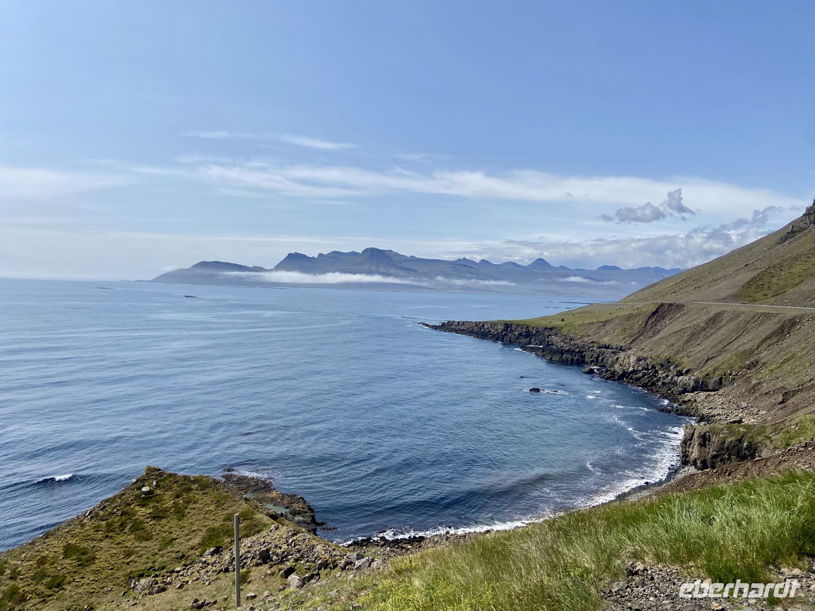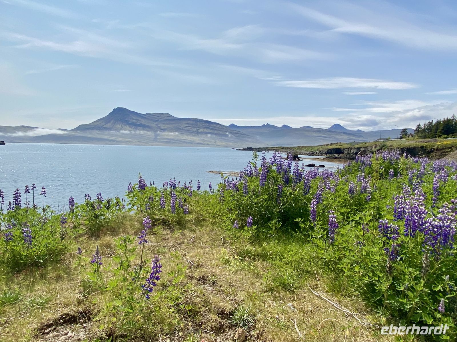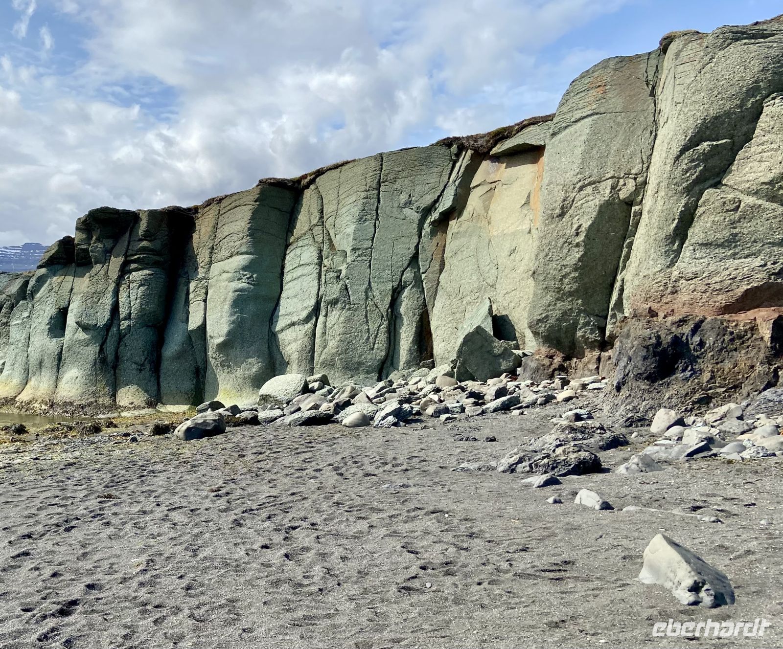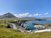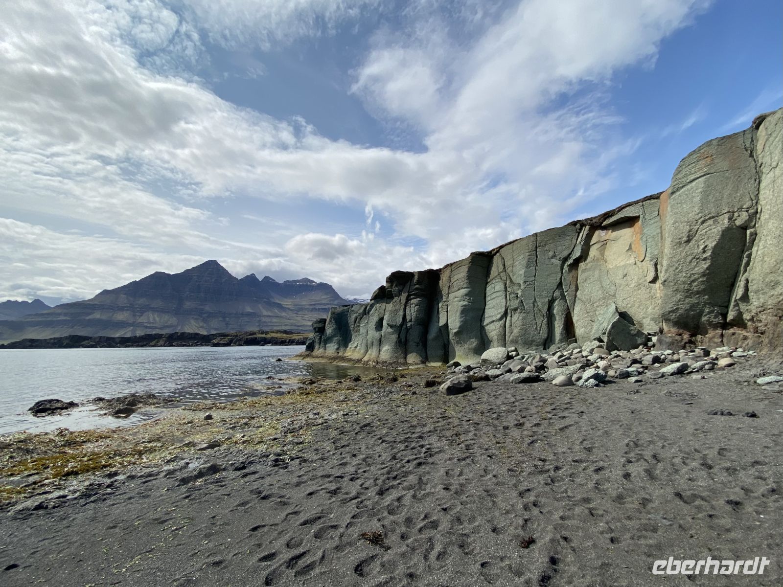 Wir fahren weiter durch die Ostfjorde, die atemberaubende Landschaft erstrahlt in hellstem Sonnenschein. Es gibt zahlreiche Gelegenheiten, kurz anzuhalten. Wir machen einen Stop in den beiden kleinen Häfen Breidalsvik und Djupivogur, wo wir herumbummeln und Zeit haben für einen Imbiss oder in einem kleinen Café leckeren selbstgebackenen Kuchen probieren können. Am Wasserfall Fossafoss und am Strand von Blabjörg halten wir zu einem Fotostop.