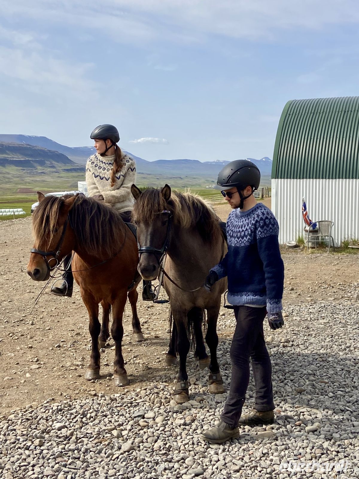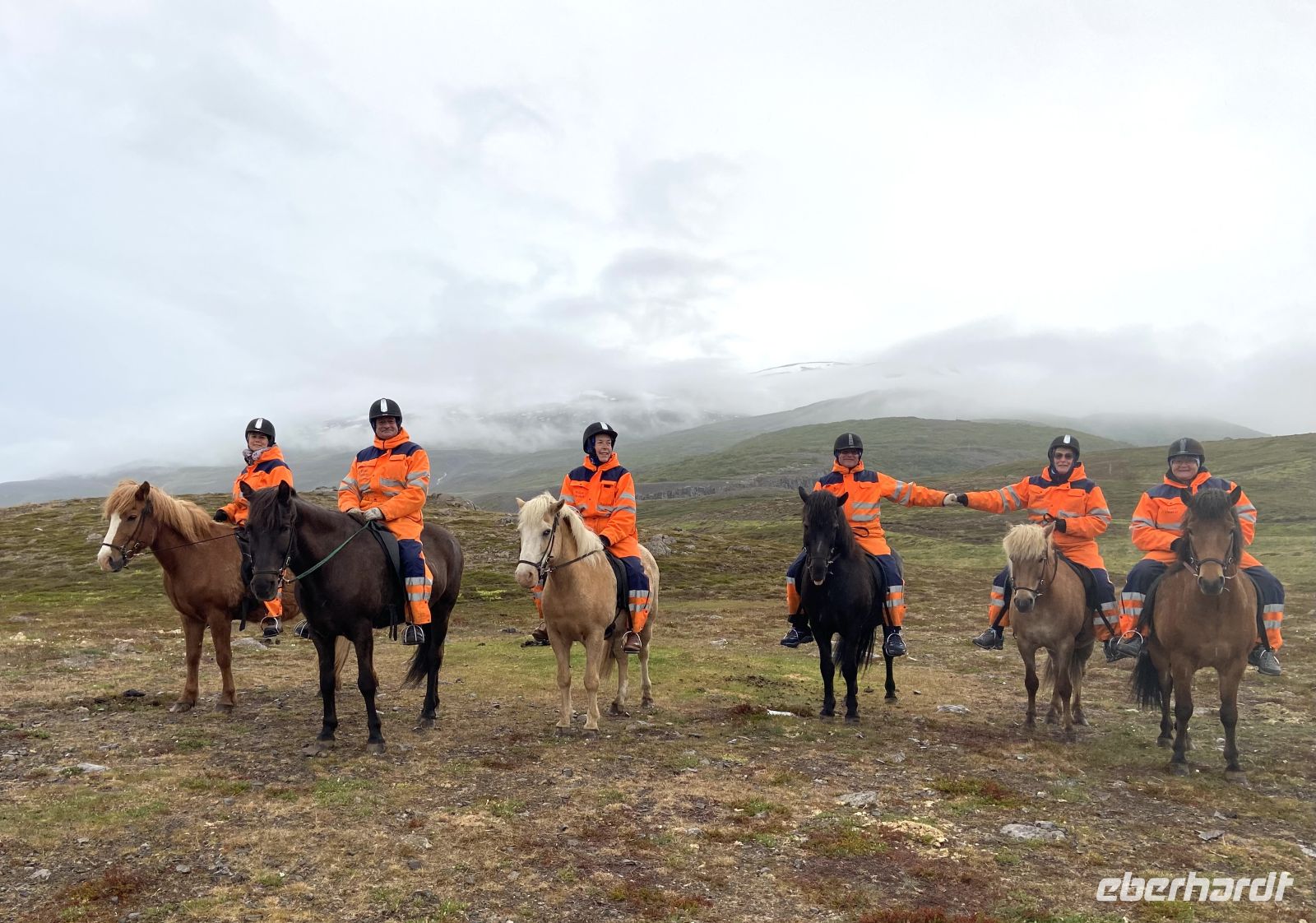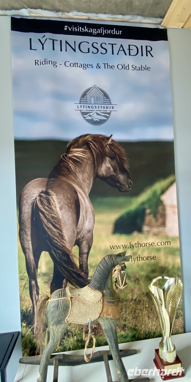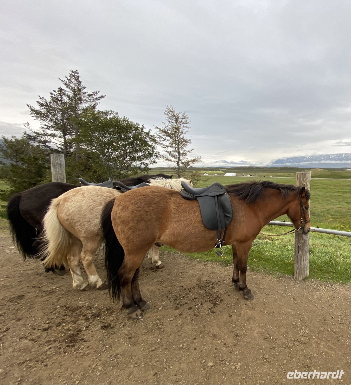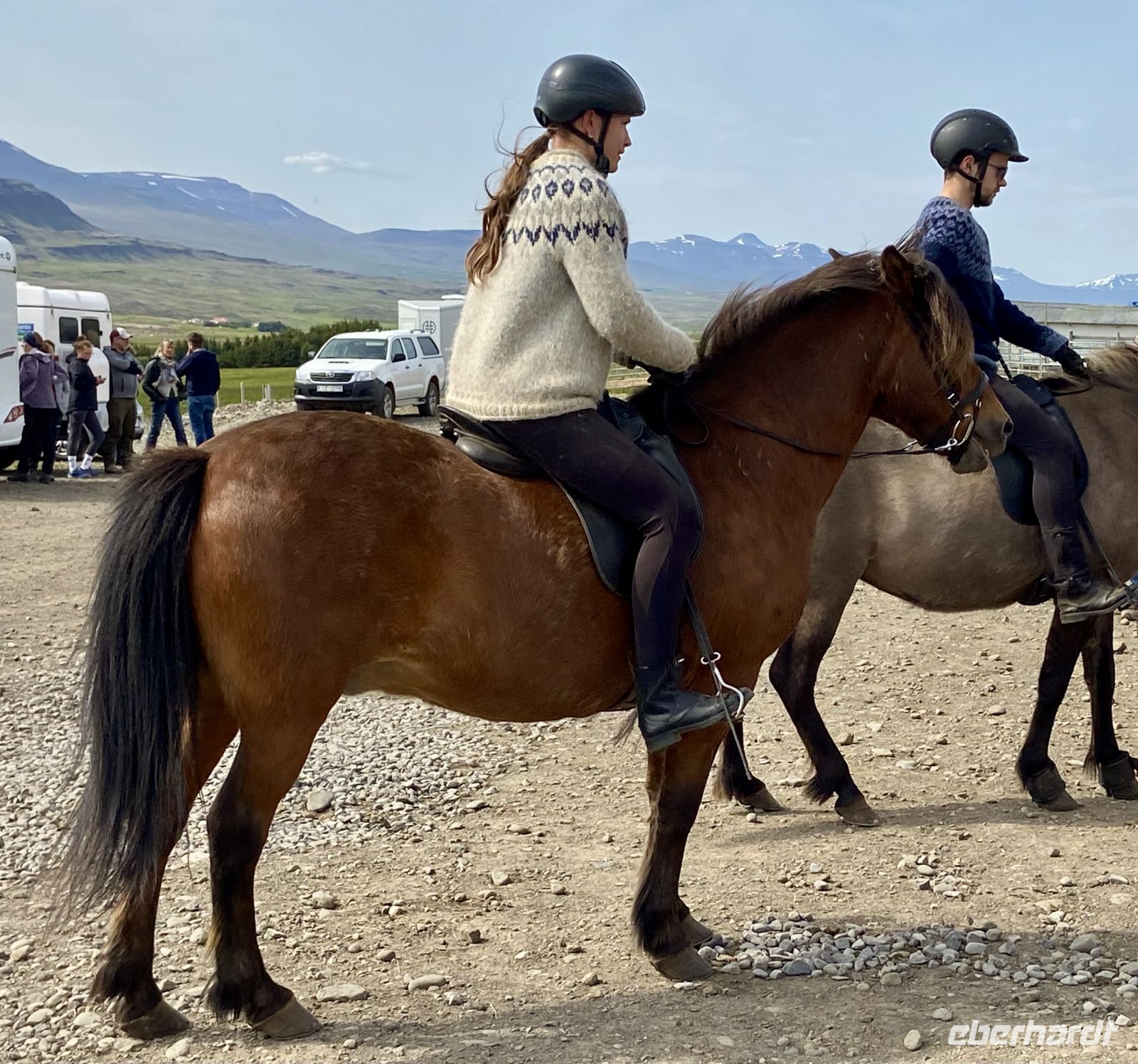 Nach dem Abendessen im Hotel macht sich eine kleine Gruppe von Gästen noch auf zu einem neuen Abenteuer: wir werden abgeholt von Stefan, dem Besitzer eines großen Islandpferdehofes, Herr über mehr als 150 Pferde. Nach einer kurzen Einweisung geht es in Begleitung einer sehr netten deutschen jungen Dame auf dem Pferderücken durch die wunderschöne Landschaft, bergauf und bergab. Die Berge, die uns umgeben, sind noch schneebedeckt und bilden einen herrlichen Kontrast zu den grünen Weiden, auf denen überall Pferde stehen. Nach dem Ritt empfängt man uns auf dem Hof noch mit Kaffee und kleinen Kuchenstückchen, es gibt auch wieder die leckeren Kekse „Eheglück“. Wir sitzen zusammen und sind uns einige: es war ein einzigartiges, unvergessliches Erlebnis, Islands Natur vom Rücken der Pferde aus zu genießen.