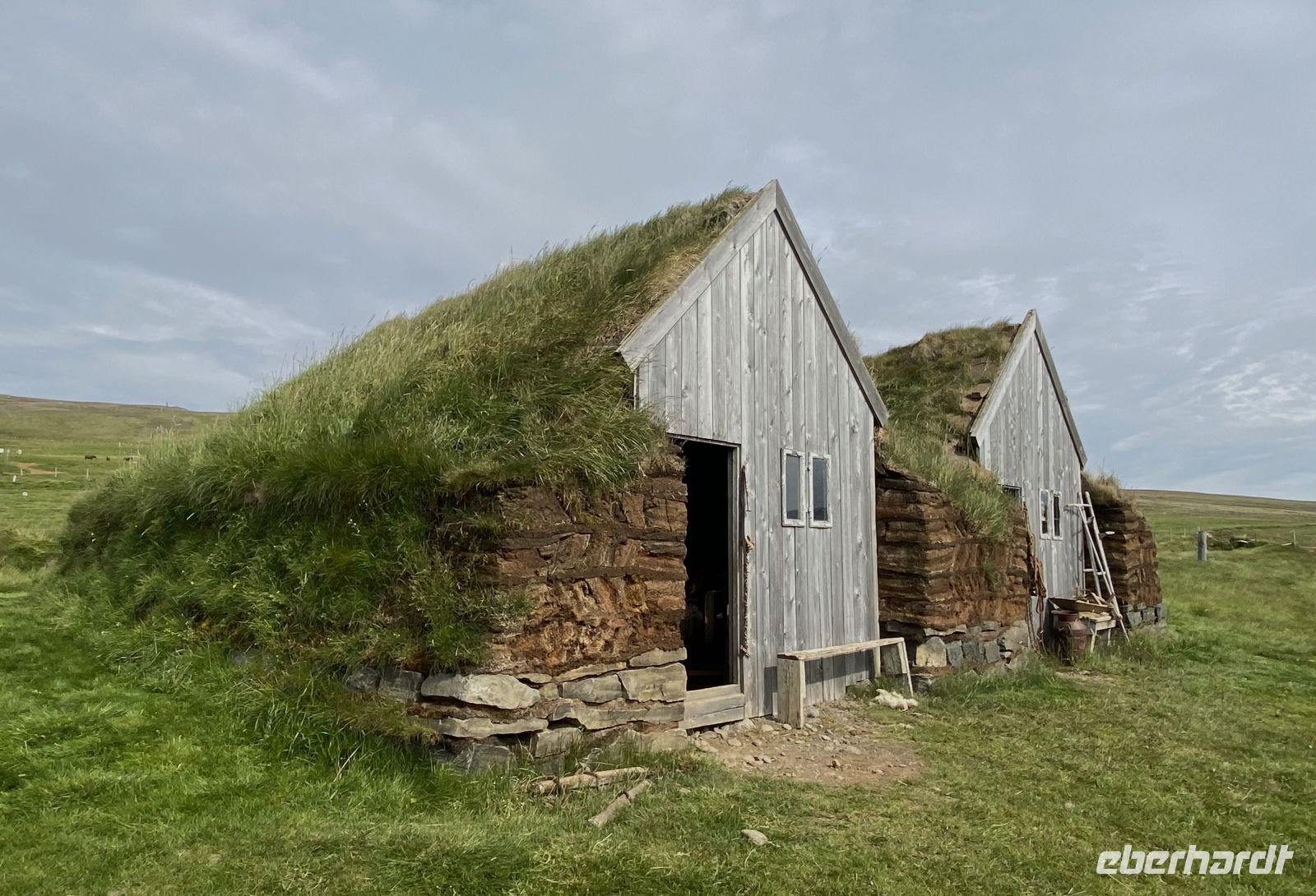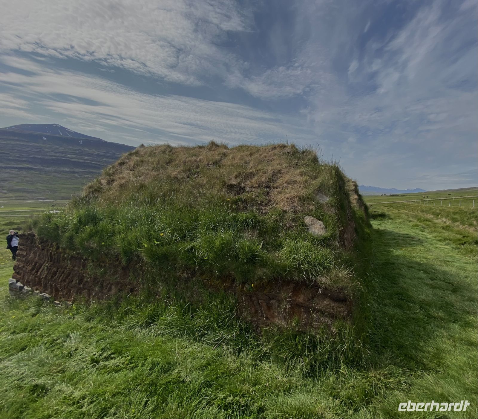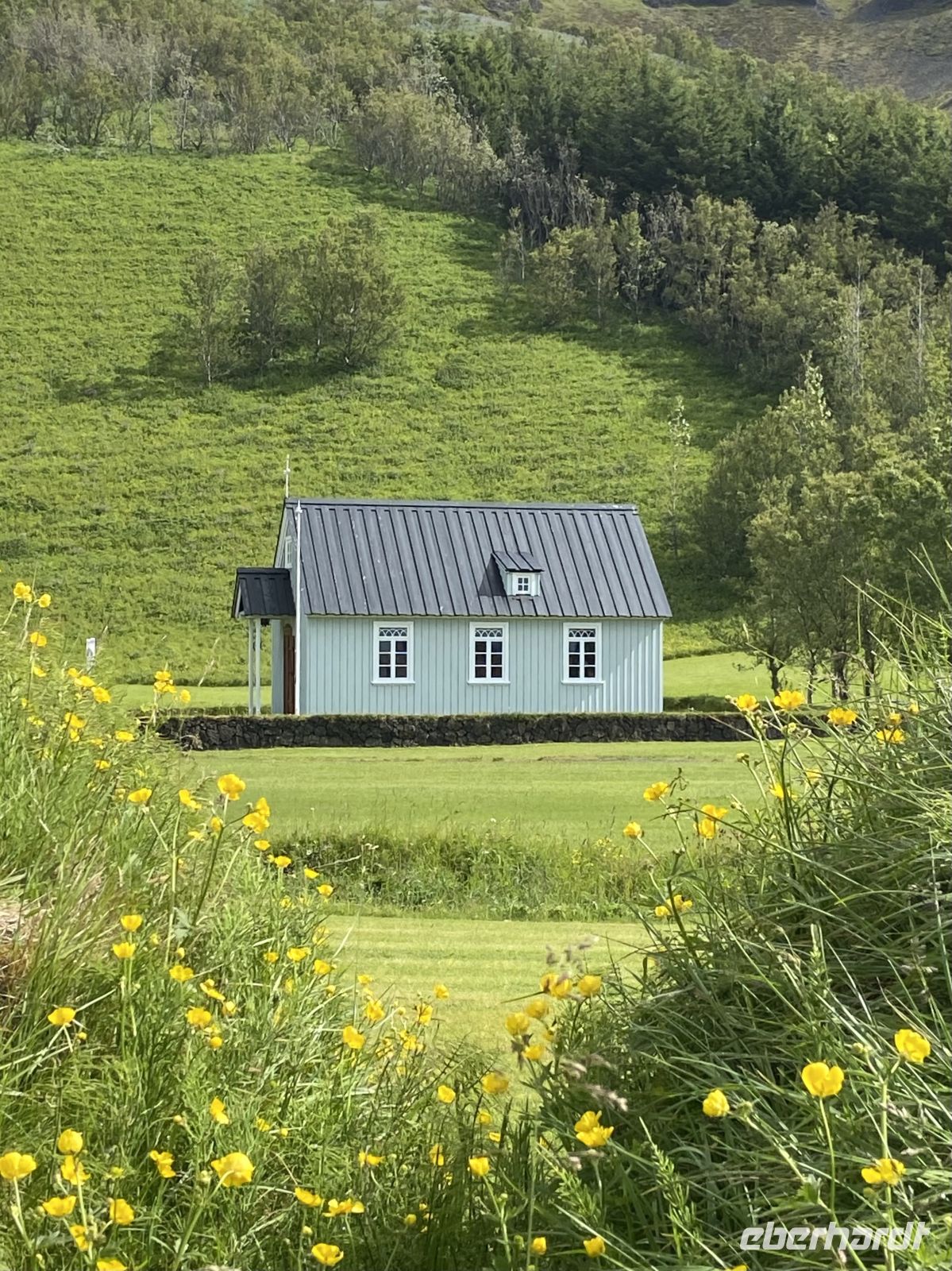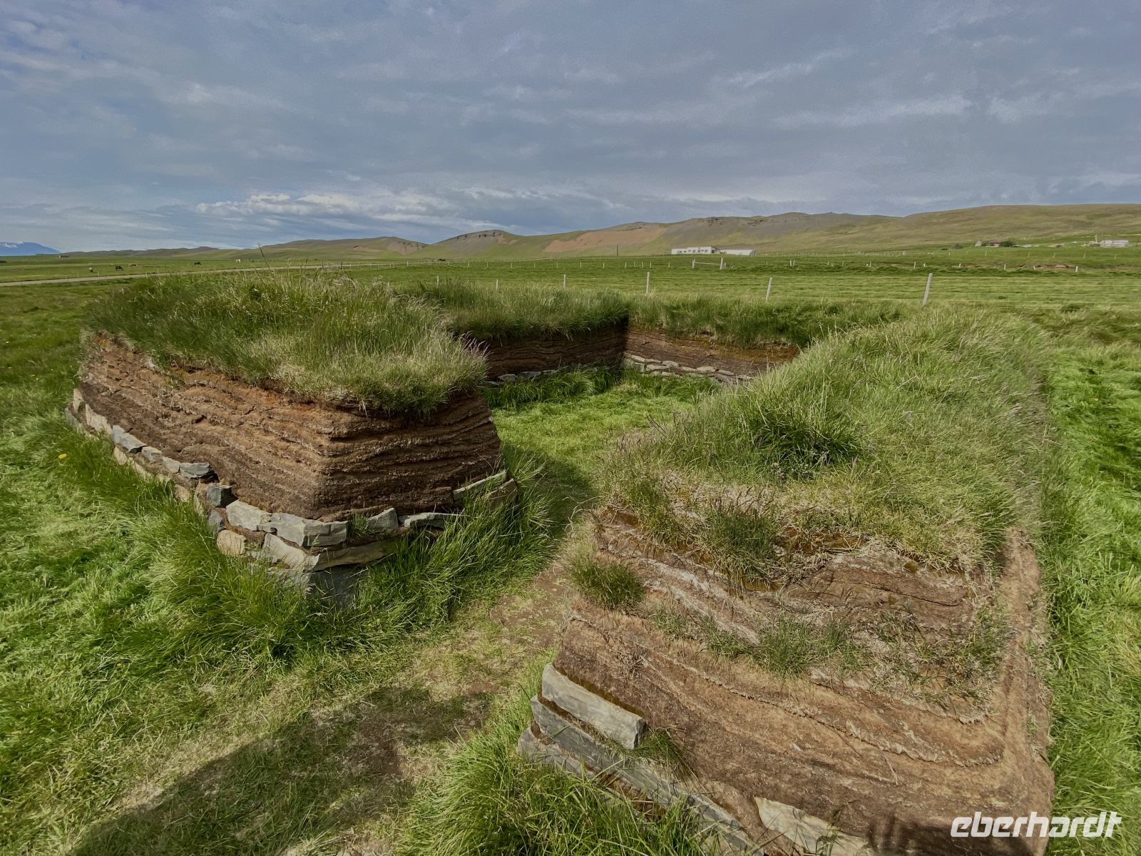 Wir besuchen die Deutsche Evelyn Kuhne auf ihrem Pferdehof und lernen viele interessante Details über die nationale Pferderasse mit ihren außergewöhnlichen Gangarten Tölt und Pass. Die ersten Pferde kamen etwa im 9. Jahrhundert mit den Siedlern nach Island und werden heute noch absolut reinrassig gezüchtet. Es werden keine Pferde auf die Insel importiert und wenn ein Islandpferd verkauft wird und das Land verlässt, darf es nie wieder eingeführt werden, um das Einschleppen von Krankheiten zu verhindern. Trotz der geringen Größe von ca. 140 cm kann es schwere Lasten und Reiter bis etwa 120 kg tragen. Sohn und Schwiegertochter von Evelyn führen uns ihre Reitkünste vor und danach sehen wir die Grashäuser, die sie nach altem Vorbild errichten ließ und sich damit einen Traum erfüllte. Zum Abschluss lädt sie uns ein zu Kaffee und selbstgebackenen Keksen. So lecker, dass wir gerne das Rezept mitnehmen…
