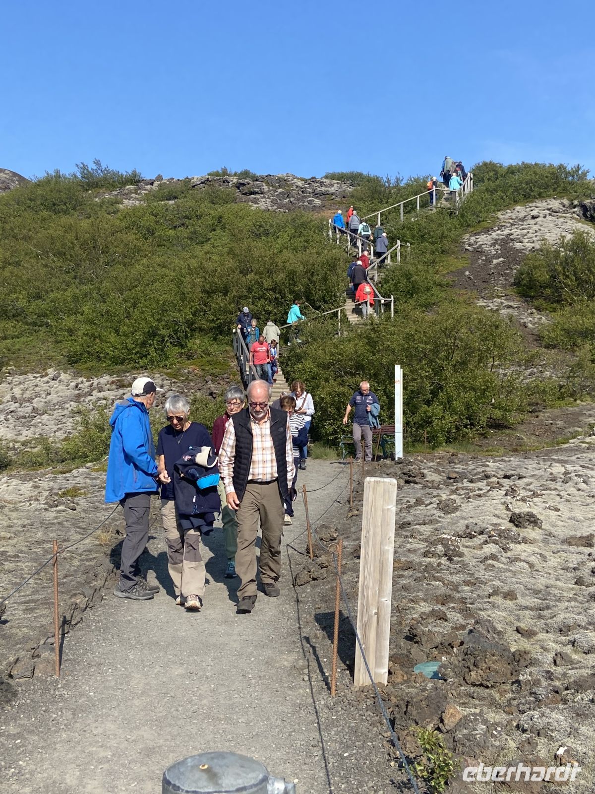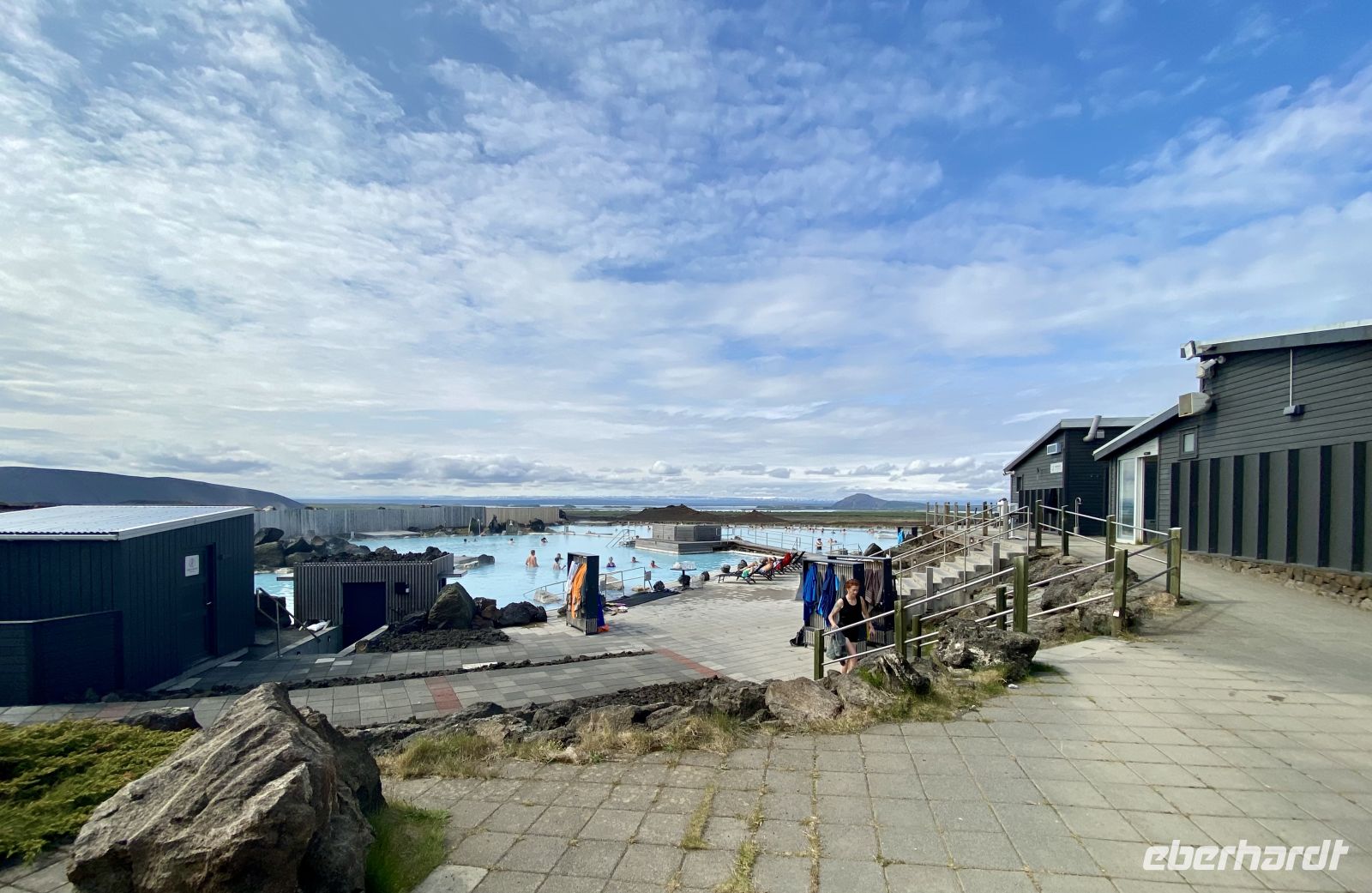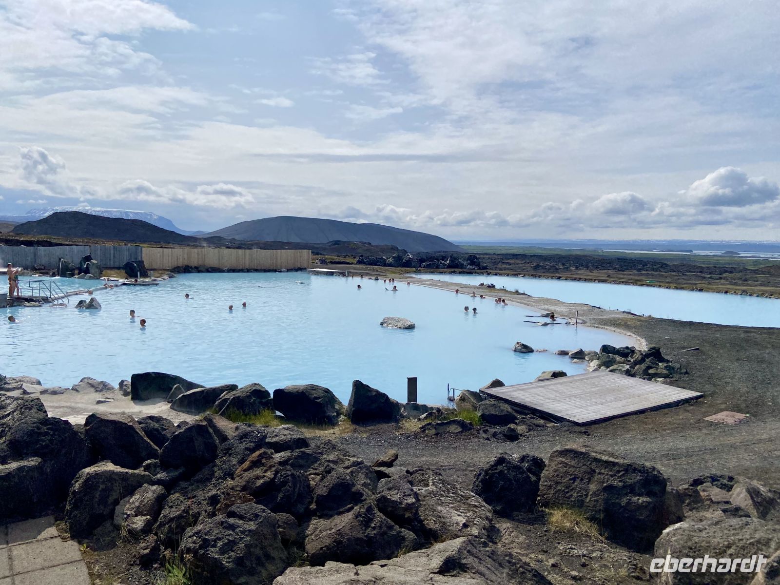 Entspannung verspricht an diesem Tag, der so reich an Impressionen ist, unser Besuch in den Myvatn Naturbädern Jardbödin mit ihrem warmen Geothermalwasser, umgeben von der atemberaubenden Natur am berühmten See. Das Wasser des Geothermalbads enthält eine einzigartige Mischung aus Mineralien, Silikaten und geothermischen Mikroorganismen, die sich hervorragend zur Linderung von schmerzenden und gereizten Muskeln eignen. Diese Mineralien sollen auch Wunder für die Haut und den Geist bewirken und ein Gefühl des Wohlbefindens schaffen. Wir genießen jede Minute...