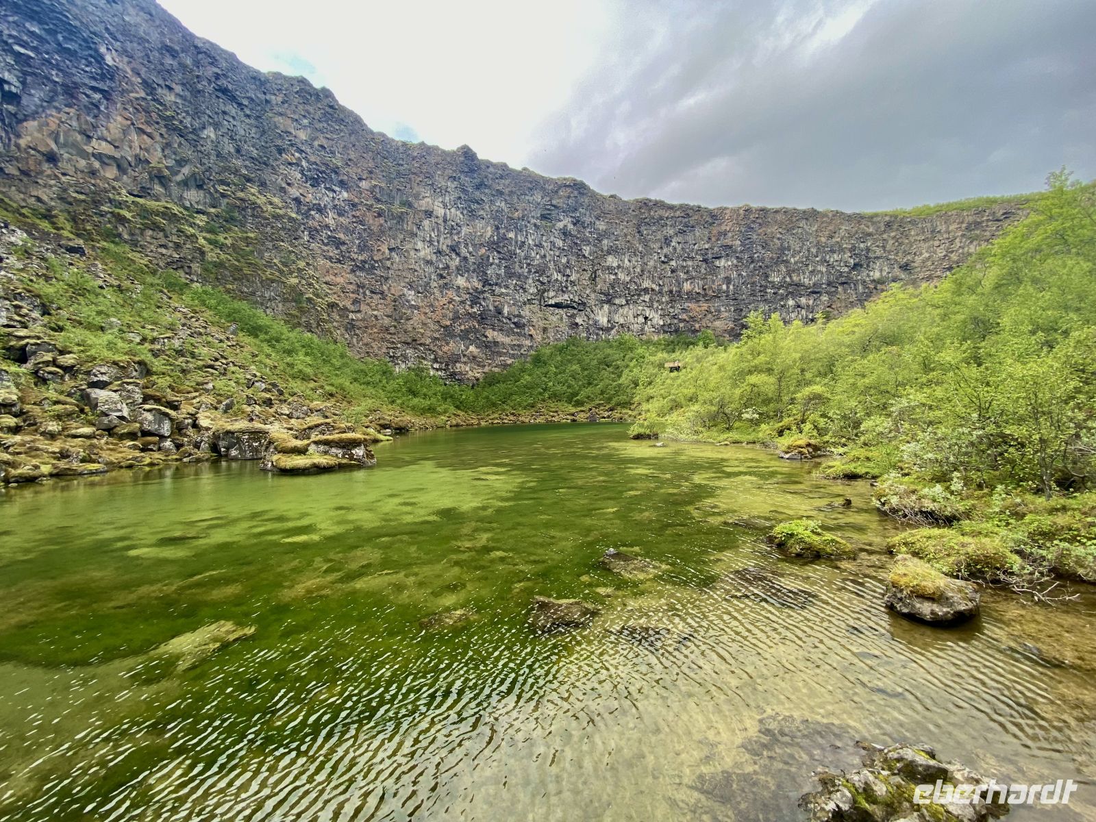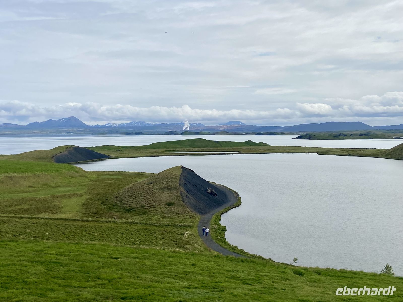 Heute entdecken wir das Gebiet rund um den Mückensee (Myvatn) im Nordosten Islands, wo die Vielfalt vulkanischer Bildungen besonders stark ausgeprägt ist. Der mit 37 Quadratkilometern viertgrößte See Islands liegt 278 m über dem Meeresspiegel und ist vulkanischen Ursprungs. Das ganze Gebiet ist auch heute noch vulkanisch aktiv, da die Grenze zwischen der Eurasischen und der Amerikanischen Kontinentalplatte hier verläuft. Der Mückensee entstand vor etwa 3.500 Jahren bei einem Ausbruch des Vulkans Ketildyngja. Die ausströmende Lava bildete einen Damm, der den Abfluß des Myvatnbeckens verschloß. Das Wasser staute sich und gründete die Urform des Mückensees. Vor 2.000 Jahren kam es zu einem weiteren großen Vulkanausbruch. Die Vulkane Lúdentsborgir und Þrengslaborgir förderten Lava, die den ursprünglichen See teilweise überfloss und seinen Abfluß erneut dämmte.