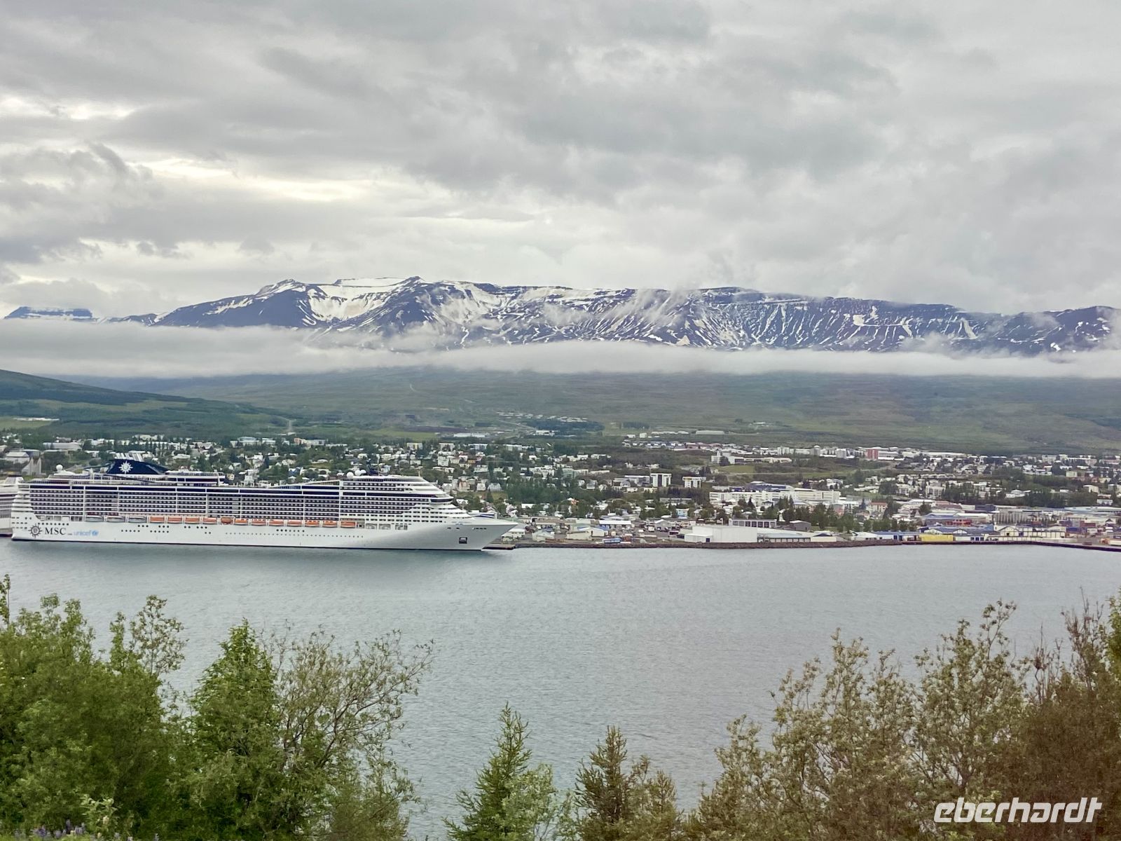 Auf der Rückfahrt ermöglicht unsere Reiseleitung noch einen kurzen Halt in Akureyri, sodass wir hier durch den Ort bummeln und einen Blick auf den zweitwichtigsten Kreuzfahrthafen der Insel werfen können.