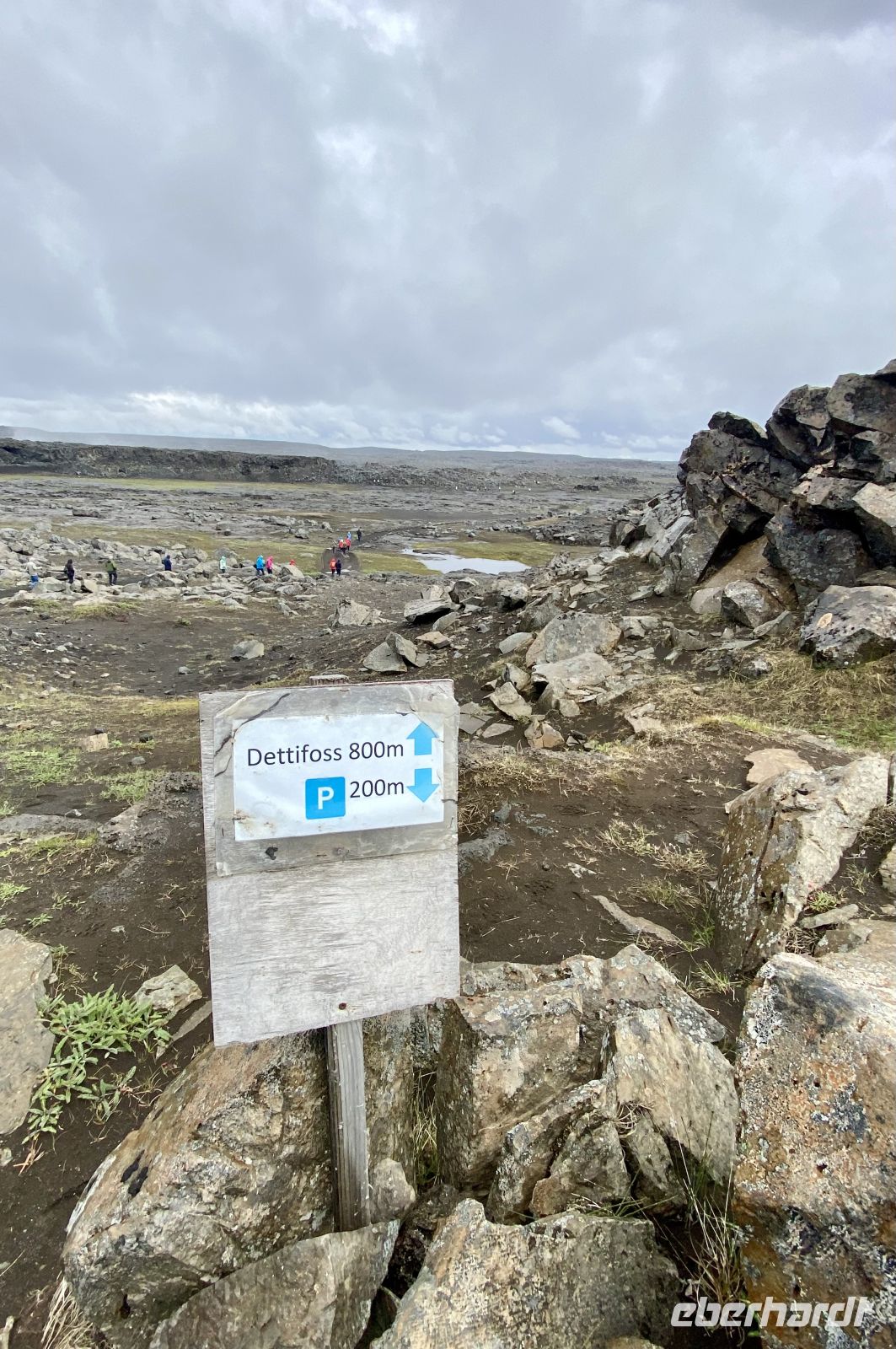 Der Gletscherfluß Jökulsá á Fjöllum (Gletscherfluß aus den Bergen) entwässert den nordöstlichen Teil Islands. Mit einer Länge von 206 km ist die Jökulsá der zweitlängste Fluß des Landes. Er entspringt am Nordrand des Gletschers Vatnajökull und entwässert auch die Eisabflüsse der Gletscherzungen Dyngjujökull und Brúarjökull. Während der ersten 150 km fließt das Wasser eher gemächlich nach Norden. Mit dem 12 m hohen Selfoss beginnt dann der Absturz in den Canyon. Die zweite Fallstufe bildet der Dettifoss. Das Gletscherwasser stürzt auf einer Breite von rund 100 m über 44 m in eine Schlucht. Im Sommer liegt die Wassermenge bei 1500 Kubikmetern pro Sekunde. Damit gehört der Dettifoss zu de wasserreichsten Wasserfällen