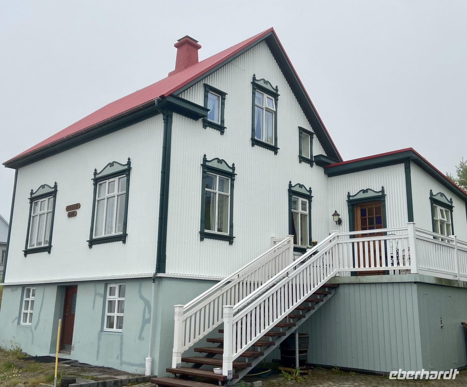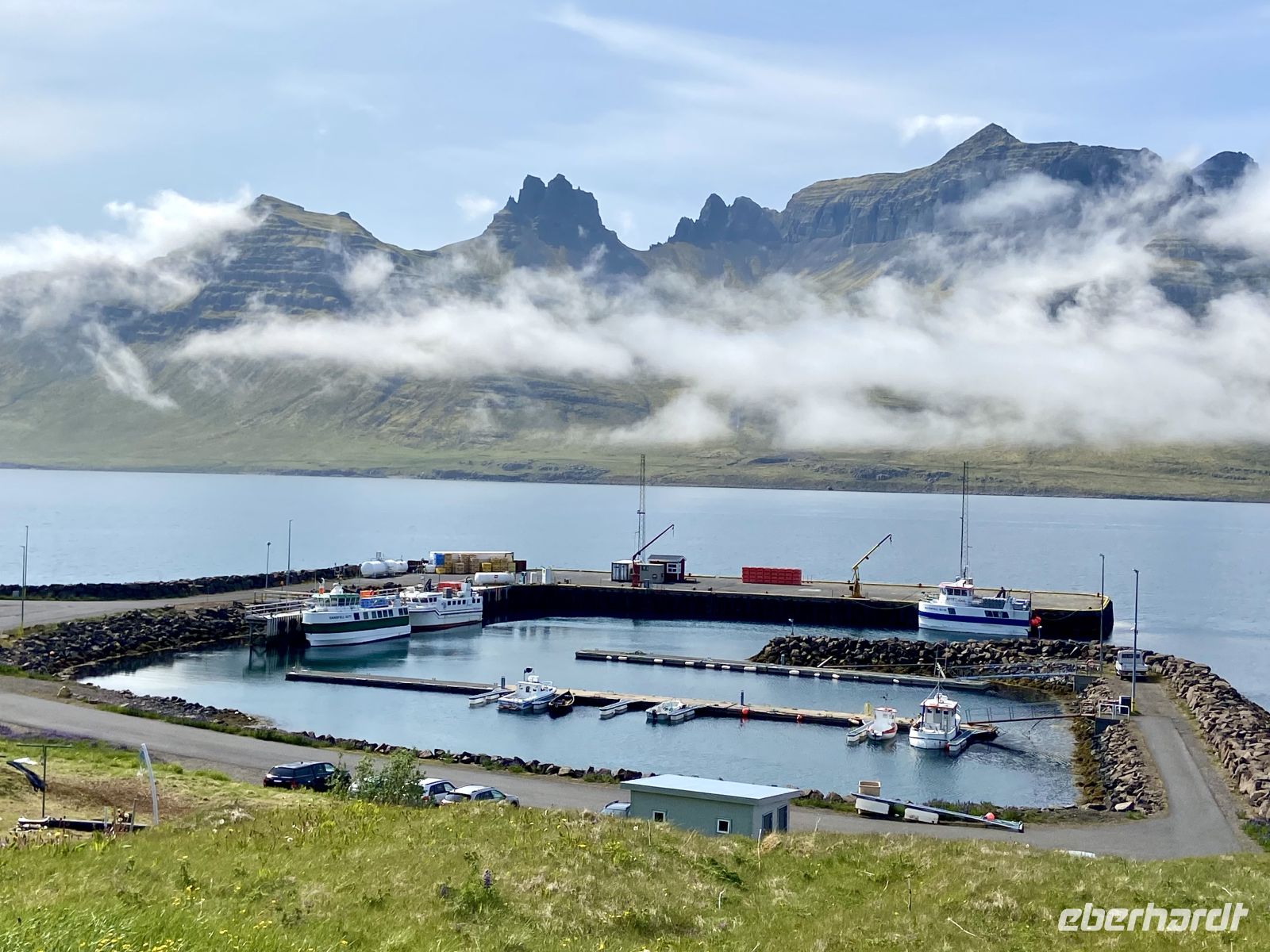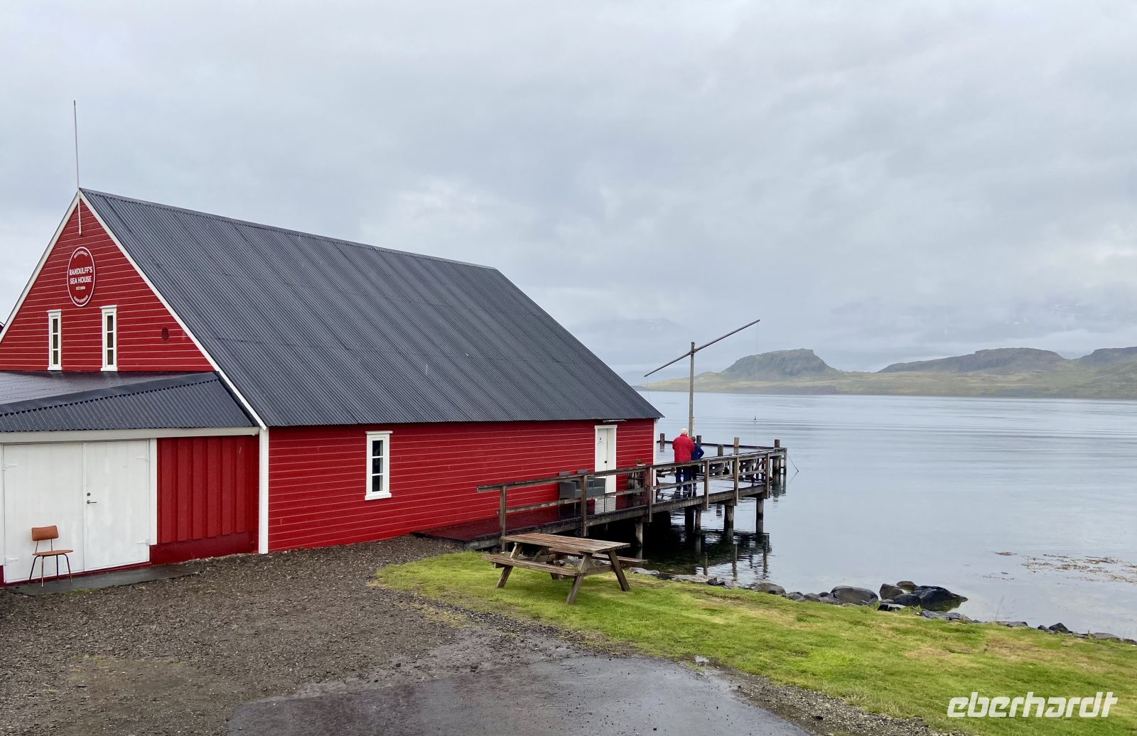 Nach einer langen Fahrtstrecke (wir haben heute die Tages-Rekord-Kilometerzahl von über 400 km erreicht) treffen wir in Eskifjördur ein. Unser Abendessen erwartet Uns dort in dem urigen Restaurant Randúlfssjóhús. Ein altes Holzhaus direkt am Hafen mit maritimem Ambiente und einem kleinen Museum unter dem Dach. Ein wunderschöner Tag voller abwechslungsreicher Impressionen geht zusende.