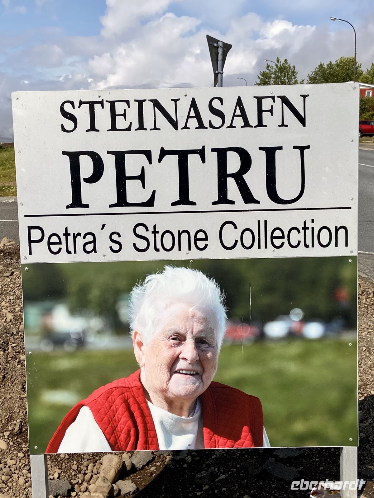Sie wurde am 24. Dezember 1922 in Ort Stöðvarfjörður im gleichnamigen Fjord im Osten Islands geboren worden, 1946 war sie mit ihrem Mann und den vier Kindern in das Haus Sunnuhlið am Ortseingang von Stöðvarfjörður gezogen. Bis 2007 wohnte sie dort zwischen ihren Steinen und den zahlreichen Besuchern. Denn als ihr Mann 1974 starb, beschloss Steina-Petra das Haus zu öffnen und ihre Sammlung als Museum der Öffentlichkeit zu zeigen. Seitdem besuchen rund 25.000 Touristen jährlich das Haus, eine der größten, privaten Steinsammlungen der Welt.