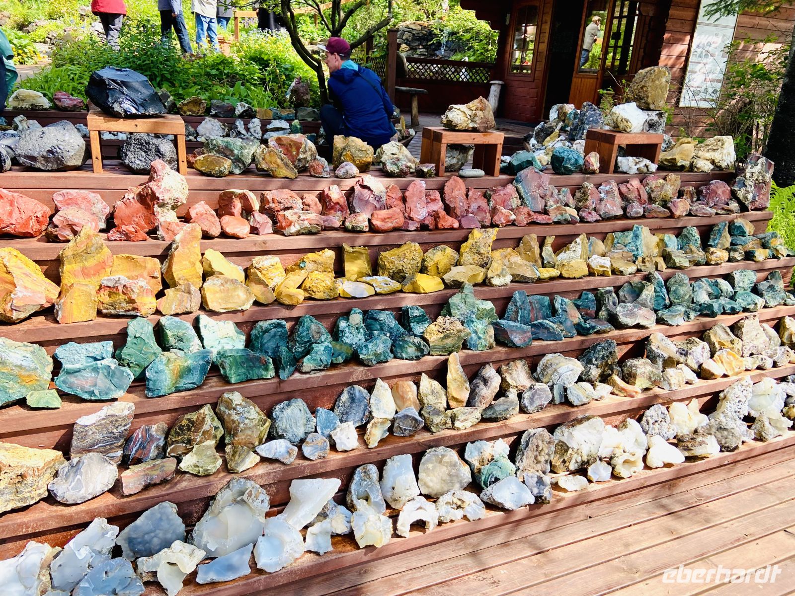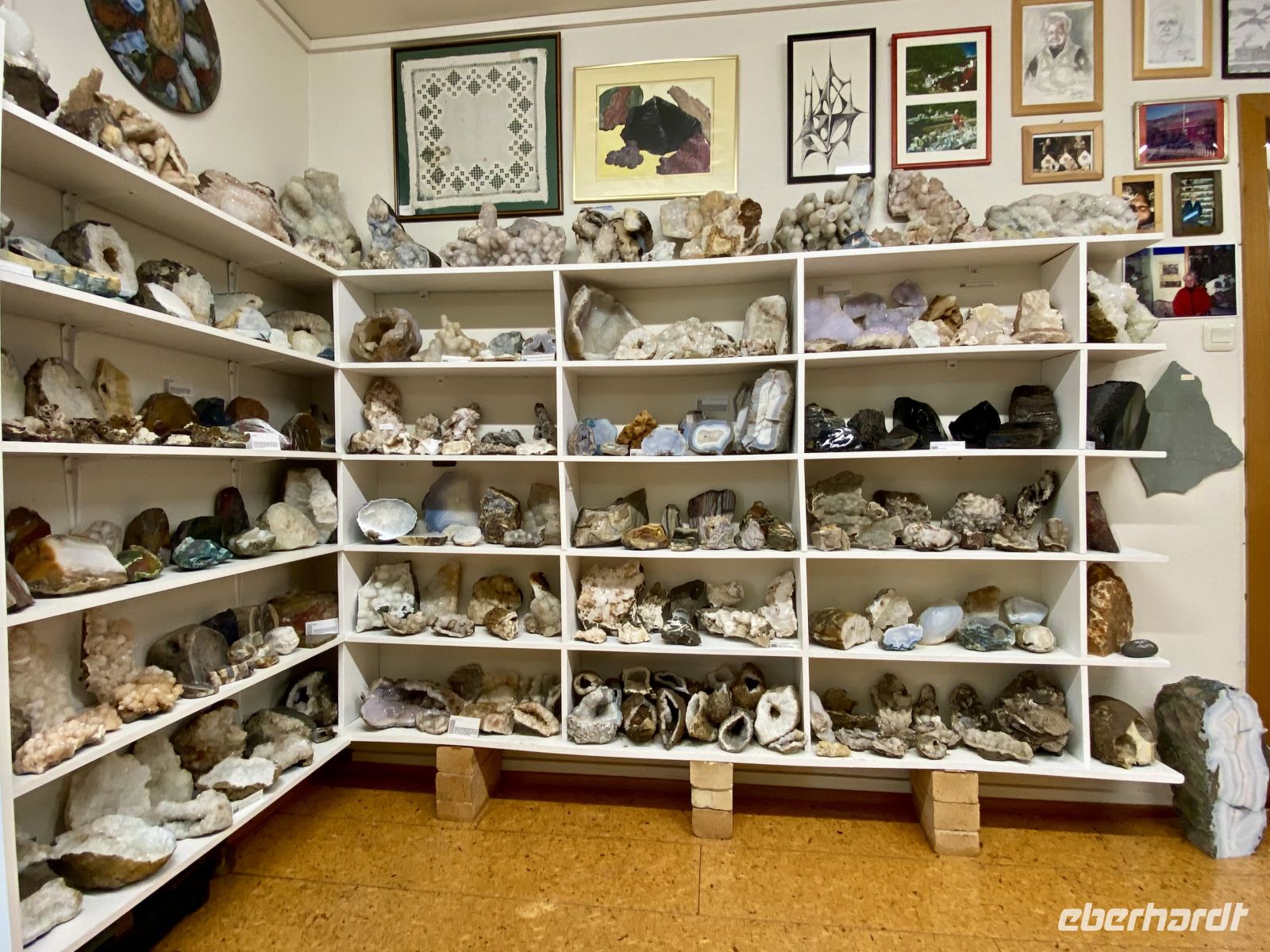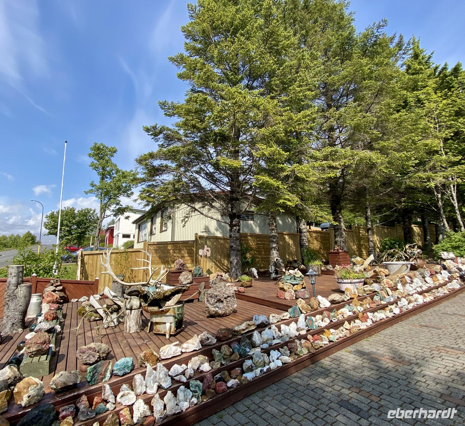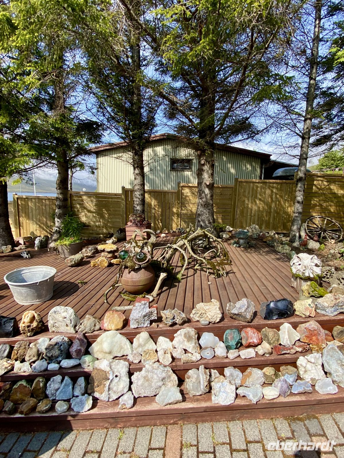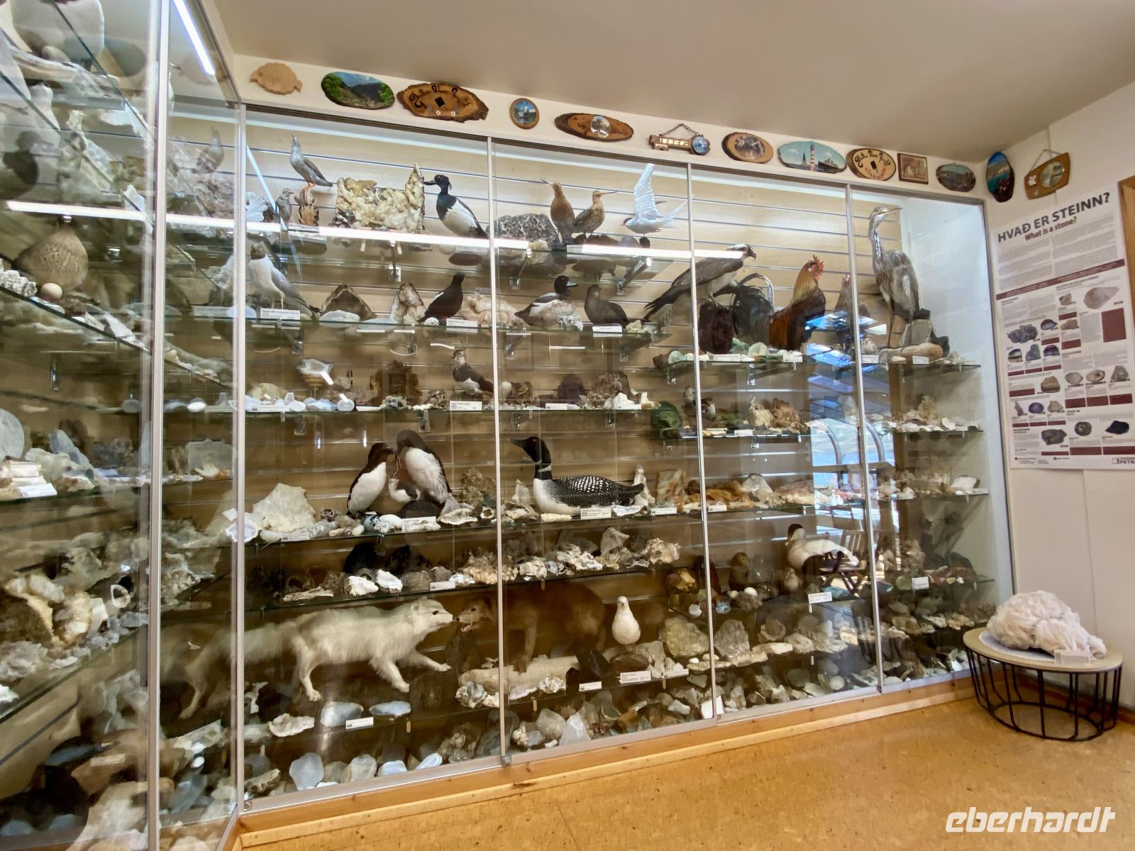 In den Ostfjorden besuchen wir die Steine-und Mineraliensammlung von Petra Maria Ljösbjörg in ihrem Privathaus. Die Menge an Steinen ist beeindruckend – zumal Petra im Laufe ihres Lebens die Steine aus den Bergen in der Umgebung eigenhändig nach Hause getragen hat.