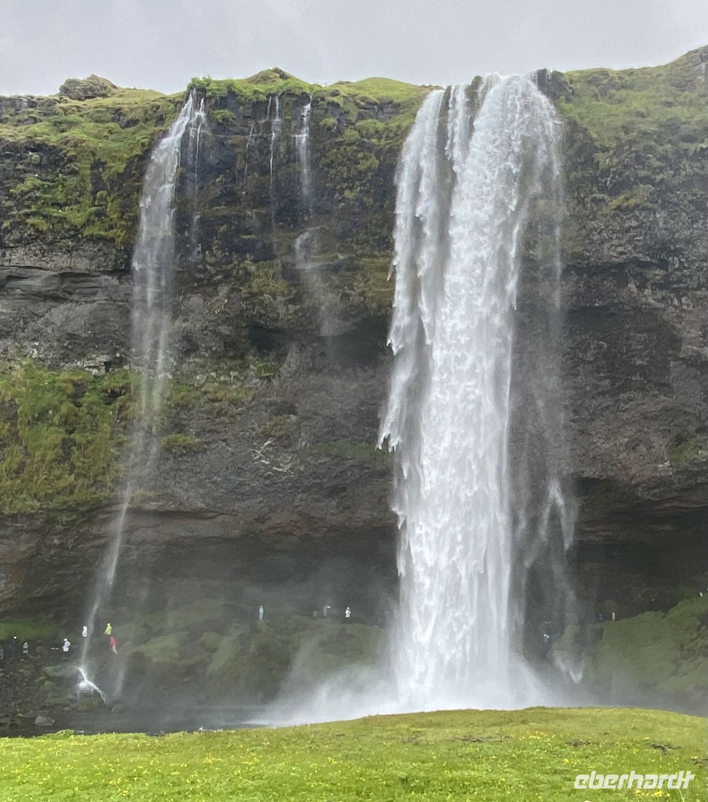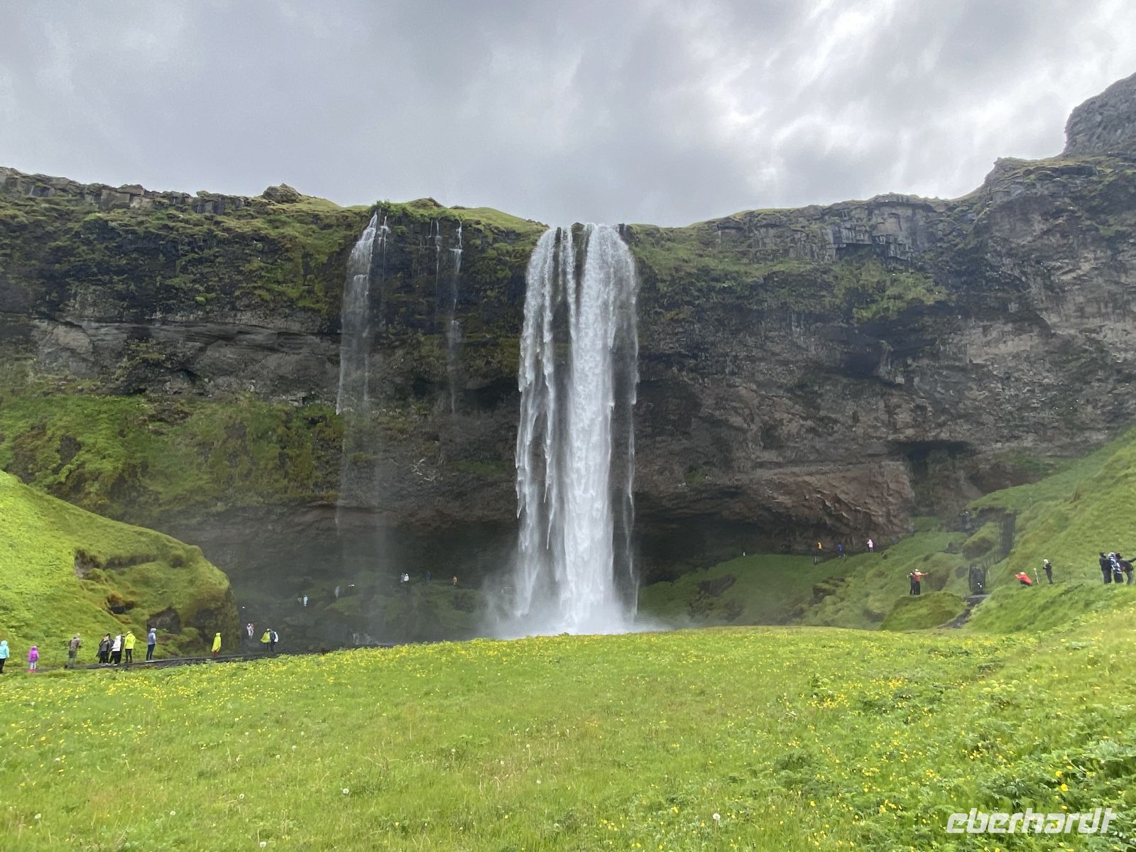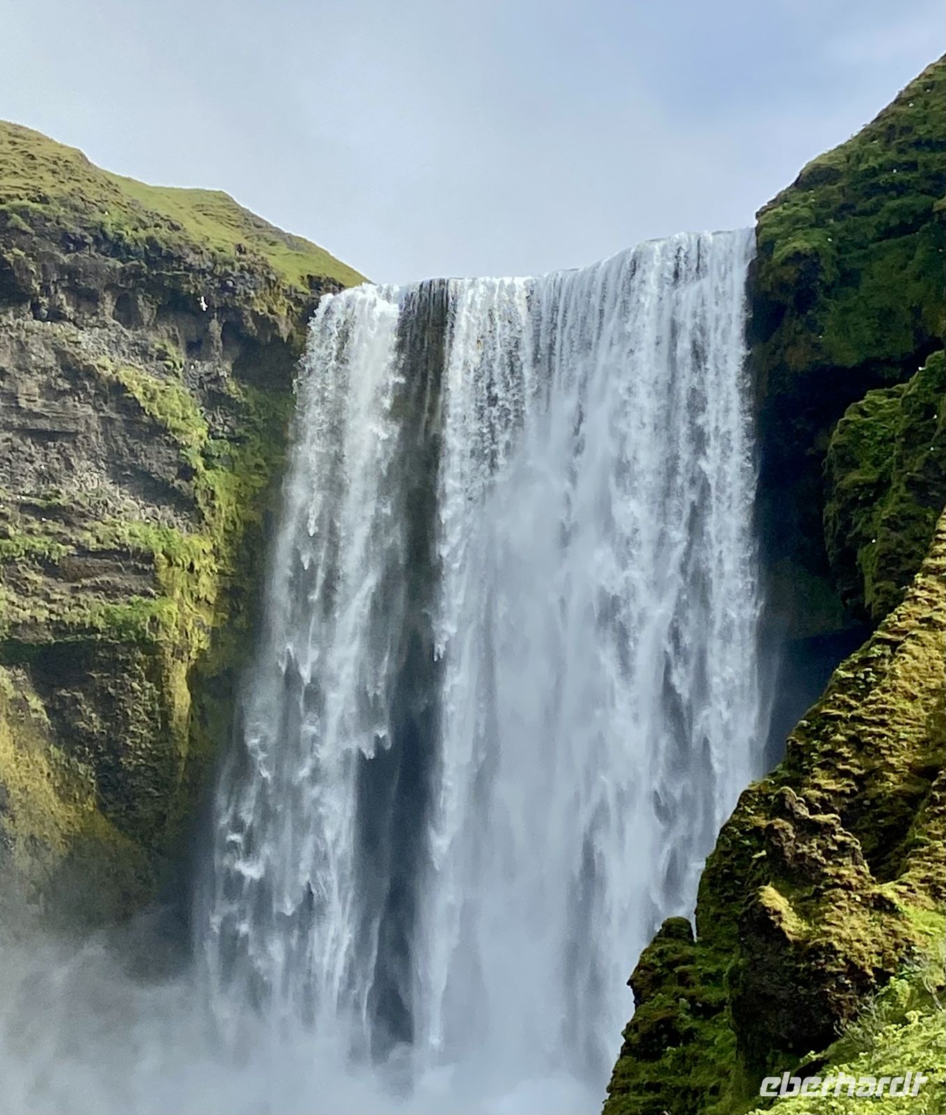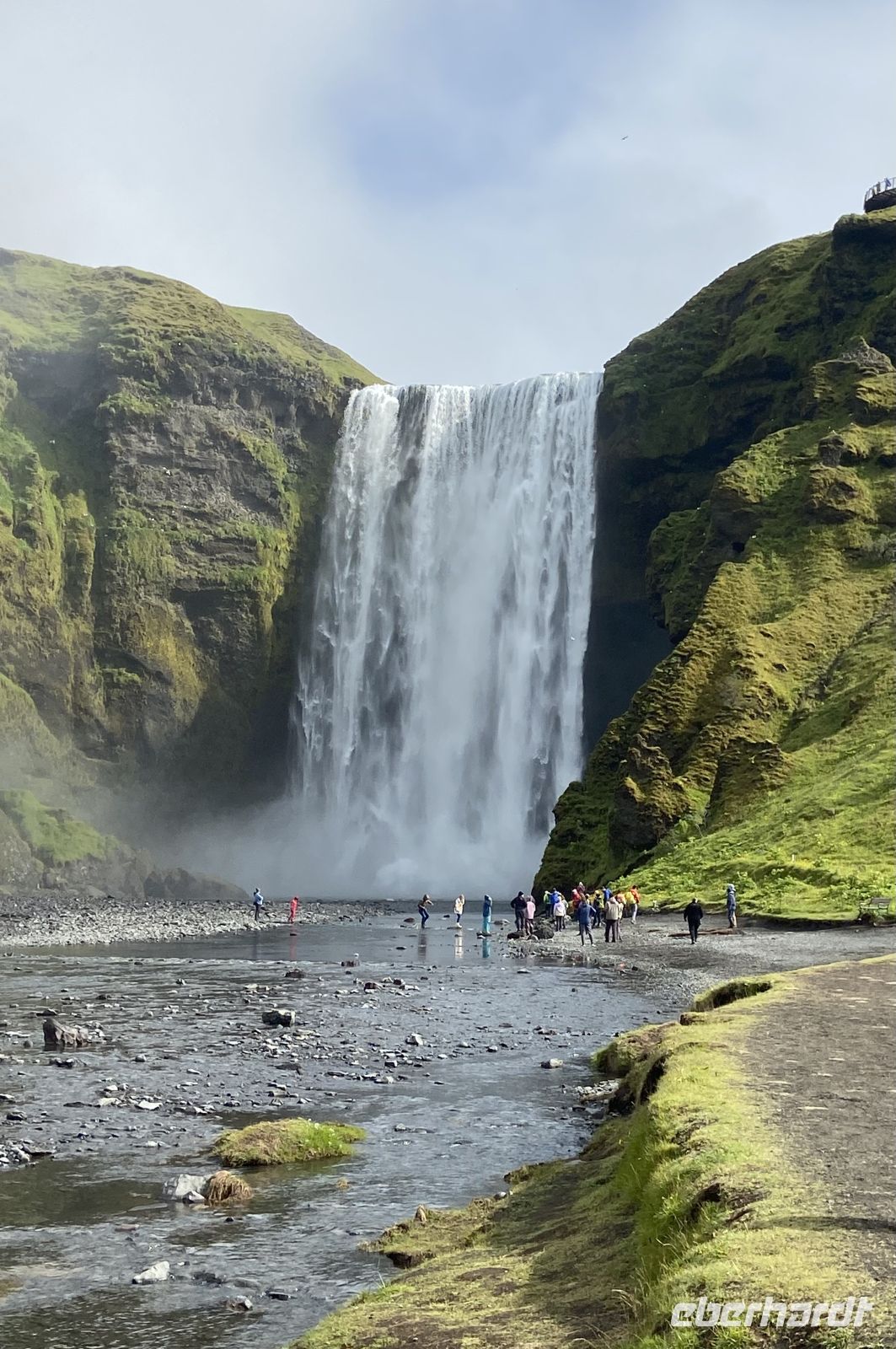 Der Skógafoss ist einer der bekanntesten Wasserfälle in Island und zieht Besucher aus aller Welt in seinen Bann. Der beeindruckende Wasserfall stürzt 62 Meter in die Tiefe. Die Legende besagt, dass sich hinter dem Skogafoss ein versteckter Schatz befindet, der von einem Wikinger dort vergraben wurde. Diese Geschichte erhöht den Mythos des Wasserfalls bei. Eine steile Treppe läuft neben dem Wasserfall empor, um auch von oben in die Fluten zu schauen. Wir haben uns die 567 Stufen jedoch erspart und lieber den Frontalanblick genossen und fotografiert. Der Wasserfall Skógafoss entstand, wie viele andere Wasserfälle im Land, erst nach dem Ende der Eiszeit. Nachdem die Gletscher geschmolzen waren und das Land von der großen Eislast befreit war, begann es, sich zu heben. Im Bereich der isländischen Südküste hob sich das Land teilweise um mehr als 50 m und es entstand eine Steilküste, über die Flüsse nach unten stürzen, so bildete sich auch der Skógafoss.