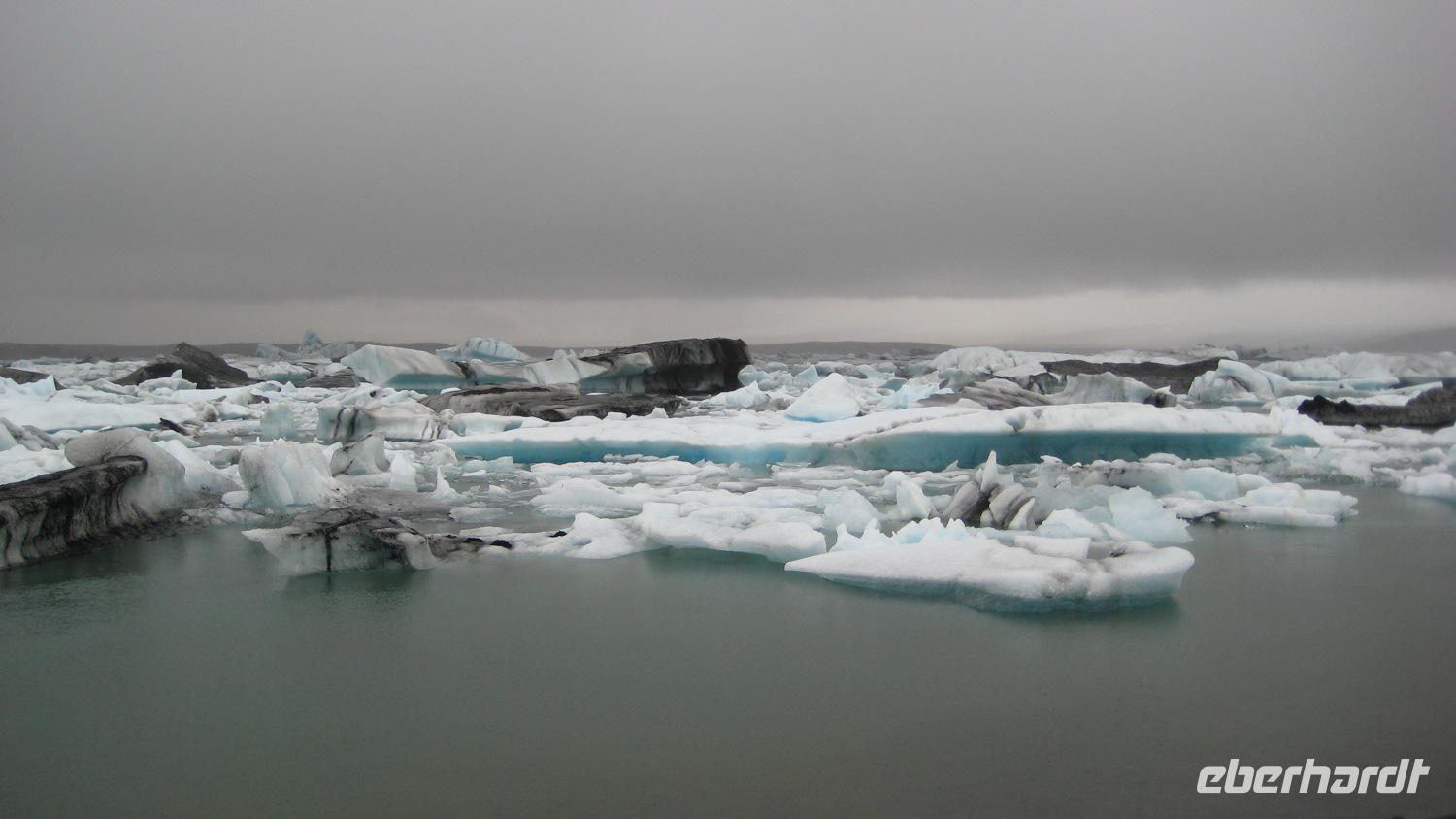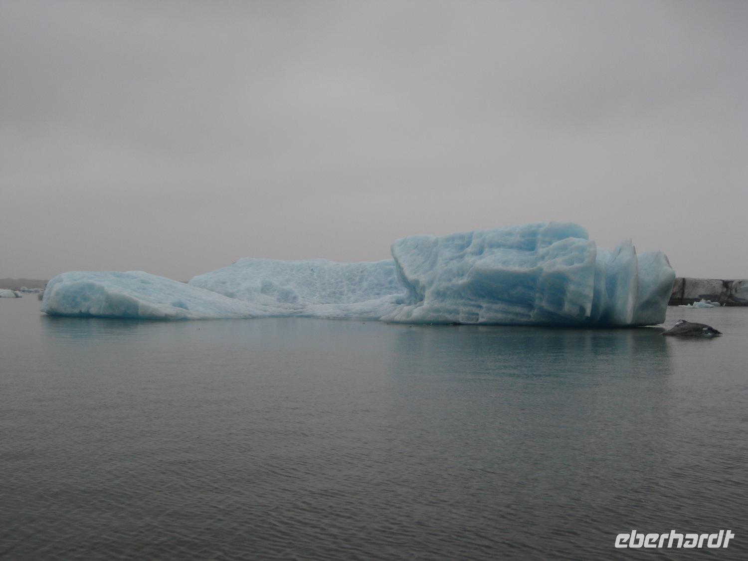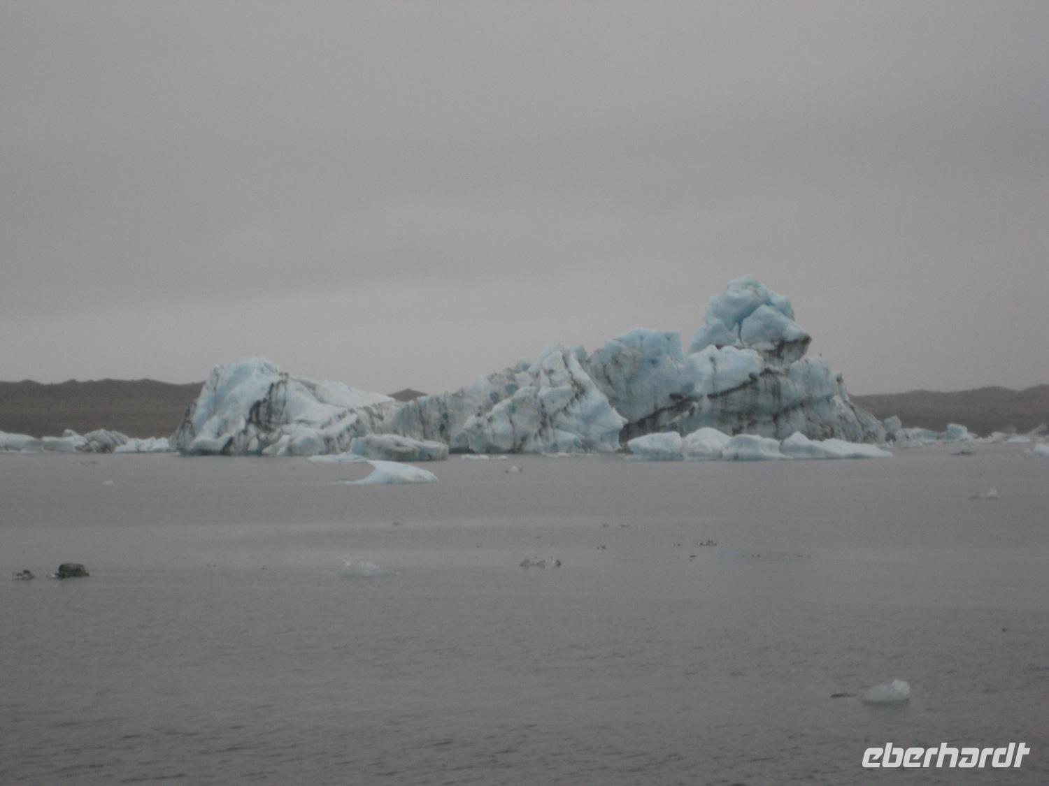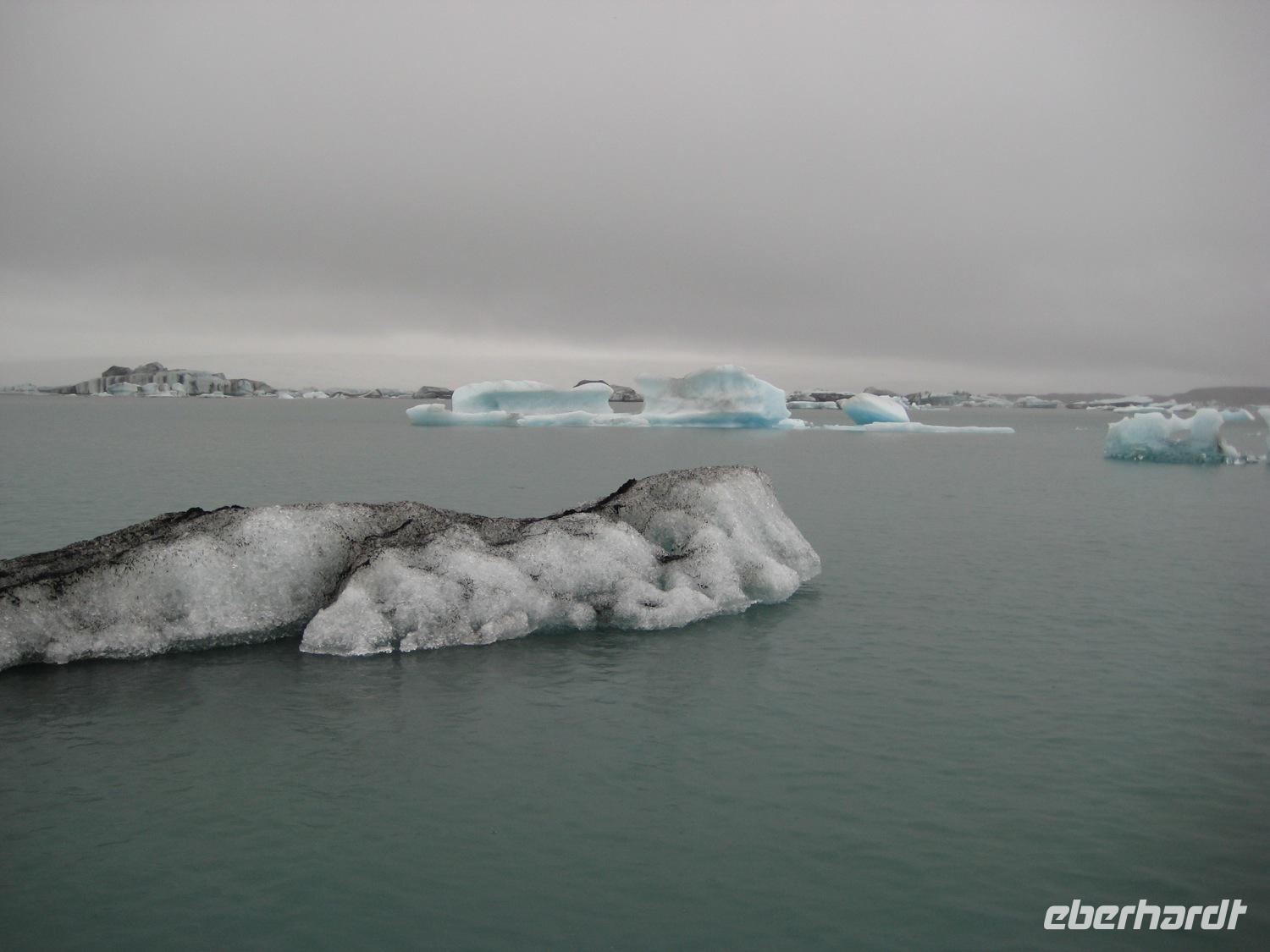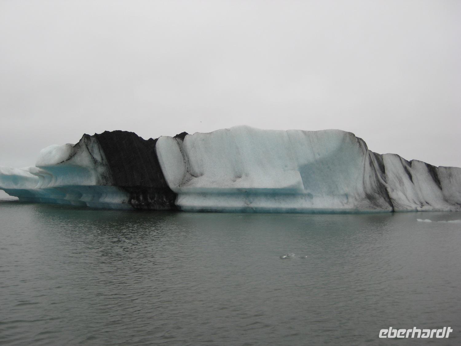 Nach einer kurzen aber erlebnisreichen Nacht ging es auch gleich weiter zum nächsten Highlight. Wie ein Gast so schön zu mir meinte: ?Das ist ja ein Highlight nach dem anderen. Toll.?. Da kann ich mich nur anschließen. Gegen 9 Uhr erreichten wir die Gletscherlagune Jökulsárlon. Diese wurde 2002 eigens für eine Sequenz des Film ?James Bond 007 ? Stirb an einem anderen Tag? angestaut, damit sie zufriert. Normalerweise friert die Lagune nicht zu, da sie zu je 50% aus Süß- und Salzwasser besteht. Für uns musste man aber nicht den See anstauen. Wir wollten ja schließlich eine Bootsfahrt auf ihn machen. Doch in diesem Moment fing es an wie aus Kübeln zu schütten. Nichtsdestotrotz bestiegen wir eines der vier Amphibienfahrzeuge und warfen uns eine orangene Sicherheitsweste über. Denn Sicherheit geht vor. Drum wurden wir zusätzlich von einem Begleitboot eskortiert. Eisberge ? von denen Schwammen jede Menge in der Lagune herum ? haben die unmögliche Angewohnheit sich einfach und ohne Vorwarnung zu drehen. Das kann verheerende folgen für ein Boot haben, denn wie jedes Kind weiß befinden sich gut 90% des Berges Unterwasser und sind damit nicht sichtbar. Schon der kleinste Stups kann ihn ins torkeln bringen und umkippen lassen. Drum fuhren wir mit unseren Geleitschutz in sicherer Entfernung um die Berge herum. Tolle Fotos haben wir trotzdem machen können. Zurück im warmen Bus ging es weiter, vorbei an den Svinafells, zum Skaftafell. Hier unternahmen wir eine Wanderung zum am meist fotografierten Wasserfall Islands, dem Svatifoss. Das ist er auch nicht ohne Grund, denn er fällt von einem riesigen Basaltsäulenfeld herunter. Es wirkt wie eine riesige Orgel mit hunderten von sechseckigen Pfeifen. Zurück von unserer Wanderung mussten wir unser geplantes Picknick, wegen des anhaltenden Regens, in den Bus verlegen. Was aber nicht weiter schlimm war. Gestärkt fuhren wir weiter zu dem kleinen Gehöft in Núpsstadur. Hier lebten zwei Brüdern, von denen der letzte erst vor wenigen Wochen mit fast 101 Jahren gestorben ist. Ihre Geschichte ist sehr interessant ? Ich erzähle sie hier nicht, da man sonst ja keinen Grund hat hier her zu kommen und die kleine Kirche um so mehr.Mitten durch die Laverfelder von Eldhraun und Myrdalssandur ging es zum Landhotel ?Höfdabrekka? bei Vík, unserer Herberge für die kommende Nacht.