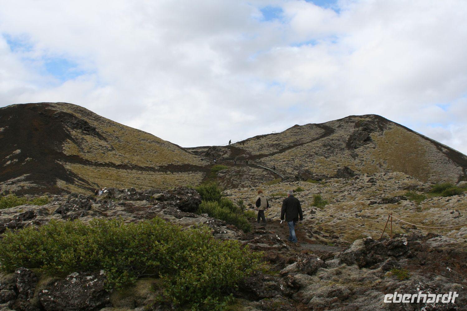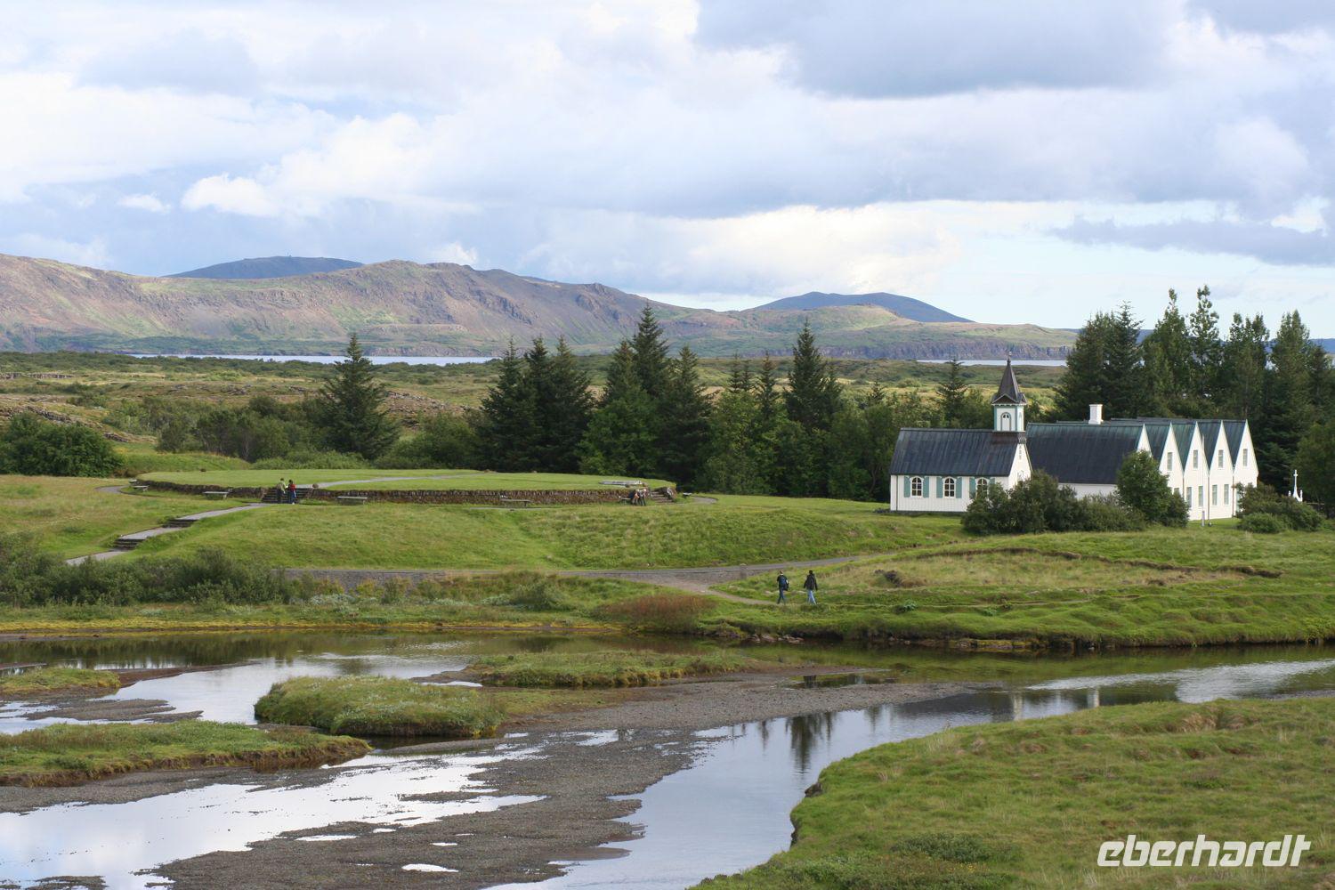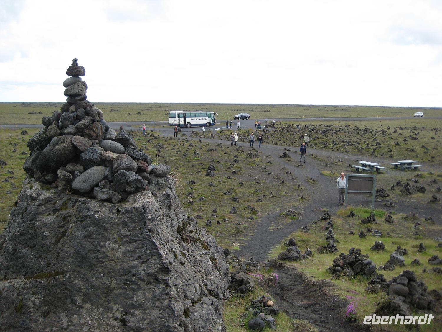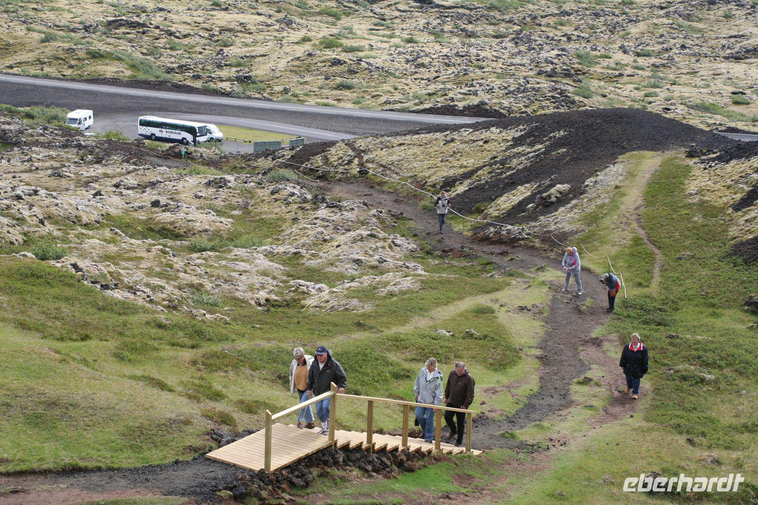 Ab jetzt fuhren wir nur noch ein kleines Stück auf der 1, denn um unser nächstes Ziel zu erreichen mussten wir diese verlassen und werden sie bis Reykjavík auch nicht mehr befahren. Wir bogen ins Landesinnere ab und begaben uns auf den Goldenen Kreis, einem Weg der Attraktionen. Vorbei an den Springquellen Geysir, den Namensgeber aller Springquellen der Welt aber leider schon versiegt ist, und Strokkur zum mächtigen Gullfoss. Wo wir eine Mittagspause einlegten und die gewaltigen Fälle auf uns wirken ließen. Es sollte heute aber noch gewaltiger werden. Es folgte die fahrt ins Niemandsland, besser gesagt, in den Graben des mittelatlantischen Rückens. Wir verließen gut sichtbar die eurasische Kontinentalplatte und begaben uns in den Graben, der im Schnitt jährlich um zwei Zentimeter auseinander driftet, dies aber nur statistisch. Denn wenn er auseinander geht dann mit einem gewaltigem Ruck und um mehrere Zentimeter. Wir verließen den Bus und besichtigten die älteste Thing des Nordens, dem Urparlament der Isländer. Direkt vor dem gewaltigen massiven Felsen der amerikanischen Kontinentalplatte. Die wir zu Fuß erklommen. Somit kann man sagen, dass wir nach Amerika gewandert sind. Da so eine Wanderung schon recht anstrengend sein kann, fuhren wir weiter nach Reykjavík in unser Hotel und schlossen somit den Kreis. Wir haben es geschafft, rund 1800 erlebnisreiche Kilometer liegen nun hinter uns.