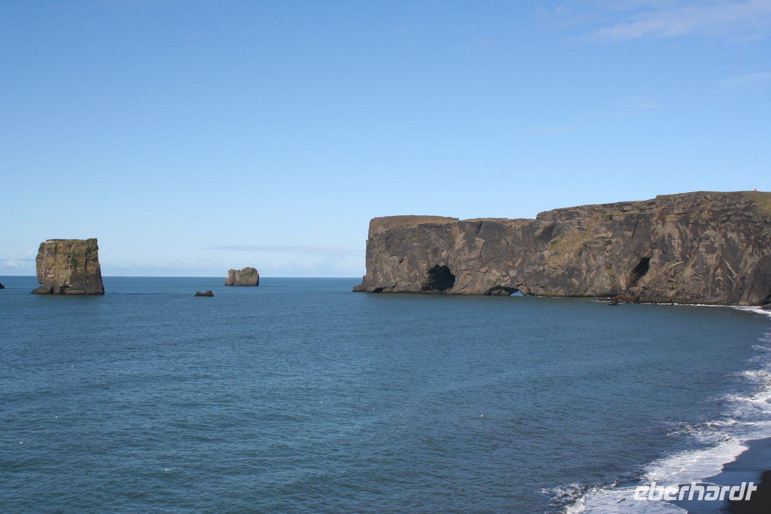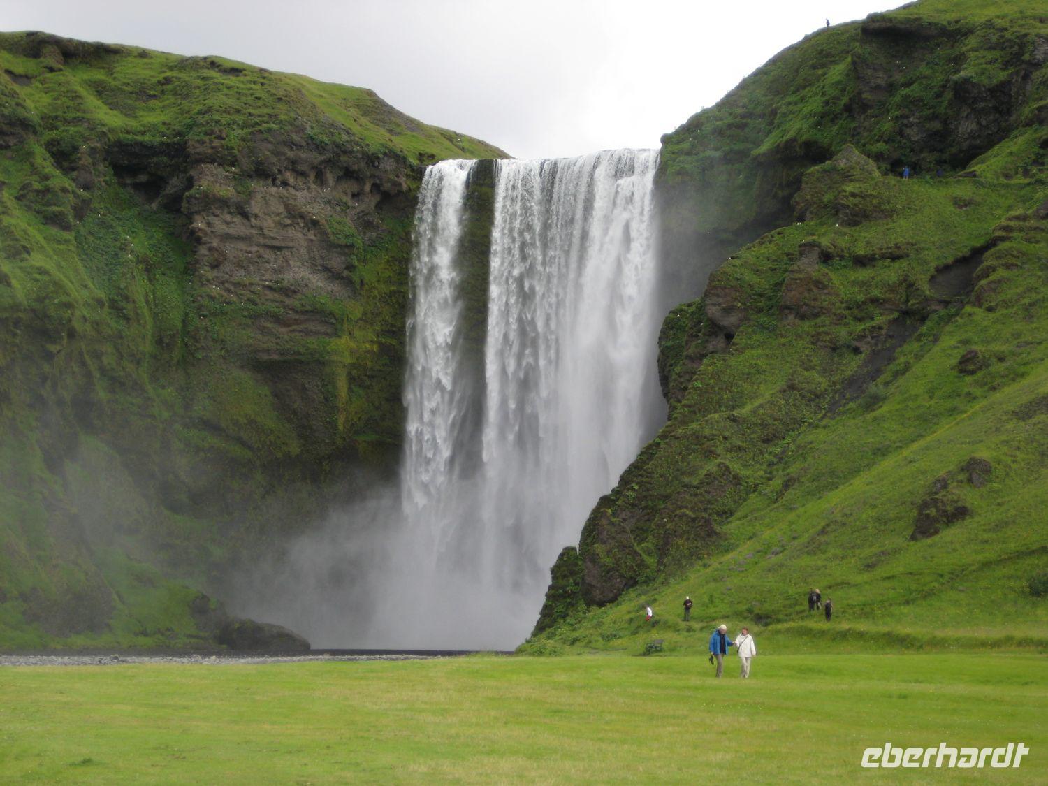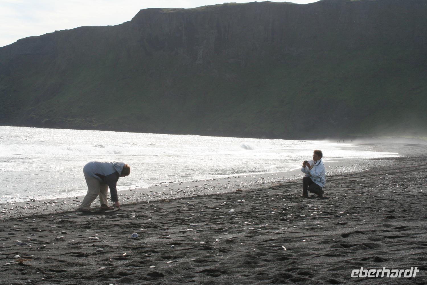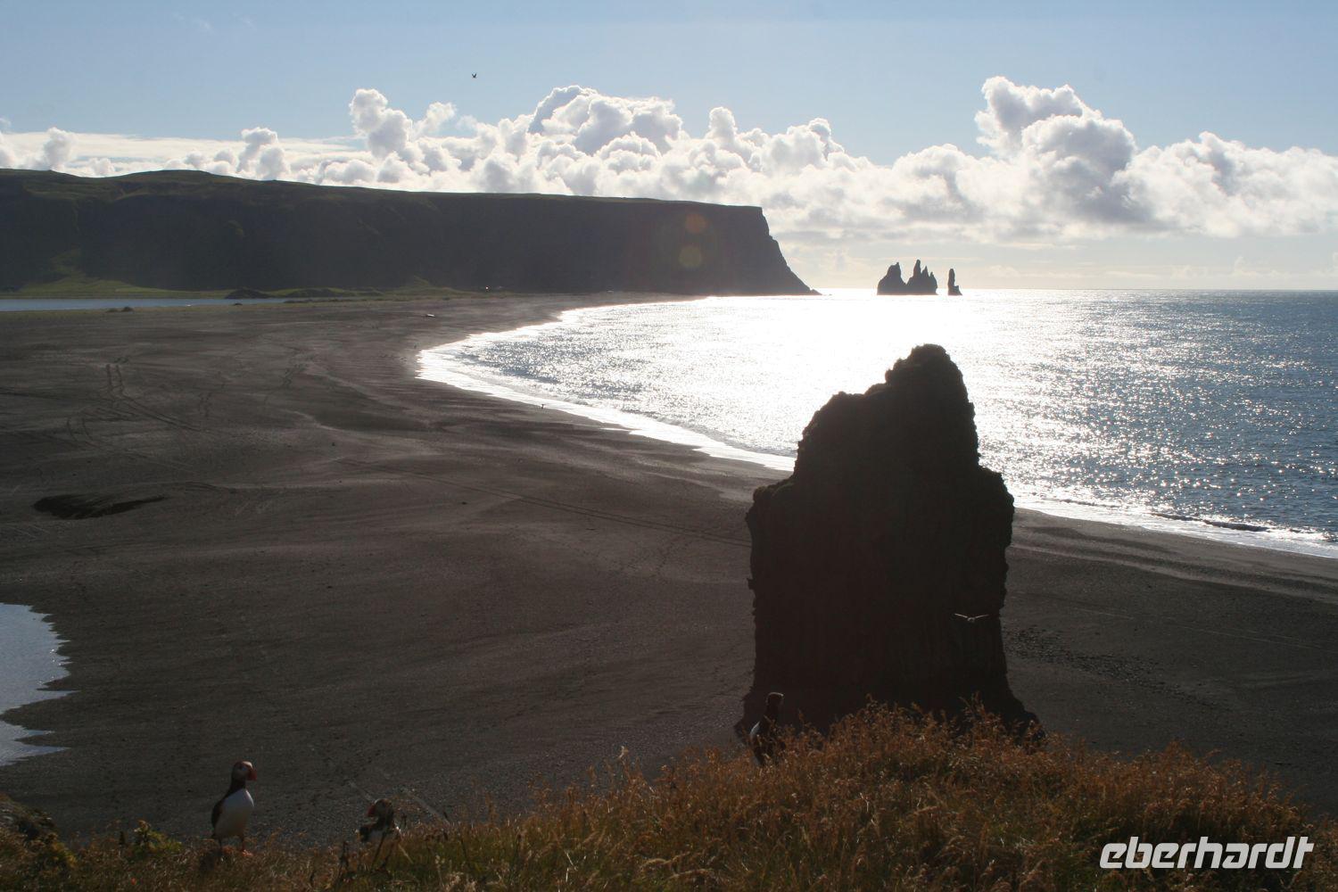 Da Vík außer Wolle und einen endlos langen schwarzen Sandstrand nicht viel zu Bieten hat, ging nach dem Frühstück direkt auf unsere letzte Etappe. Der Süden Islands, durch den wir nun fahren ist, aufgrund des Regens grüner und durch Landwirtschaft geprägt. Hier, auf dem Kap Dyrhólaey, kann man zur Nistzeit den tollpatschige Papageitaucher aus nächster nähe beobachten. Das Kap bietet bei schönem Wetter gute Sicht auf das Wahrzeichen von Vík, dem Reynisdrangar. Diese Felsformation soll der Legende nach versteinerte Trolle sein, die beim Versuch einen Dreimaster an Land zu ziehen von der Sonne überrascht wurden und versteinerten. Weiter auf der ?Ringstraße Nr. 1? kamen wir nach kurzer Zeit nach Skóga und besuchten das Heimatmuseum. Alle Exponate die wir hier sehen konnten wurden vom Museumsgründer Pórdur Tómasson gesammelt und katalogisiert. Natürlich lernten wir auch ihn persönlich kennen, diesen netten etwas exzentrischen alten Mann. Von hier aus war es nicht weit zum Skógafoss. Und somit besuchten wir auch diesen Wasserfall, der ebenfalls eine Sage beherbergt. Doch diese lernen sie ebenfalls nur kennen, wenn sie hier her kommen.