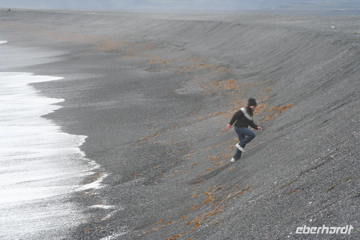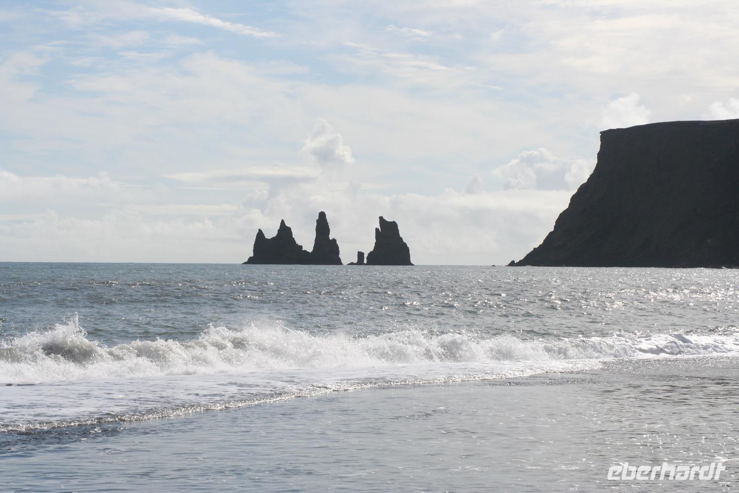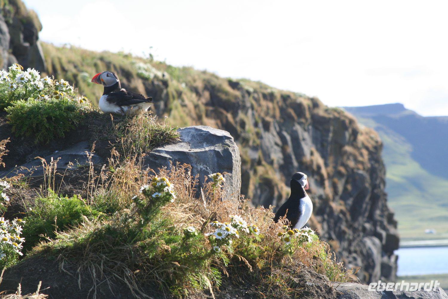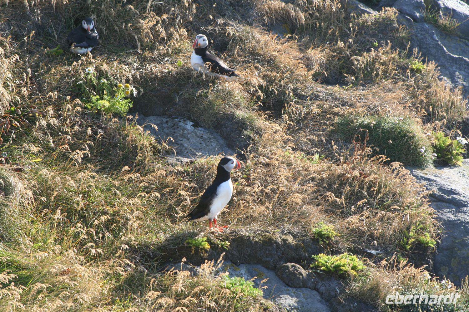Da Vík außer Wolle und einen endlos langen schwarzen Sandstrand nicht viel zu Bieten hat, ging nach dem Frühstück direkt auf unsere letzte Etappe. Der Süden Islands, durch den wir nun fahren ist, aufgrund des Regens grüner und durch Landwirtschaft geprägt. Hier, auf dem Kap Dyrhólaey, kann man zur Nistzeit den tollpatschige Papageitaucher aus nächster nähe beobachten. Das Kap bietet bei schönem Wetter gute Sicht auf das Wahrzeichen von Vík, dem Reynisdrangar. Diese Felsformation soll der Legende nach versteinerte Trolle sein, die beim Versuch einen Dreimaster an Land zu ziehen von der Sonne überrascht wurden und versteinerten. Weiter auf der ?Ringstraße Nr. 1? kamen wir nach kurzer Zeit nach Skóga und besuchten das Heimatmuseum. Alle Exponate die wir hier sehen konnten wurden vom Museumsgründer Pórdur Tómasson gesammelt und katalogisiert. Natürlich lernten wir auch ihn persönlich kennen, diesen netten etwas exzentrischen alten Mann. Von hier aus war es nicht weit zum Skógafoss. Und somit besuchten wir auch diesen Wasserfall, der ebenfalls eine Sage beherbergt. Doch diese lernen sie ebenfalls nur kennen, wenn sie hier her kommen.