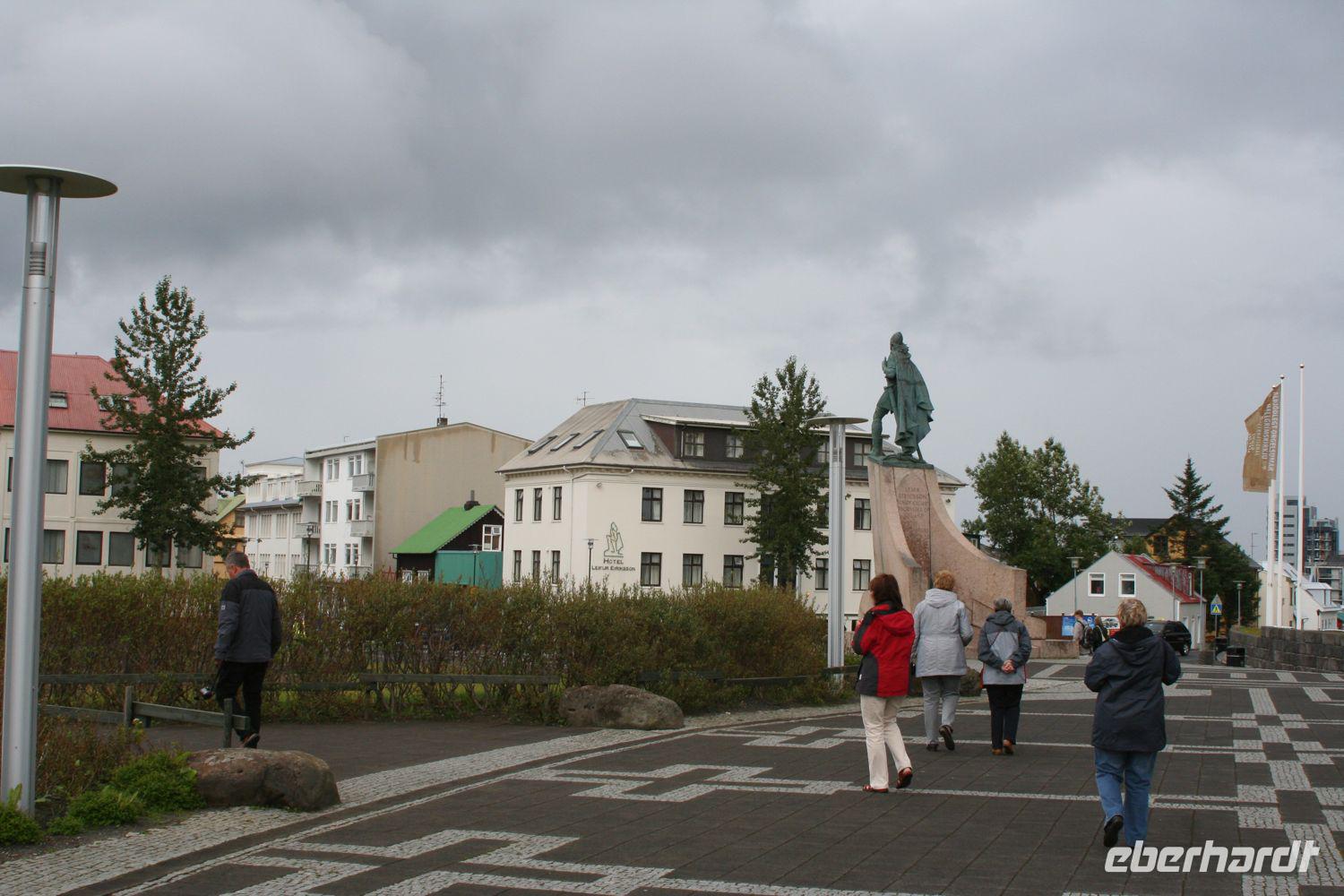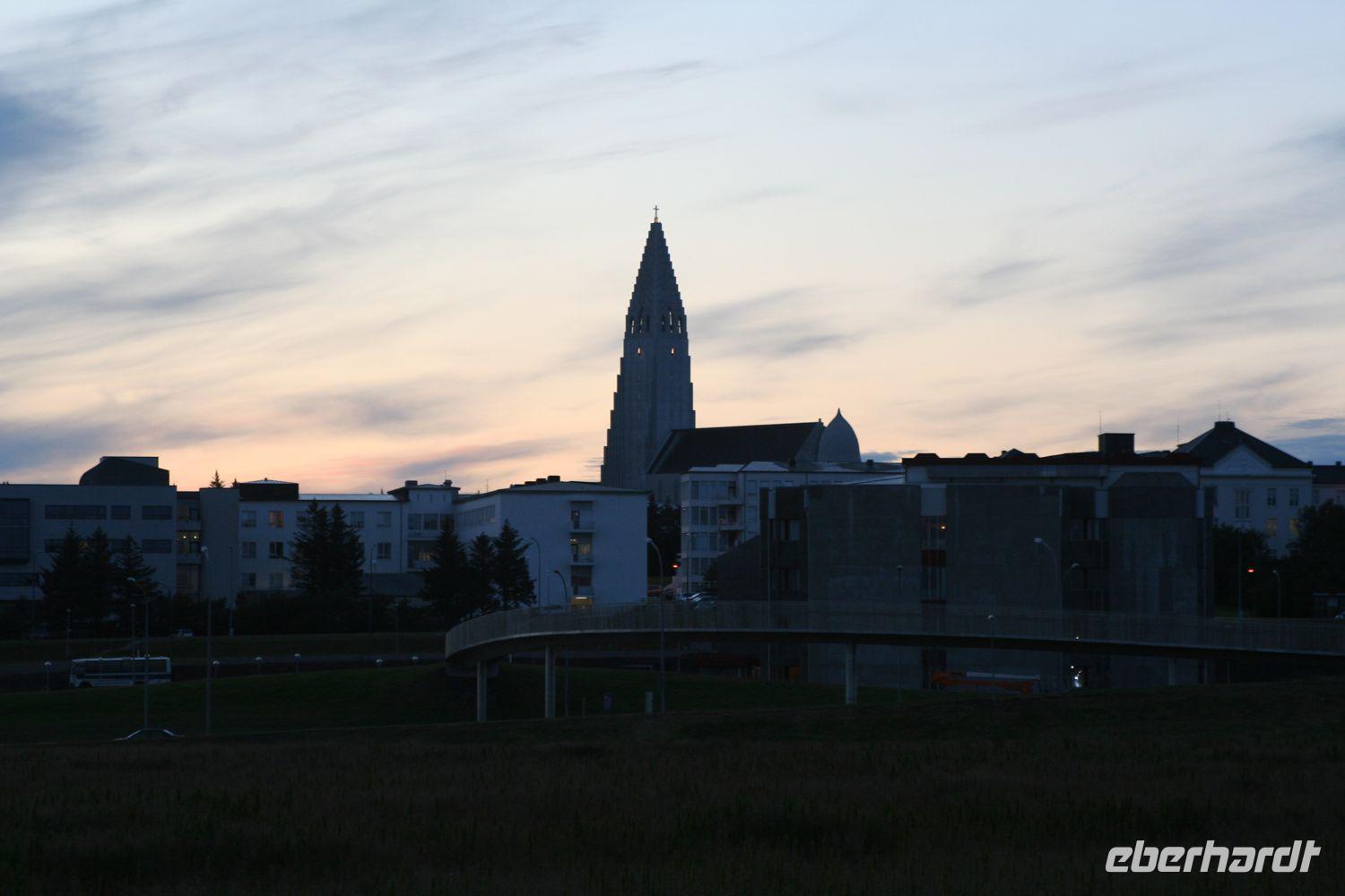 Um 23:40 landeten wir. Es herrschten angenehme 10 Grad, weshalb alle auch schon im Flugzeug ihre Jacke griffbereit hielten. Nachdem wir unsere Koffer wieder im empfang genommen hatten, verließen wir den Sicherheitsbereich und trafen auch gleich auf unsere örtliche Reiseleiterin Berglind Prunner. Sie brachte uns unverzüglich zum Bus und der fuhr direkt zum Hotel Loftleidir in Reykjavik, wo für jeden von uns ein kuschlig warmes Bett wartete. Schließlich hatten wir es ja schon 00:40 Uhr, auch wenn es noch immer sehr hell war.